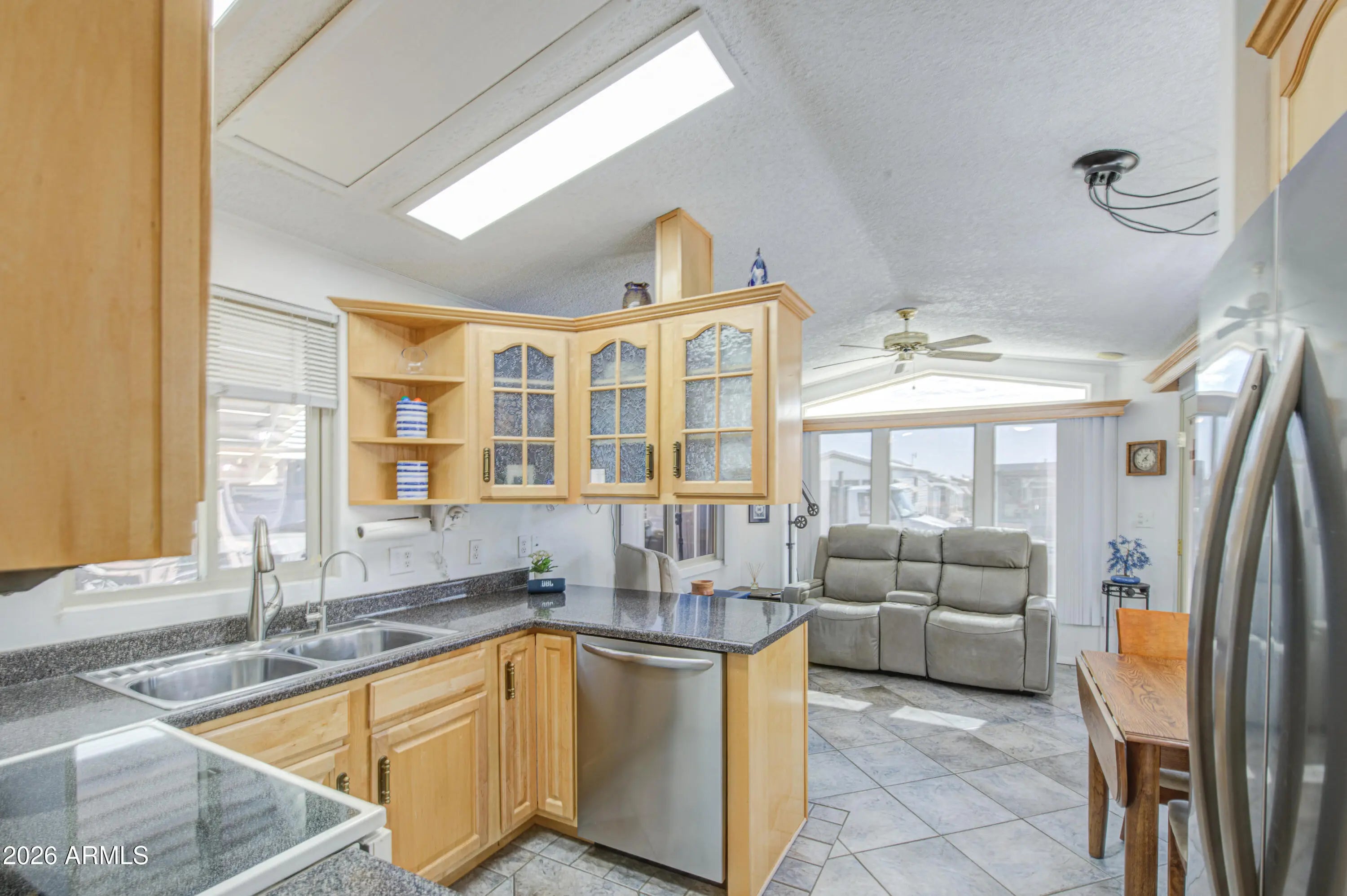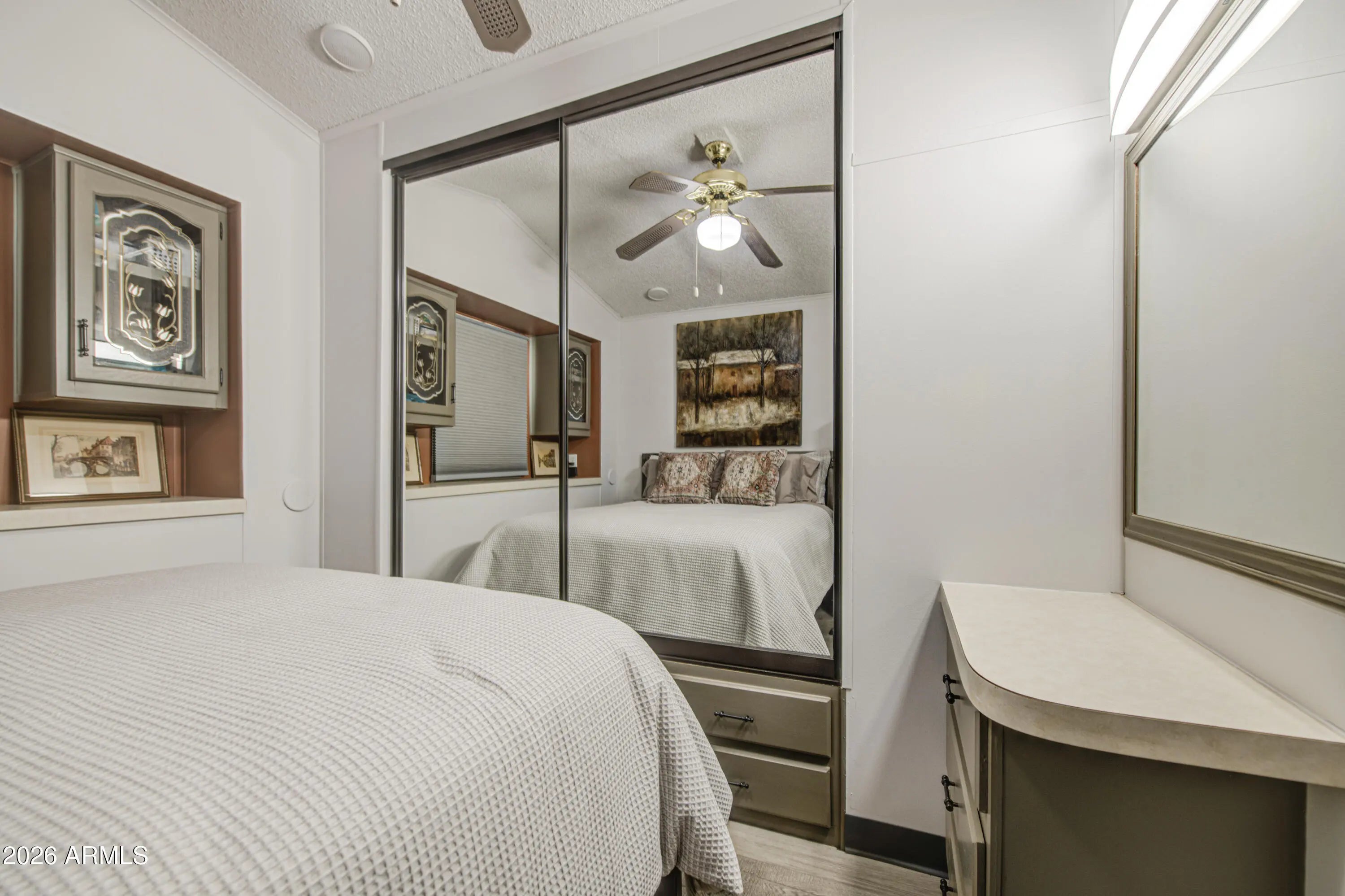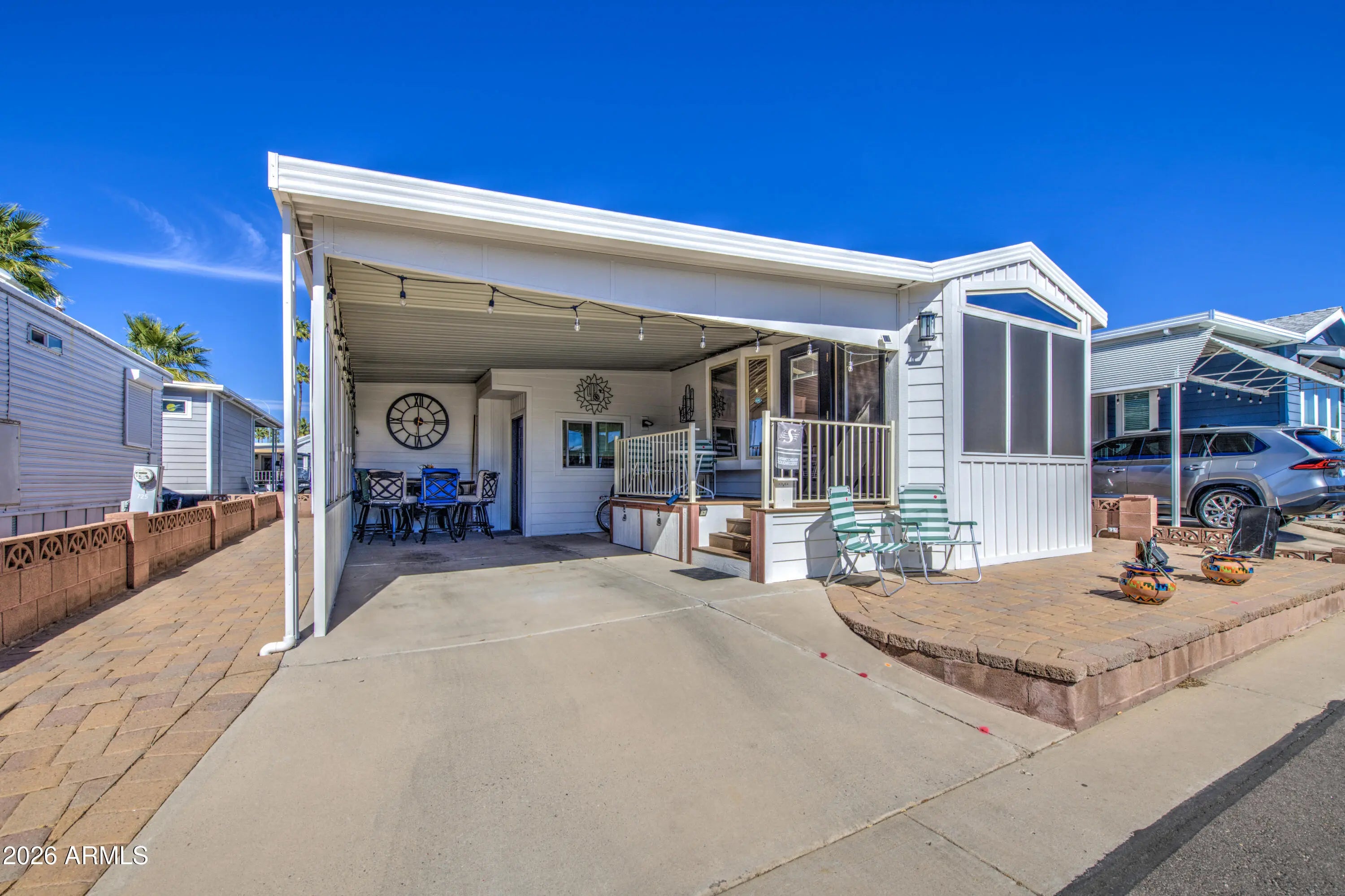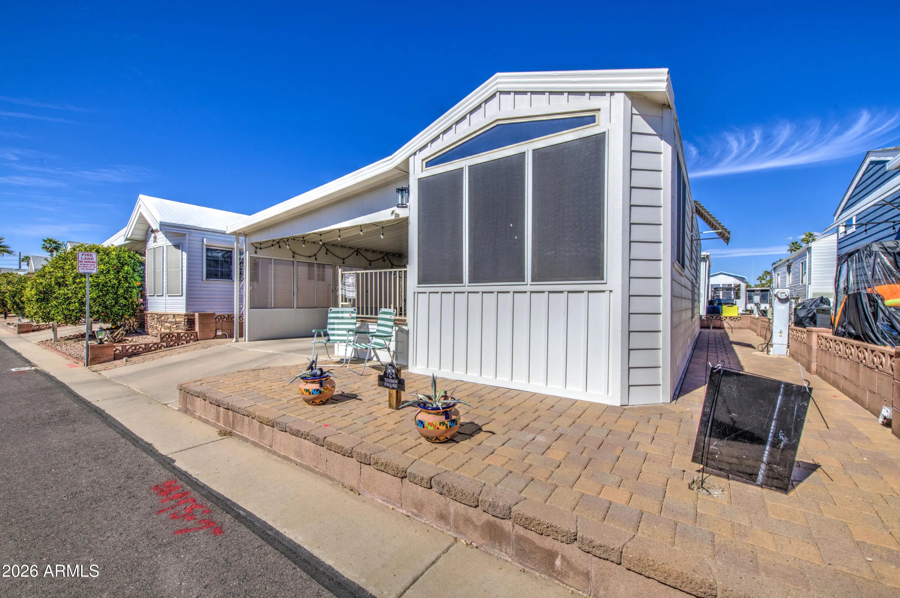 Super nice unit with many upgrades. New fridge with ice, micro above stove, high end dishwasher, tile flooring, new insulation in 2025. Circulating pump on the 40 gallon hot water tank. AZ room rebuilt with new insulation, 2 x 4 framing, features wall bed. There is a full bath / laundry room in the AZ room. Main bath has a walk in shower. Hardie plank clad siding on the outside. This one is ready for many years of trouble free enjoyment. Furniture is included, excluded items are identified with a tag.