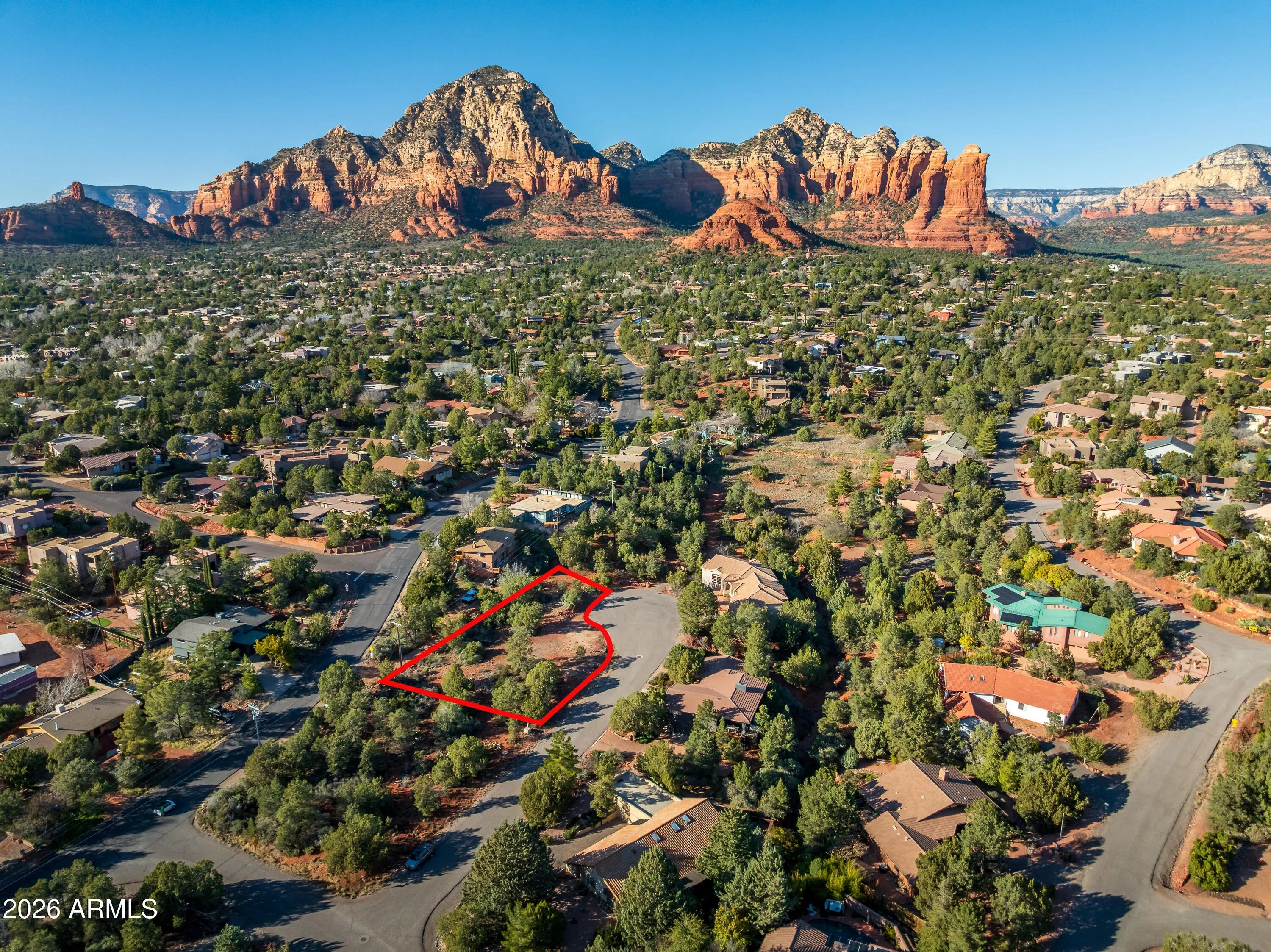 Great Cul de Sac lot in the West Sedona subdivision of Mission Hills, complete with Red Rock views, underground utilities, sewer hook-up in center of San Antonio Cir., and .34 acres to build your dream Sedona home. In case you don't have an idea of what kind of a home to build, the sellers can provide their engineered plans and information about what they had in mind. The Mission Hills subdivision is located near restaurants, banks, pharmacies and more in West Sedona, just minutes from this property.