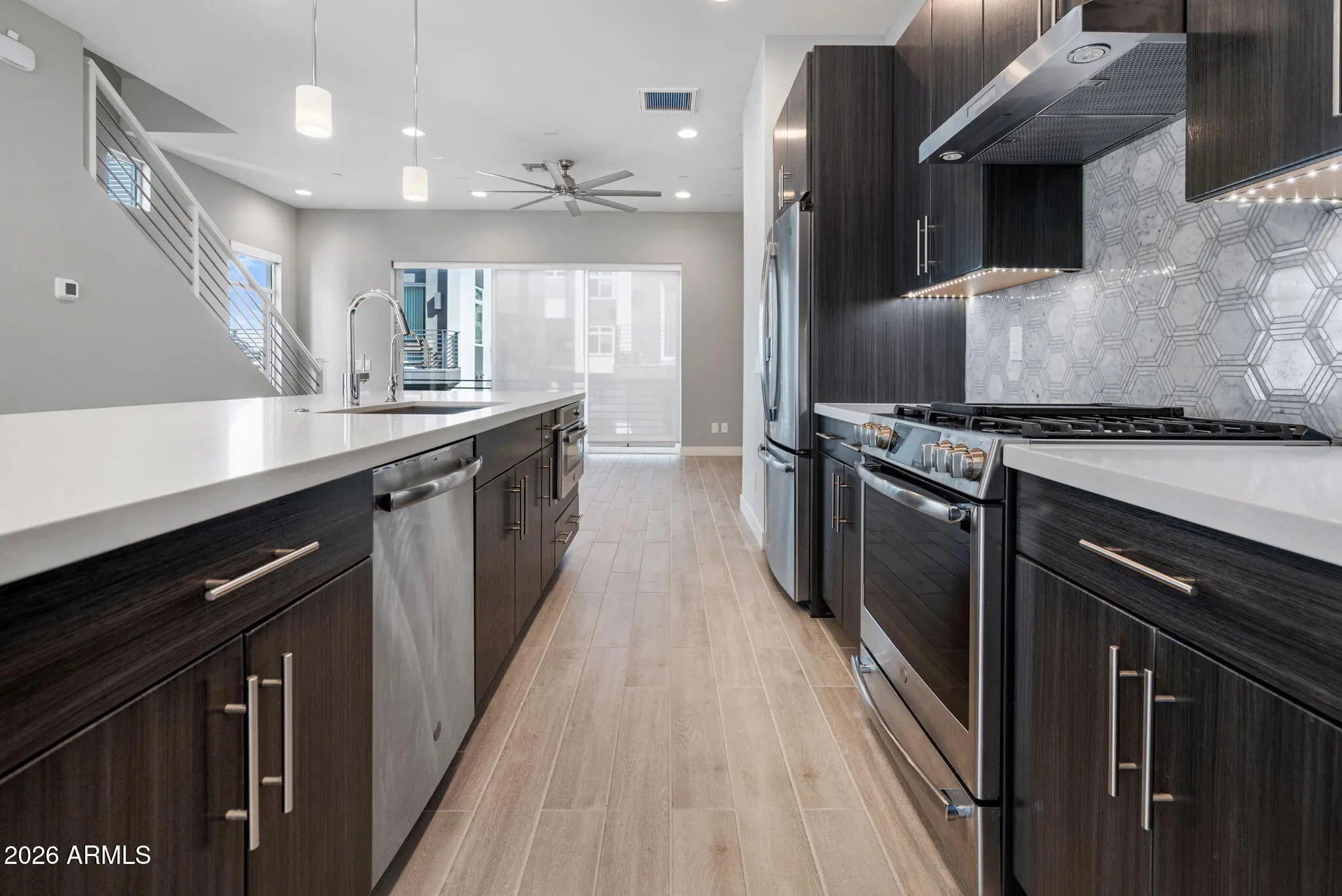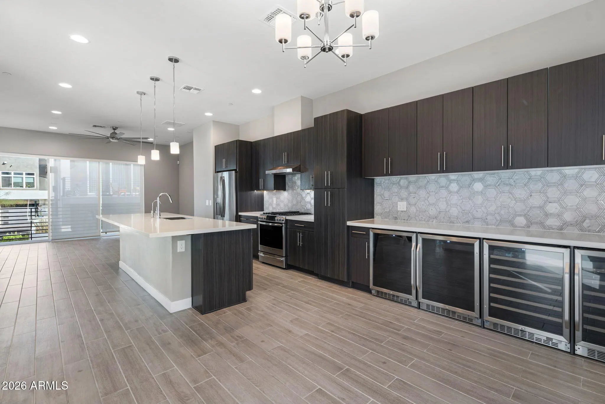 This 3-bedroom, 2.5-bath home with a bonus room/office offers the ideal blend of modern design and everyday livability. You'll also find a dedicated laundry room and a 2-car garage with additional storage. The location is hard to beat. Just steps from the Phoenix Mountain Preserve, Dreamy Draw Recreation Area, Piestewa Peak, and the Arizona Canal, you have miles of hiking and biking right outside your door. At the same time, you're minutes from some of the area's favorite local restaurants, coffee spots, and quick freeway access—making it easy to get anywhere in the Valley. Inside, the home is thoughtfully designed with clean lines and high-end finishes. The kitchen features premium appliances, a marble backsplash, oversized island, stainless farmhouse sink, and four built-in wine/beverage refrigeratorsperfect for entertaining. Sliding glass doors bring in incredible natural light and open to a balcony for seamless indoor-outdoor living. The true showpiece is the rooftop deck, offering panoramic mountain and city views. With a mounted TV setup, barbecue grill, and shade umbrella, it's an ideal space to host friends or unwind at sunset. Additional upgrades include remote-controlled blinds, tinted windows, a tankless water heater, and zoned A/C for comfort and energy efficiency year-round. A stylish, move-in-ready home in one of Phoenix's most desirable outdoor-centric communities.