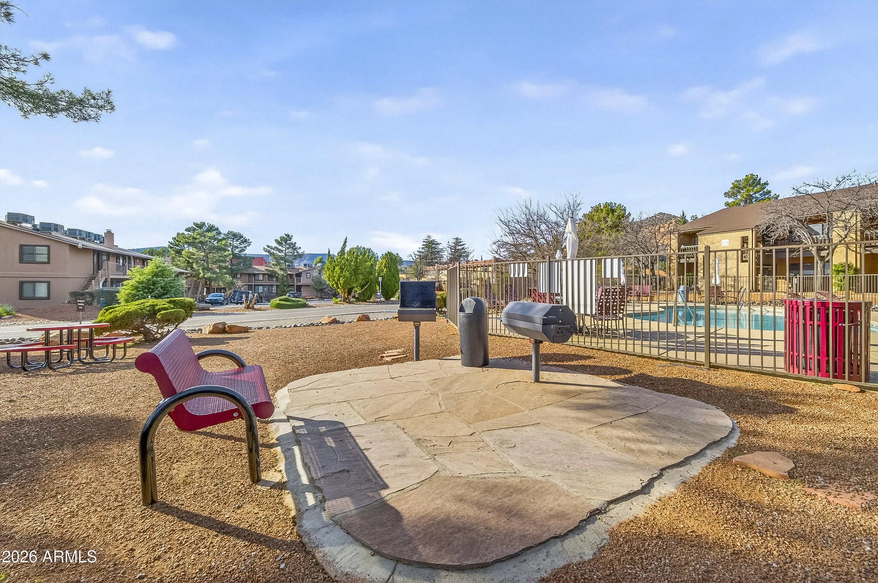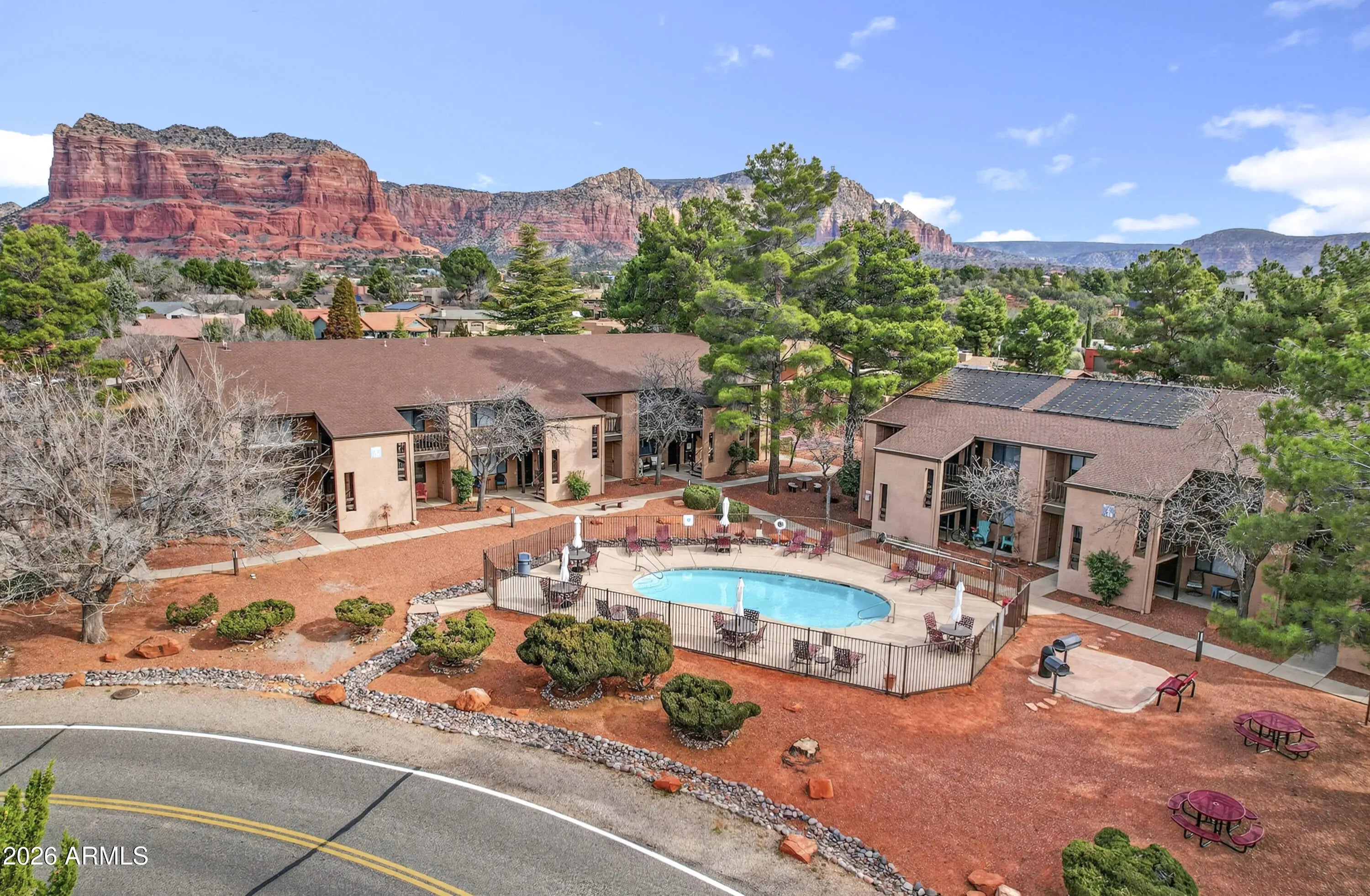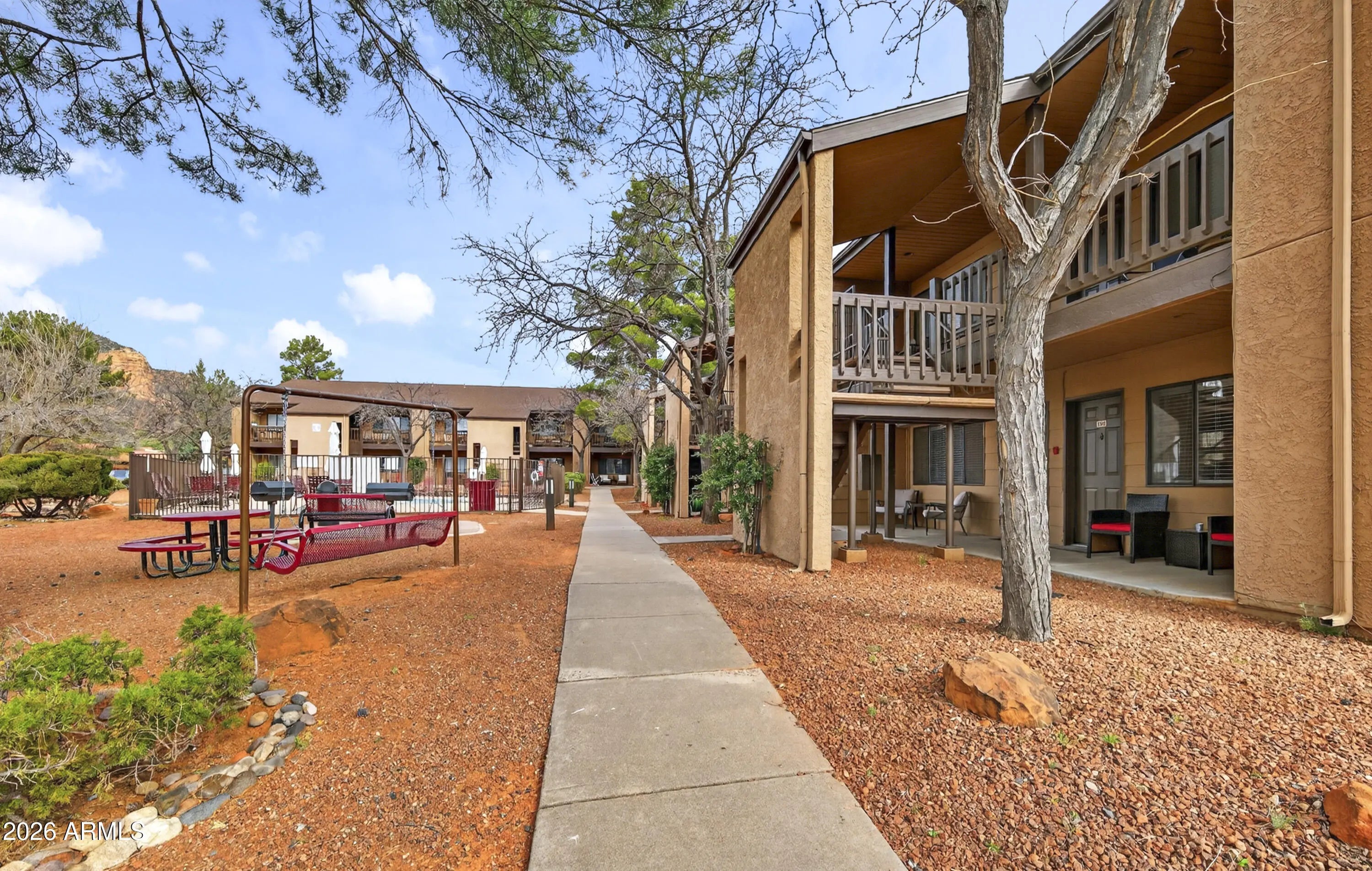 Escape to the Red Rocks in this fully updated, furnished condo! Ideal as a private getaway, or short-term rental. This modern unit features luxury vinyl plank flooring, quartz countertops, and stainless steel appliances. Relax in the spacious king-sized bedroom or enjoy resort-style amenities: pool, BBQ areas, fitness center, and dog run. Local coffee shops, restaurants, and grocery stores in the Village of Oak Creek are literally around the corner. World-class hiking at Bell Rock and Courthouse Butte is minutes away, and the galleries and dining of Uptown Sedona are just a short scenic drive. With high-end finishes and unbeatable convenience, this move-in-ready gem is your ticket to the Sedona lifestyle.
