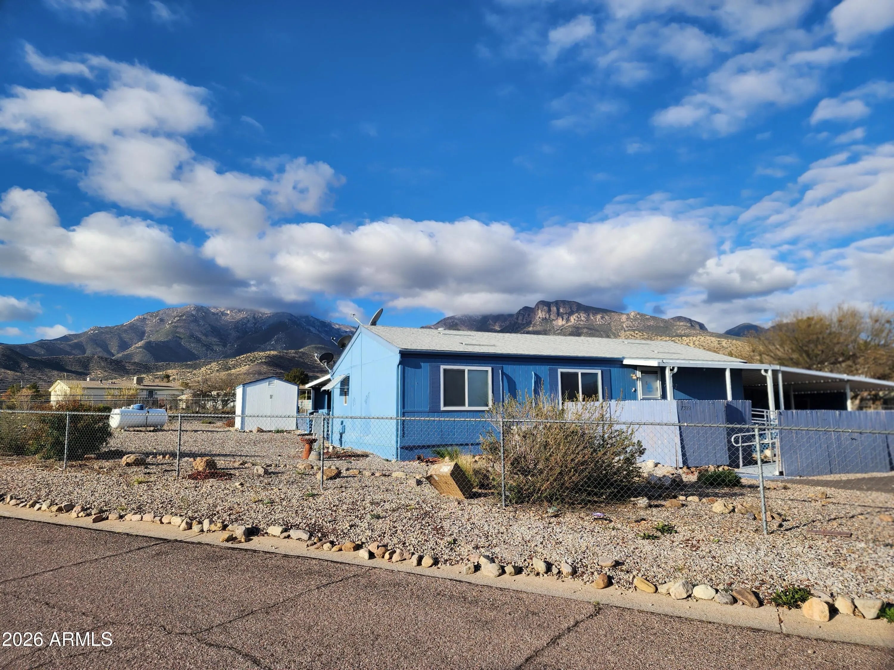 This 3-bedroom, 2-bath home sits on a spacious, fully fenced corner lot in Horseshoe Ranch and offers a 2-car carport, low-maintenance gravel landscaping, a handicap-accessible ramp, and a storage shed. Inside, the master bathroom features a walk-in shower, with ceiling fans throughout the home. Cooling options include mini-split systems and window A/C units, while a NEW propane furnace and evaporative cooler provide additional climate control. Freshly painted so you can move right in! HOA is a small amount each year to maintain the outer wall.