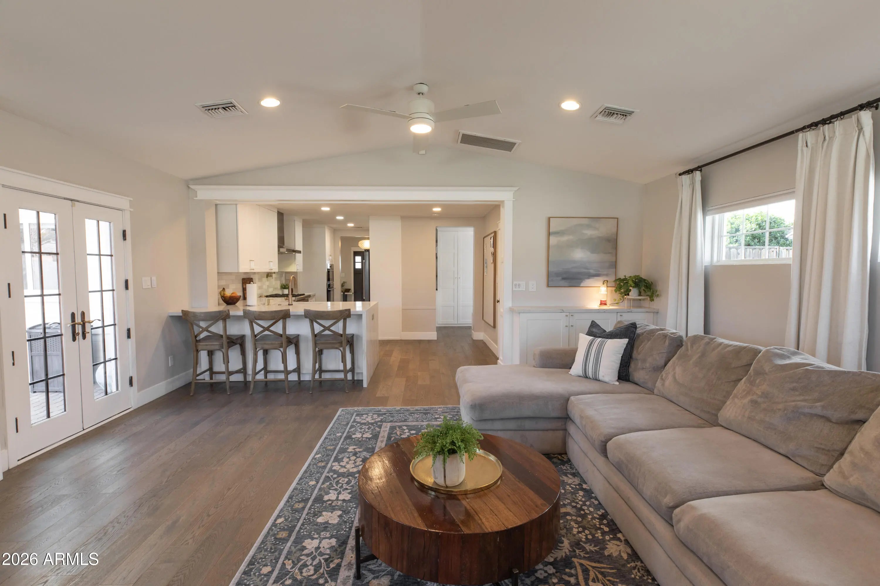 Fully remodeled 3 bedroom + playroom/office, 2 bathroom home in sought-after Arcadia Osborn. Extensively renovated in 2020 with updated plumbing and electrical, this block construction home blends timeless character with modern functionality. Full interior repaint completed January 2026. Light-filled interior with dual pane windows and wood flooring throughout. Spacious layout offers flexible living areas, abundant built-in storage, and an interior laundry room with extensive cabinetry. Two fireplaces — one original wood-burning and one gas — create warm focal points in the living spaces. Updated kitchen features a gas cooktop and flows seamlessly into the main living areas. Gas water heater and gas laundry add efficiency and convenience. The primary suite includes a walk- -in closet and updated bath. Situated on an irrigated lot with mature trees, grass, and select plantings. Large front and backyard patios provide ample outdoor living space, with views of Camelback Mountain visible from the backyard. Detached office/casita includes electricity and A/C, offering flexible use as a workspace, studio, or guest overflow. (Approx. 196 sq ft; not permitted and not included in total square footage.) Large storage shed also conveys. A/C replaced in 2021. RV gate for additional access and storage flexibility. No HOA. Ideally located near neighborhood dining, shopping, and convenient access to the airport. Owner/Agent.