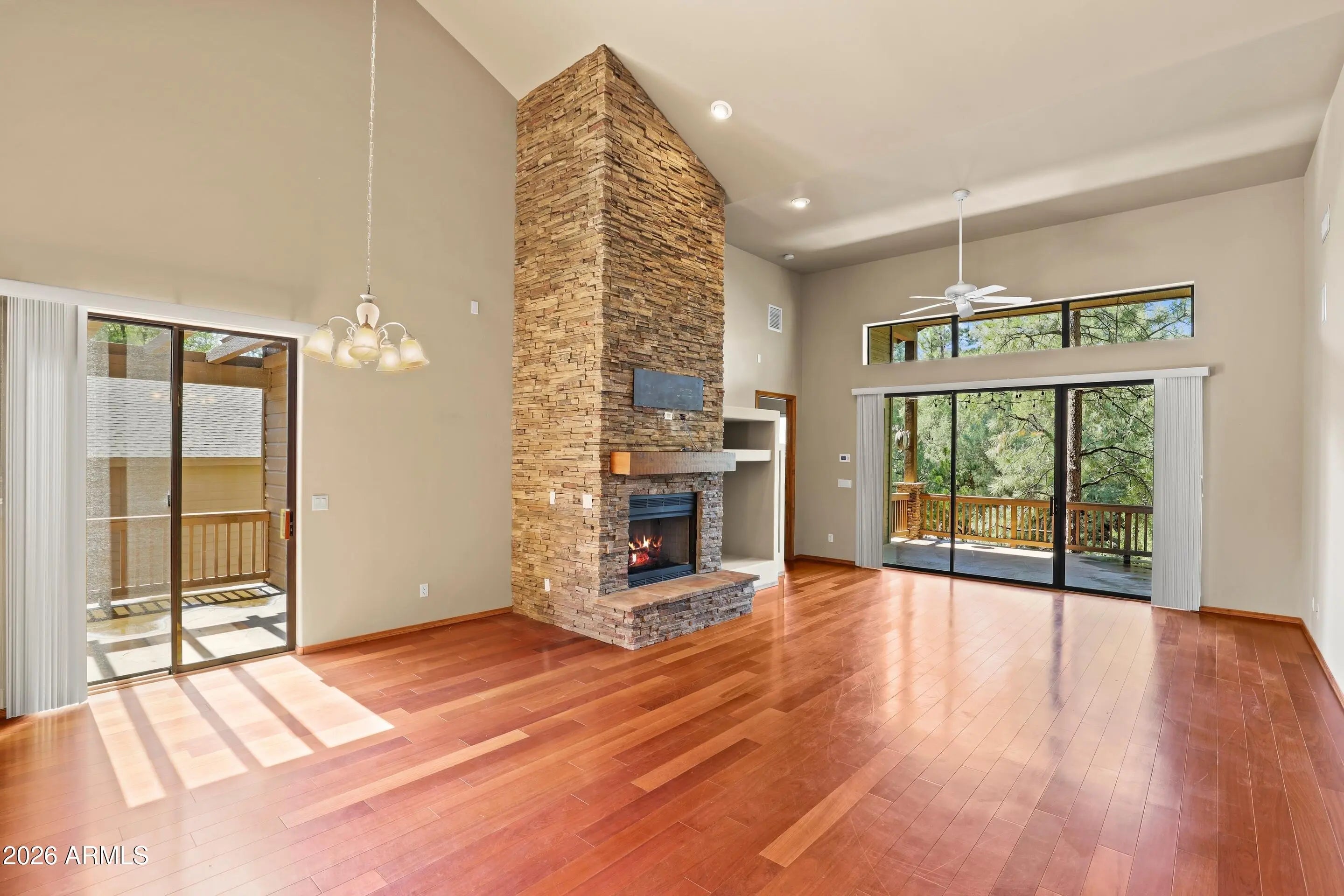 Surrounded by tall Ponderosa Pines in the sought-after Pine Island neighborhood of Chaparral Pines, this 4-bedroom, 4-bath home offers both luxury & comfort. With a split floor plan on both levels, you'll find a primary suite and laundry room upstairs as well as downstairs, making it convenient for any lifestyle. The open-concept layout is perfect for entertaining, showcasing hardwood floors, a stone fireplace, granite countertops in the kitchen and all baths, stainless steel appliances, and other upscale finishes. Step outside to enjoy the fresh mountain air on any of the 3 spacious decks perfect for relaxing or taking in Payson's beautiful weather. With plenty of storage and a peaceful setting, this home makes an ideal full-time residence, second home, or mountain retreat. **Floors are more brown than they appear in the pictures**