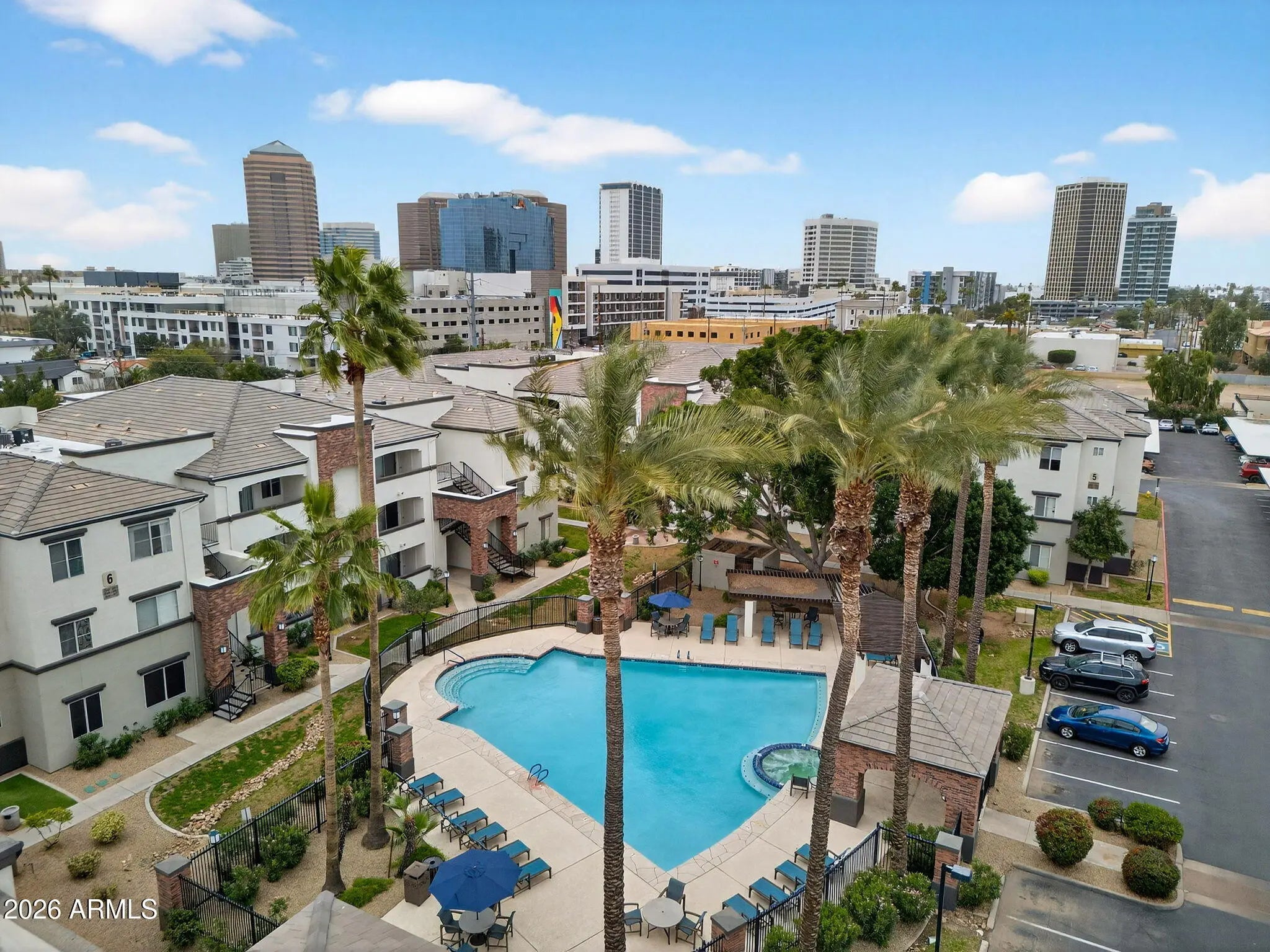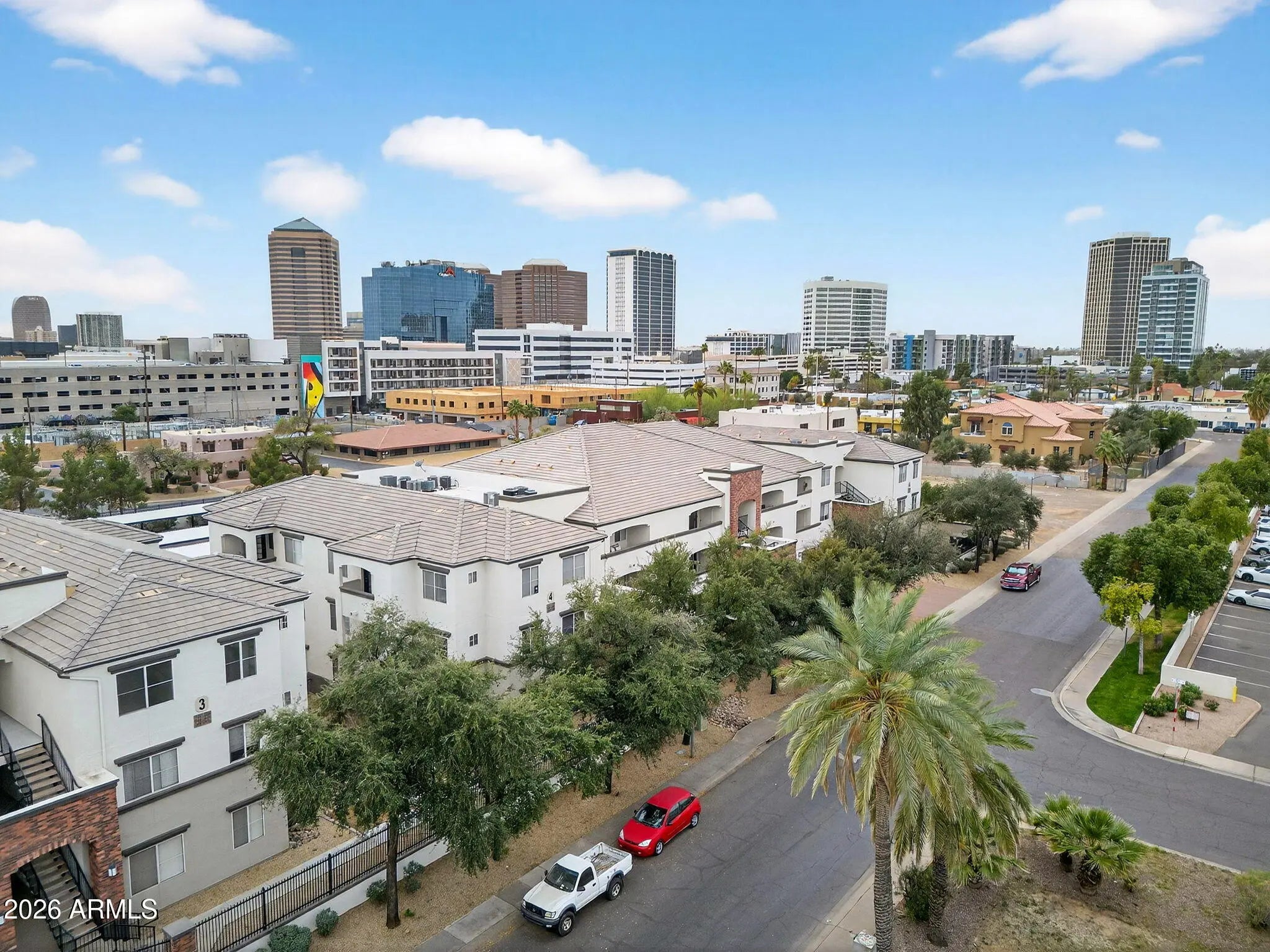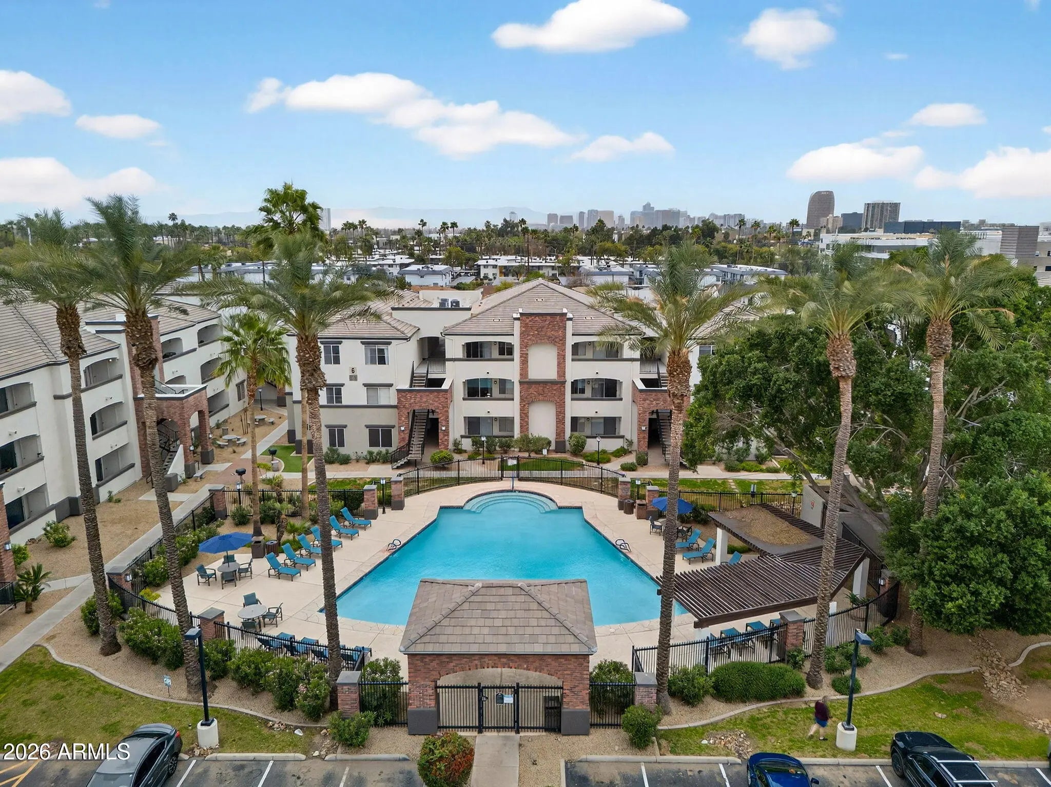 SELLER IS OFFERING $5,000 IN CONCESSIONS toward buyer's closing costs or interest rate buy-down! Welcome to effortless urban living in the gated Brick Commons community, ideally located in the heart of Midtown Phoenix. This well-maintained two-bedroom condo offers the perfect blend of comfort, convenience, and resort-style amenities—without the congestion of Downtown or the longer commute from Uptown. The desirable split-bedroom floor plan features two true primary suites, each with its own full bathroom and walk-in closet, making it ideal for roommates, professionals, or those seeking added privacy. The open-concept living space flows seamlessly to a private balcony with city views, complete with an attached storage room perfect for relaxing or entertaining. Recent upgrades provide peace of mind, including a 2-year-old AC, newer water heater, new microwave, and a newer washer and dryer, making this home truly move-in ready. Residents of Brick Commons enjoy an impressive array of resort-style amenities, including a heated pool and spa, ramada and BBQ areas, and a clubhouse featuring a fitness center, putting green, billiards room, private cinema, and business center. The location is hard to beat, just minutes from multiple hospitals and medical campuses, ASU's Downtown campus, Phoenix College, dining, nightlife, shopping, golf, sports venues, public transit, and major freeways. This home is an exceptional opportunity for healthcare professionals, students, faculty, or anyone seeking smart, low-maintenance living in one of Phoenix's most connected neighborhoods. Midtown living at its best, plus seller incentives to make it even easier to make this your next home.