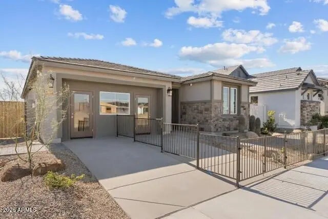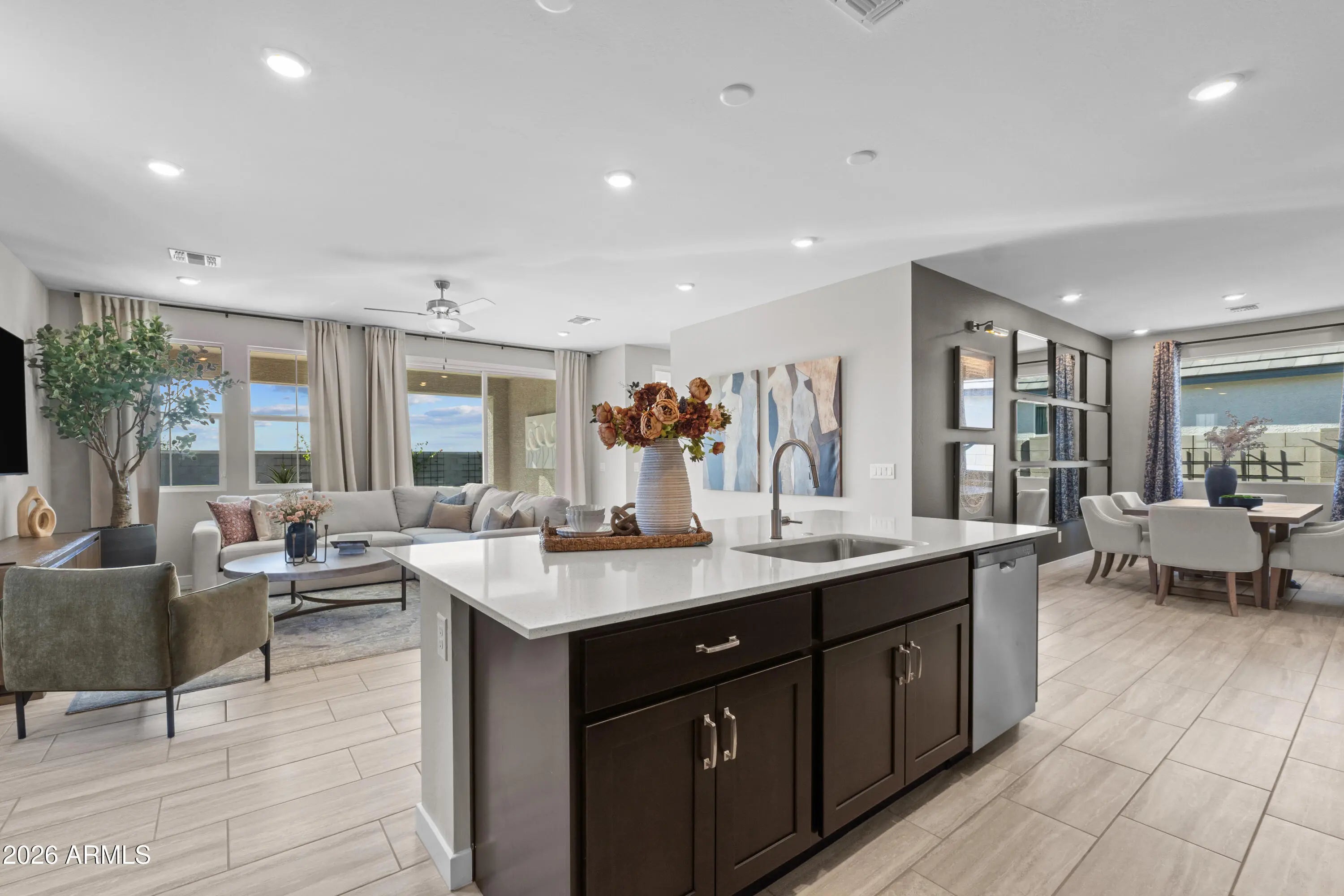 Professionally decorated Dream Finders Homes model available with leaseback—an exceptional turnkey investment opportunity. Collect guaranteed rental income while the builder showcases the home. This single-story features an open-concept layout with a spacious great room and designer kitchen complete with quartz countertops, stainless steel appliances, espresso cabinetry, and a large island with seating. Wood-look tile flooring runs throughout main living areas. The private owner's suite is generously sized, and secondary bedrooms offer flexible space. Enjoy a covered patio, built-in BBQ, and low-maintenance landscaping. Premium upgrades, model finishes, and income from day one.