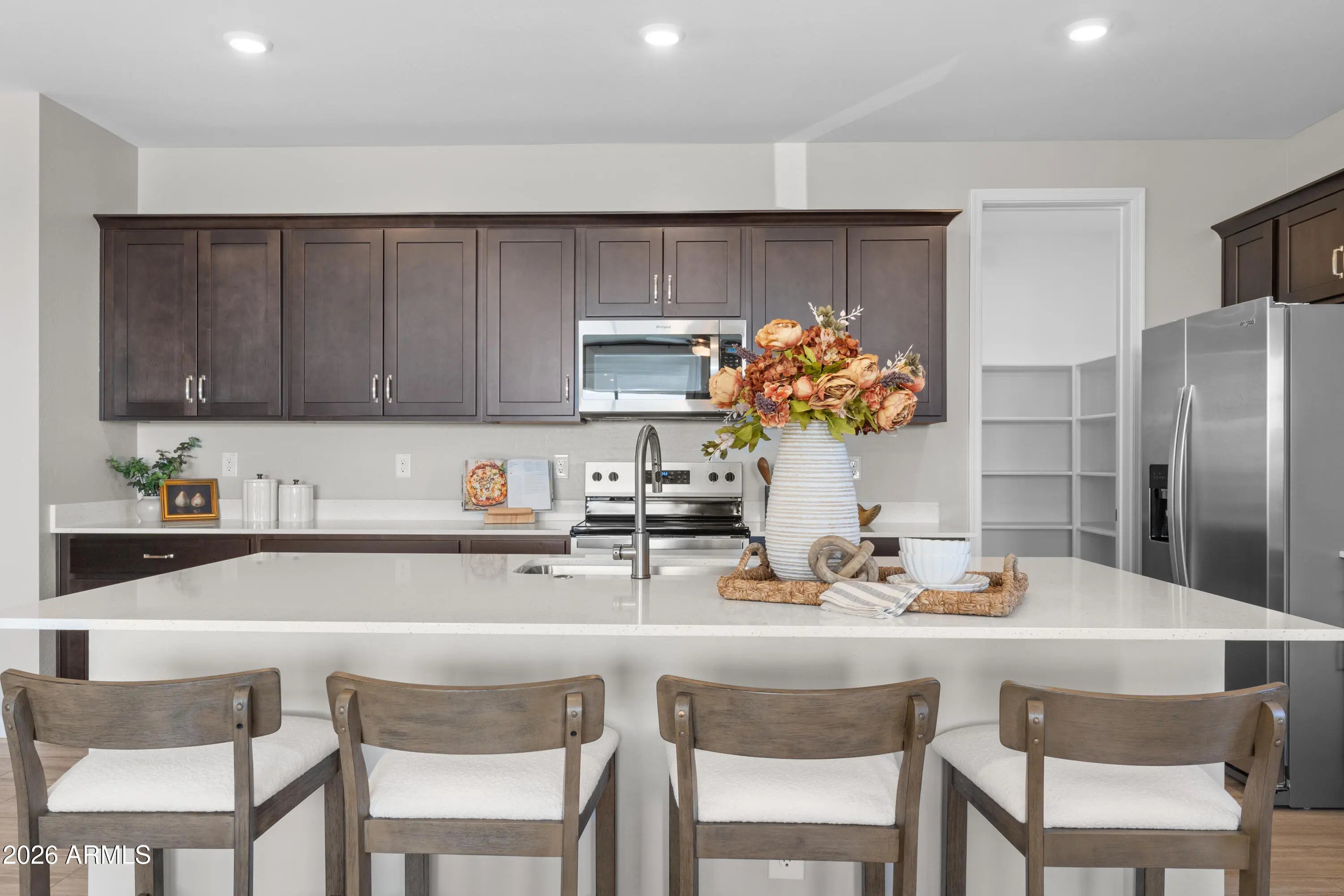 Walk-in Pantry, Quartz Countertops, Double Vanity, Breakfast Bar, 9+ Flat Ceilings, No Interior Steps, Kitchen Island, 3/4 Bath Master Bdrm
