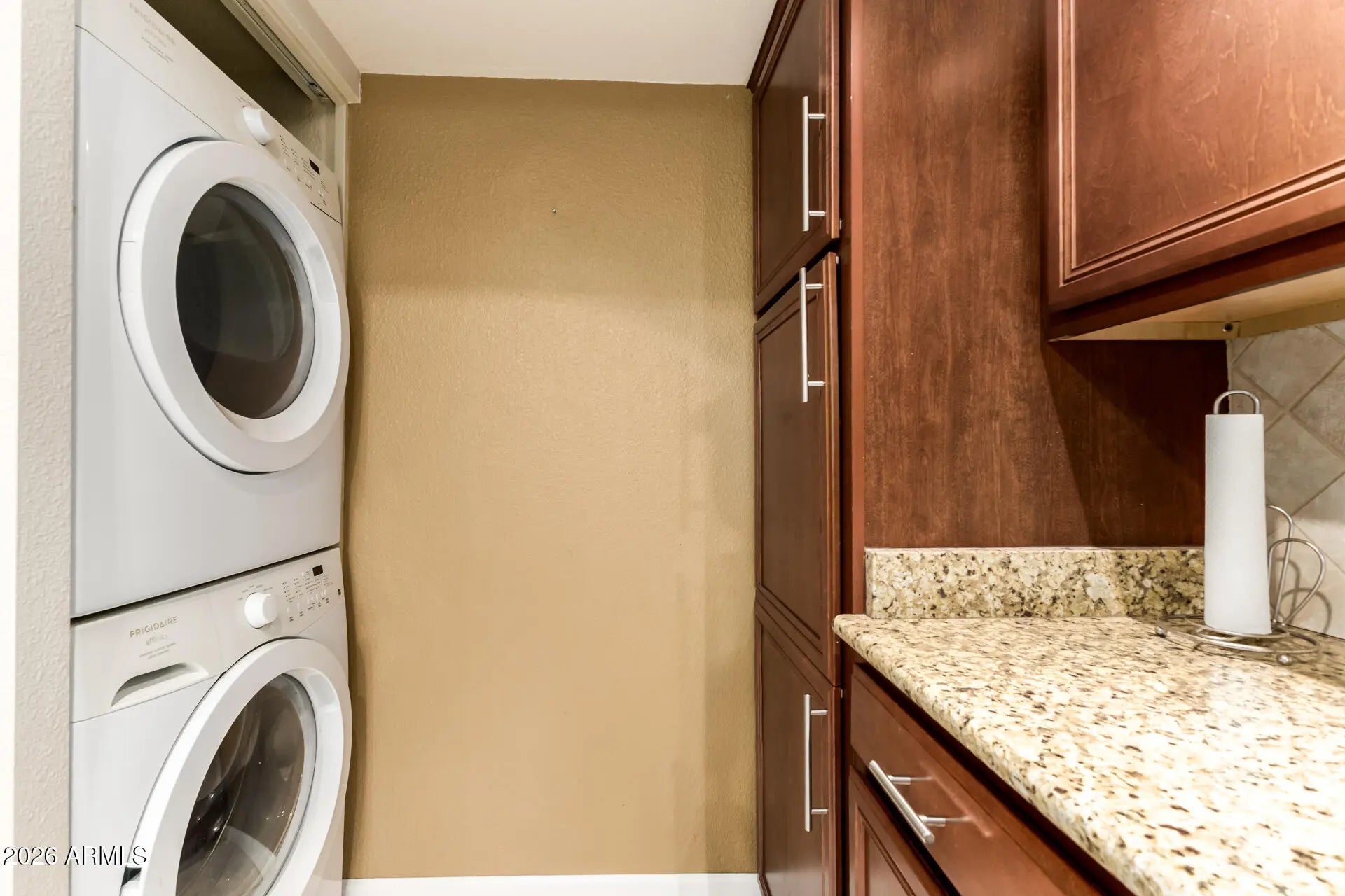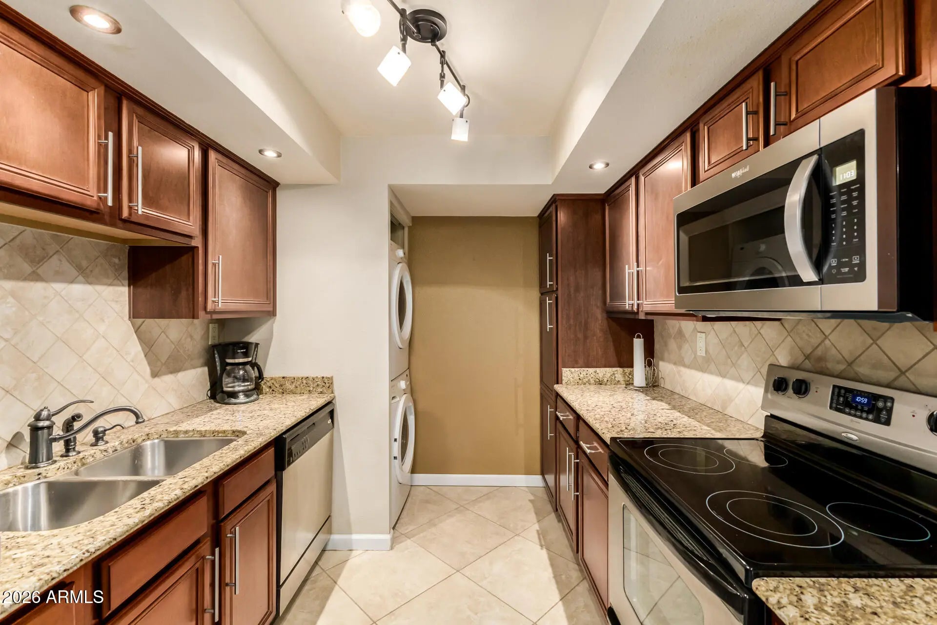 Stacked Washer/Dryer, Refrigerator, Dishwasher, Disposal, Electric Range, Electric Oven