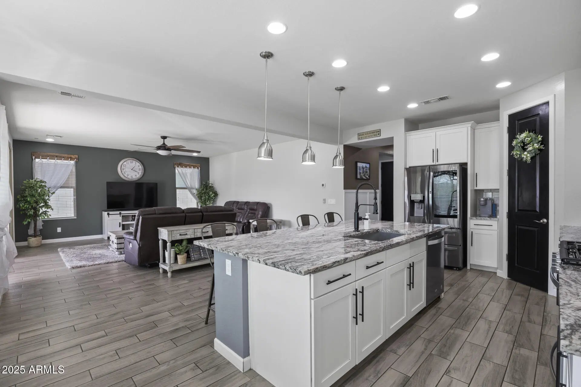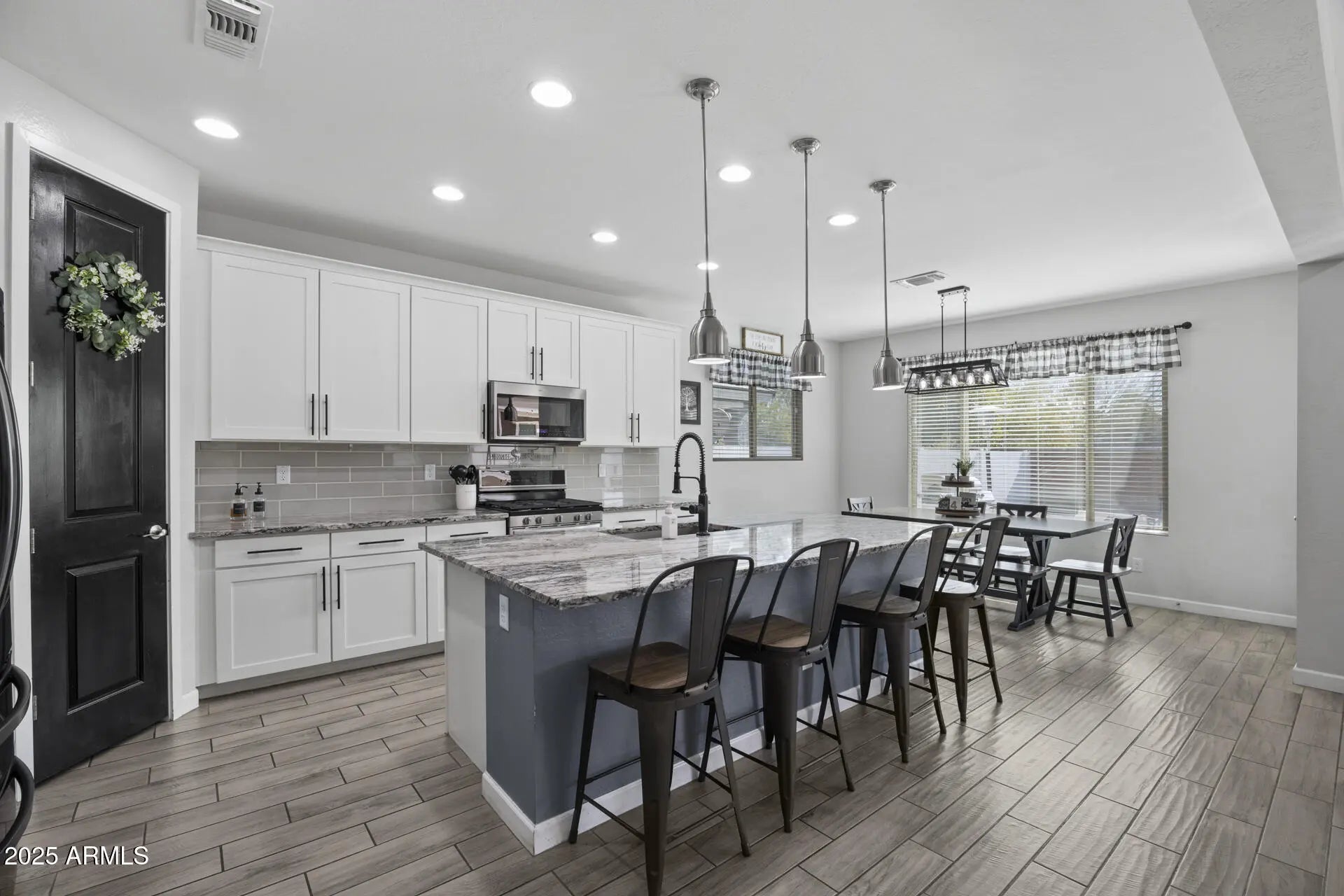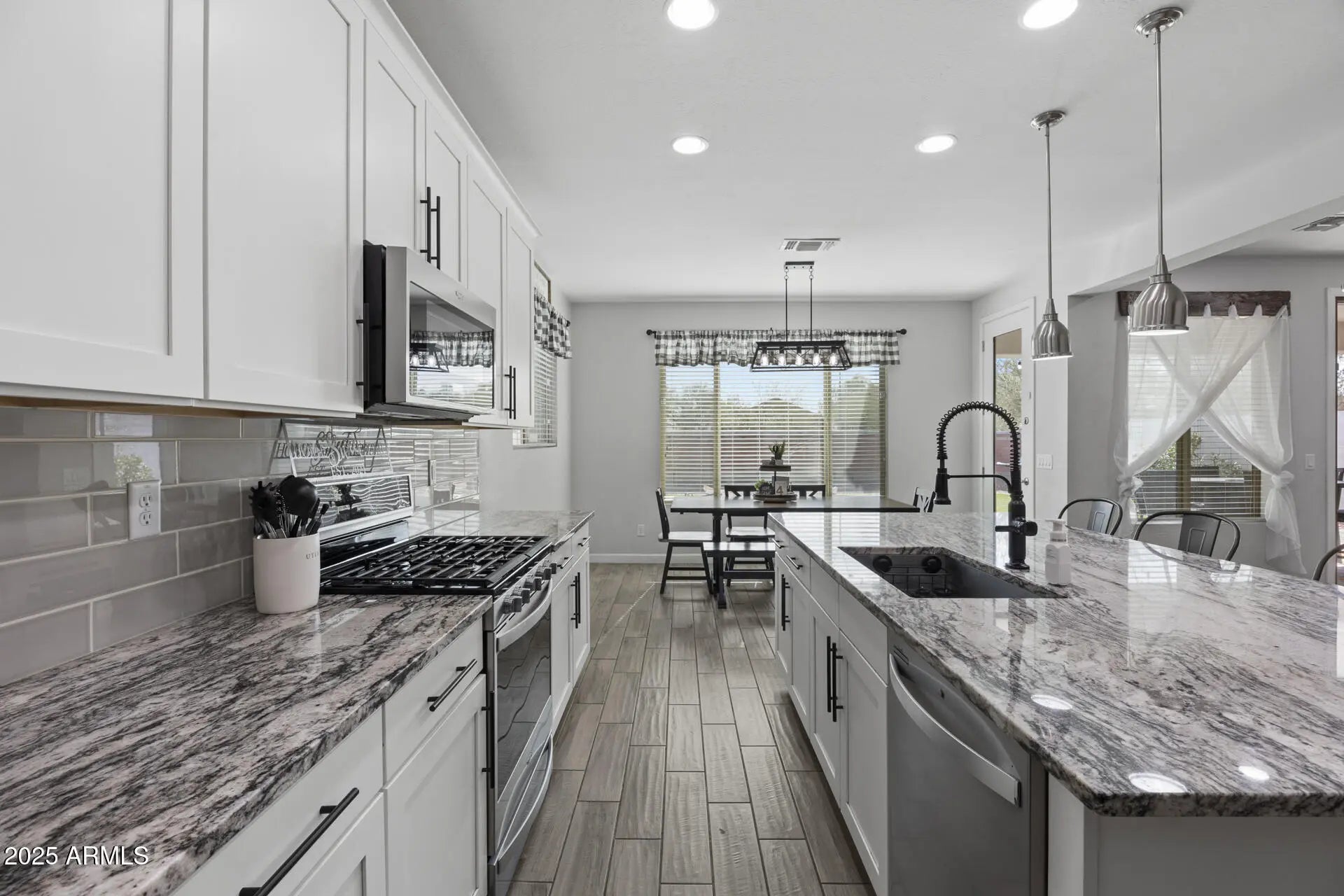 Welcome to one of Marley Park's most impressive residences, thoughtfully designed living space with 4 bedrooms, 4 bathrooms, an oversized loft, a versatile den, & a 3-car tandem garage. At the heart of the home is a gorgeously upgraded kitchen, tastefully finished & seamlessly connected to a spacious great room--ideal for both everyday living & entertaining. A stunning multi-panel sliding door opens the space to the outdoors, creating true indoor-outdoor living. The low-maintenance backyard is beautifully finished with pavers, turf, & patio misters, offering a private, resort-like setting without the upkeep. Located in the heart of Marley Park, residents enjoy tree-lined streets, greenbelts, pools, playgrounds, & a vibrant community atmosphere.