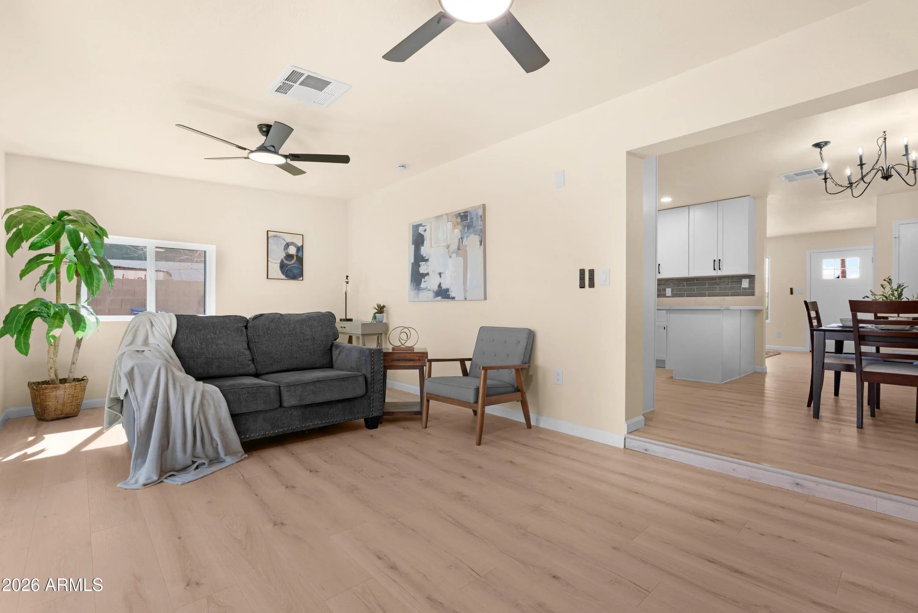Welcome home! This beautifully updated home is truly move-in ready! Featuring brand-new wood laminate flooring thru out, the interior offers a seamless, modern look with durability and easy maintenance. The fully updated kitchen boasts white kitchen cabinets with tons of storage, stylish backsplash and new appliances Both bathrooms have been thoughtfully renovated with modern touches and quality upgrades. Fresh interior and exterior paint give the home a crisp, clean feel. With all the updates already completed, this home offers comfort, style, and peace of mind from day one. Don't forget about the location! just miles away from downtown Gilbert and Chandler as well as the 202. This home is ready for new owners. Just bring your belongings and start enjoying your new home!