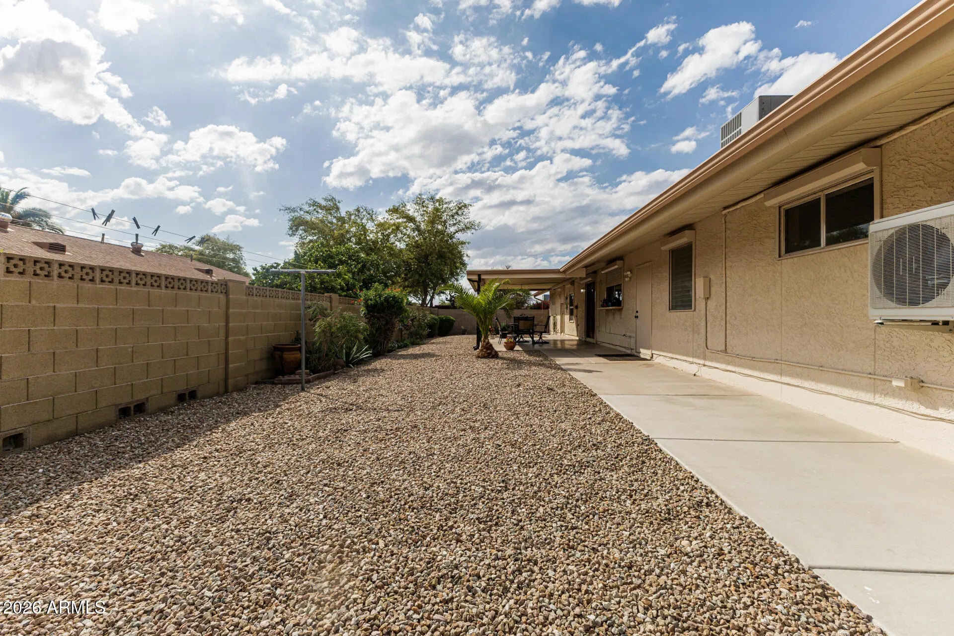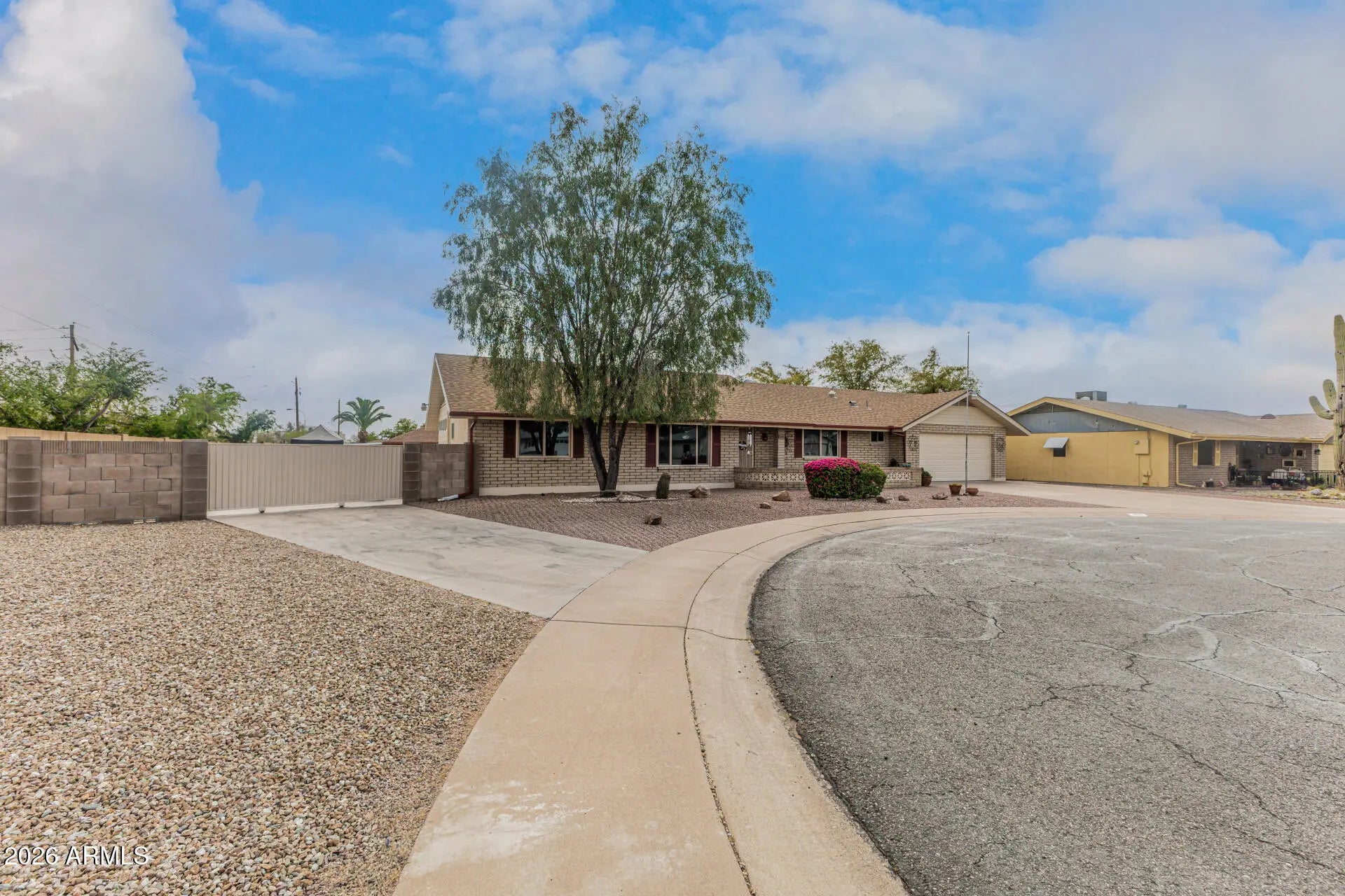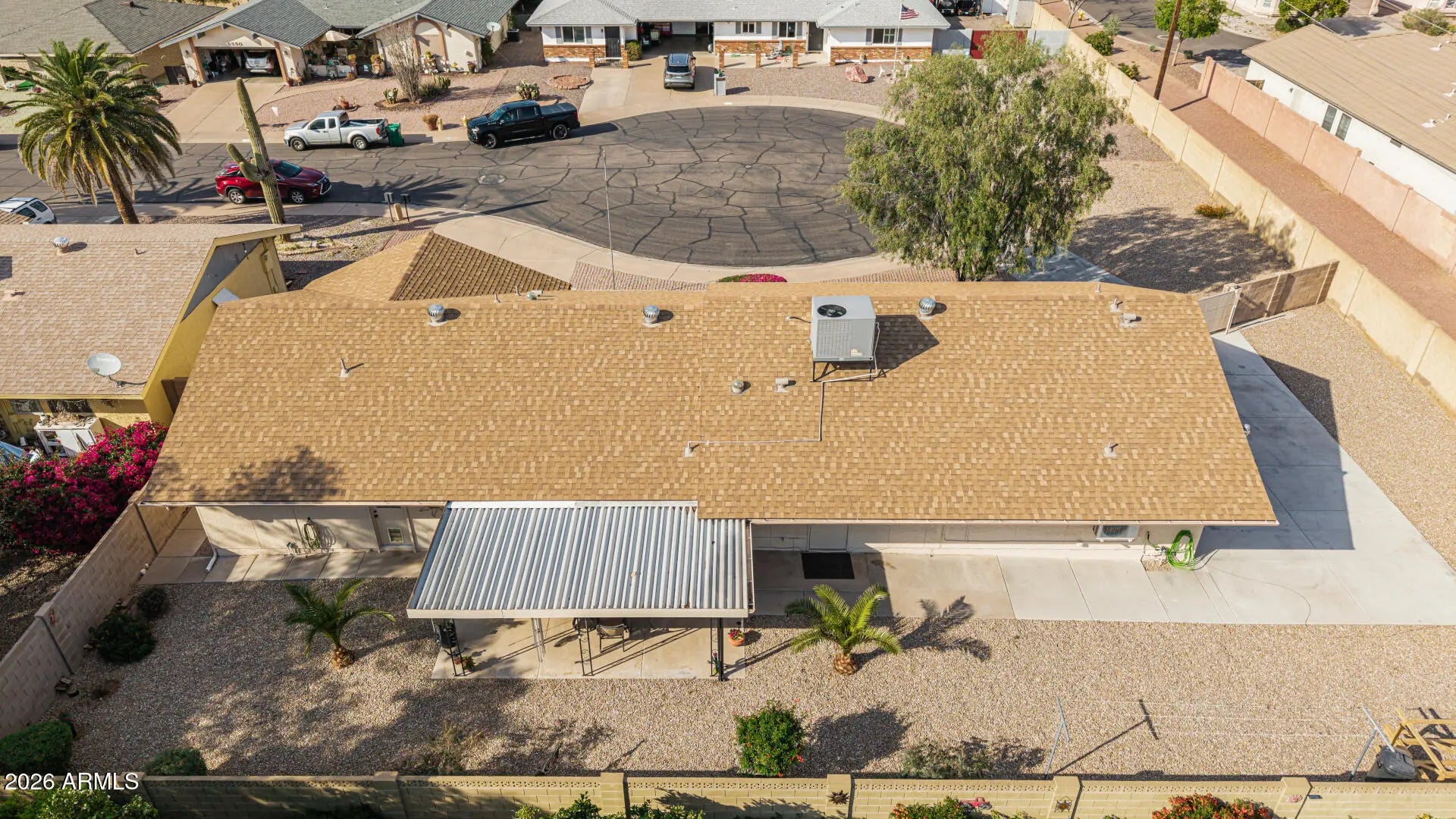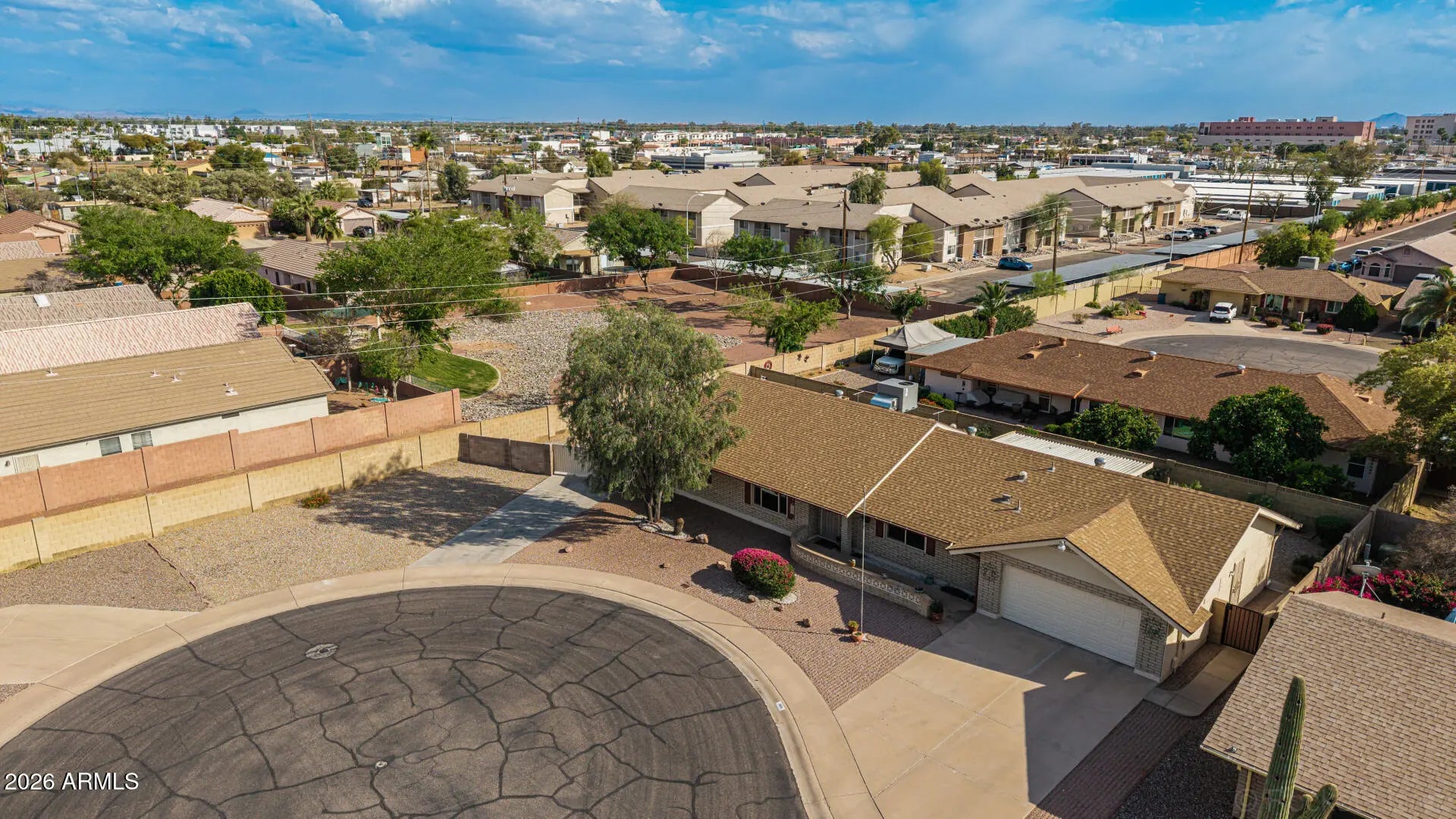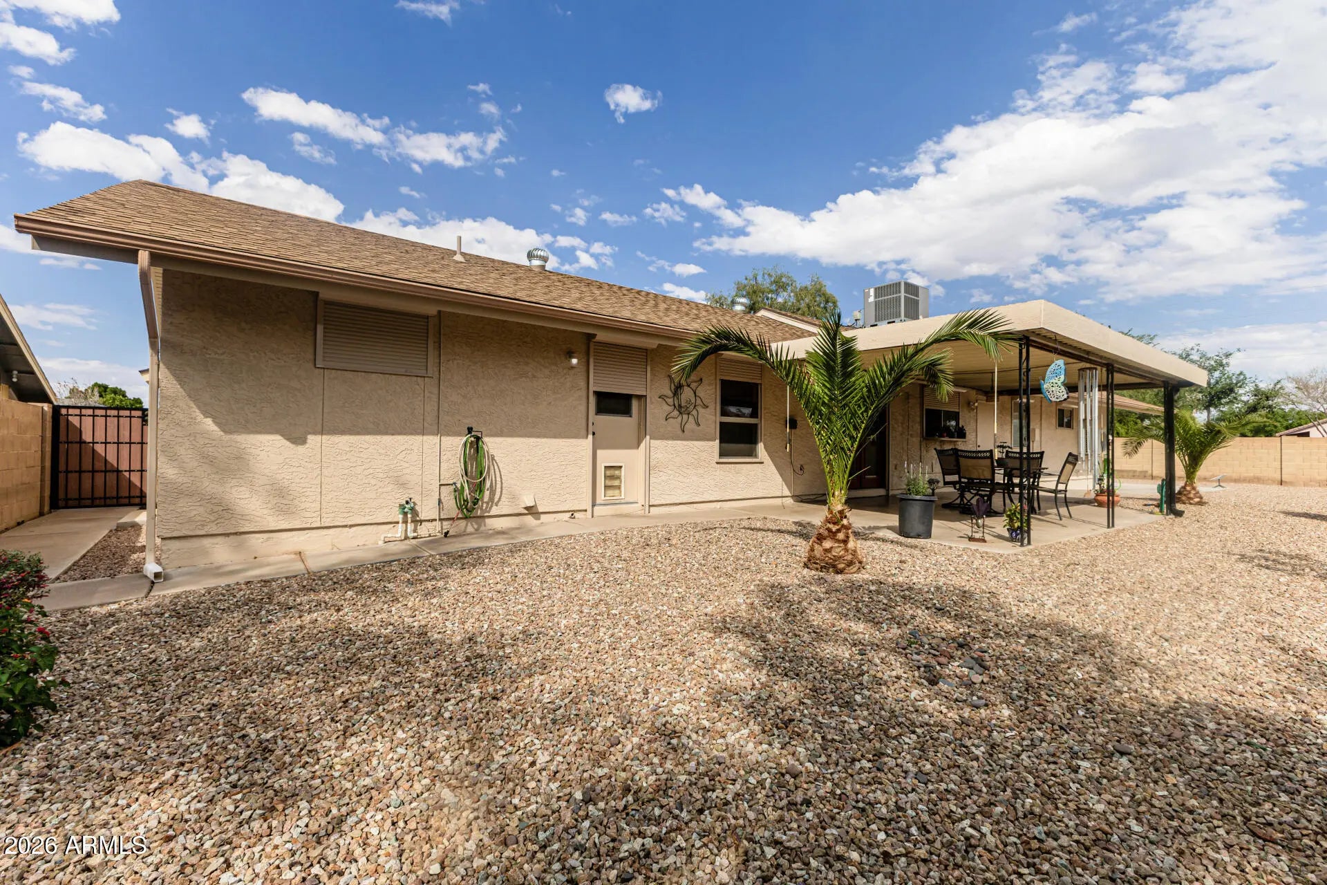 Fantastic single-level home in the highly sought-after active adult community of Velda Rose Estates! Situated on a quiet cul-de-sac and positioned on one of the largest lots in the neighborhood, this property offers exceptional privacy with no neighbors on one side. This well-maintained 2-bedroom, 2-bath home features a 2-car garage plus a rare RV garage with RV gate access. An extra-large concrete pad with added drainage was recently installed at the RV garage entrance for enhanced functionality and convenience. The RV garage also includes a mini-split system (negotiable with the right offer). A water softener is also negotiable. Inside, you'll find inviting living spaces filled with abundant natural light and neutral flooring throughout, creating a bright, open feel. The kitchen showcases stainless steel appliances, warm wood cabinetry, and ample storage space. The spacious primary suite includes a private ensuite bath for comfort and privacy. Step outside to a generously sized backyard featuring a covered patioperfect for relaxing or entertaining. Enjoy fantastic community amenities and a prime Mesa location close to shopping, dining, and medical facilities. This rare oversized lot with RV garage opportunity won't last!