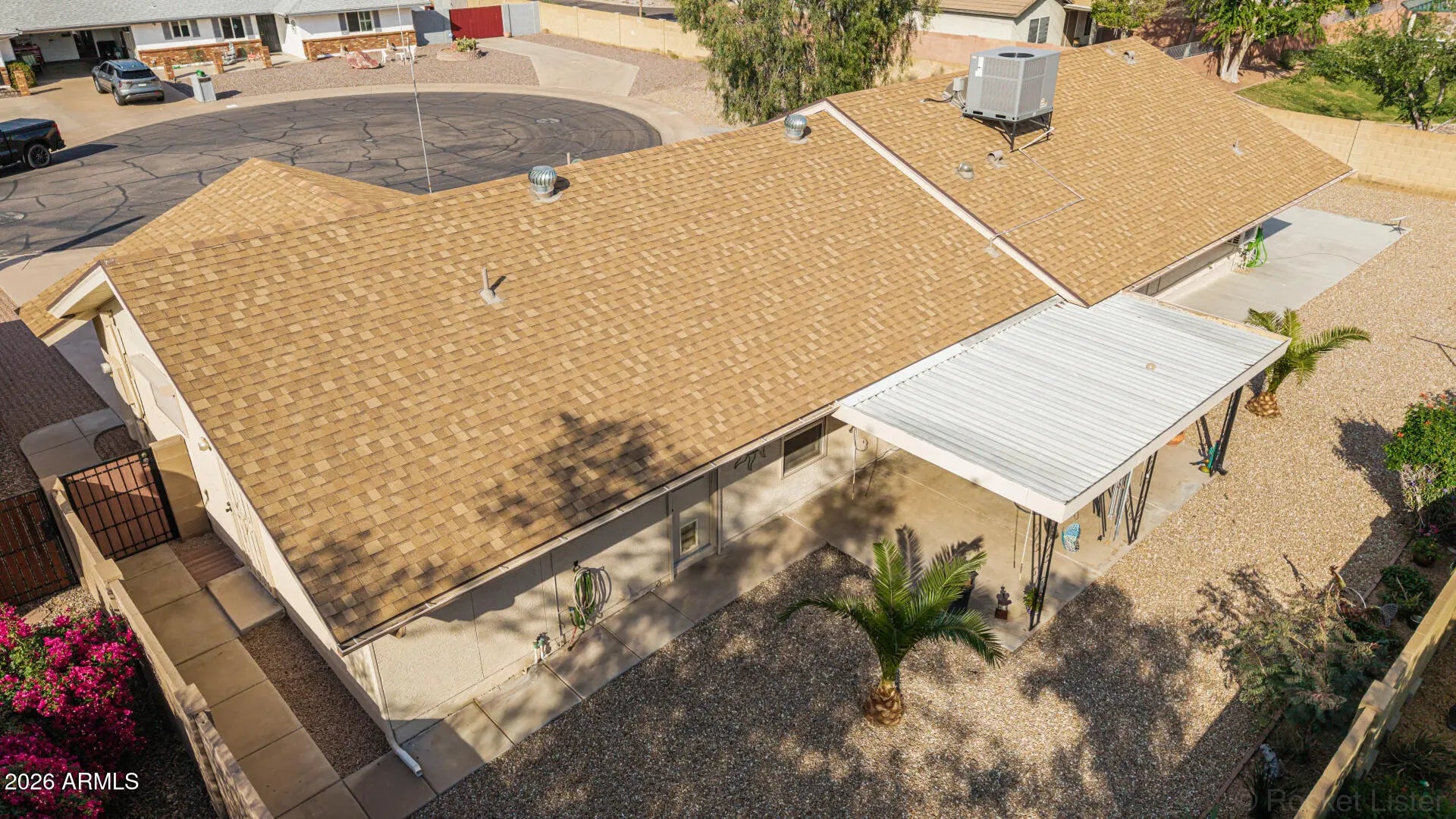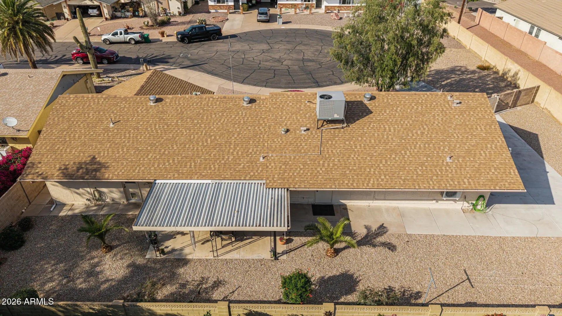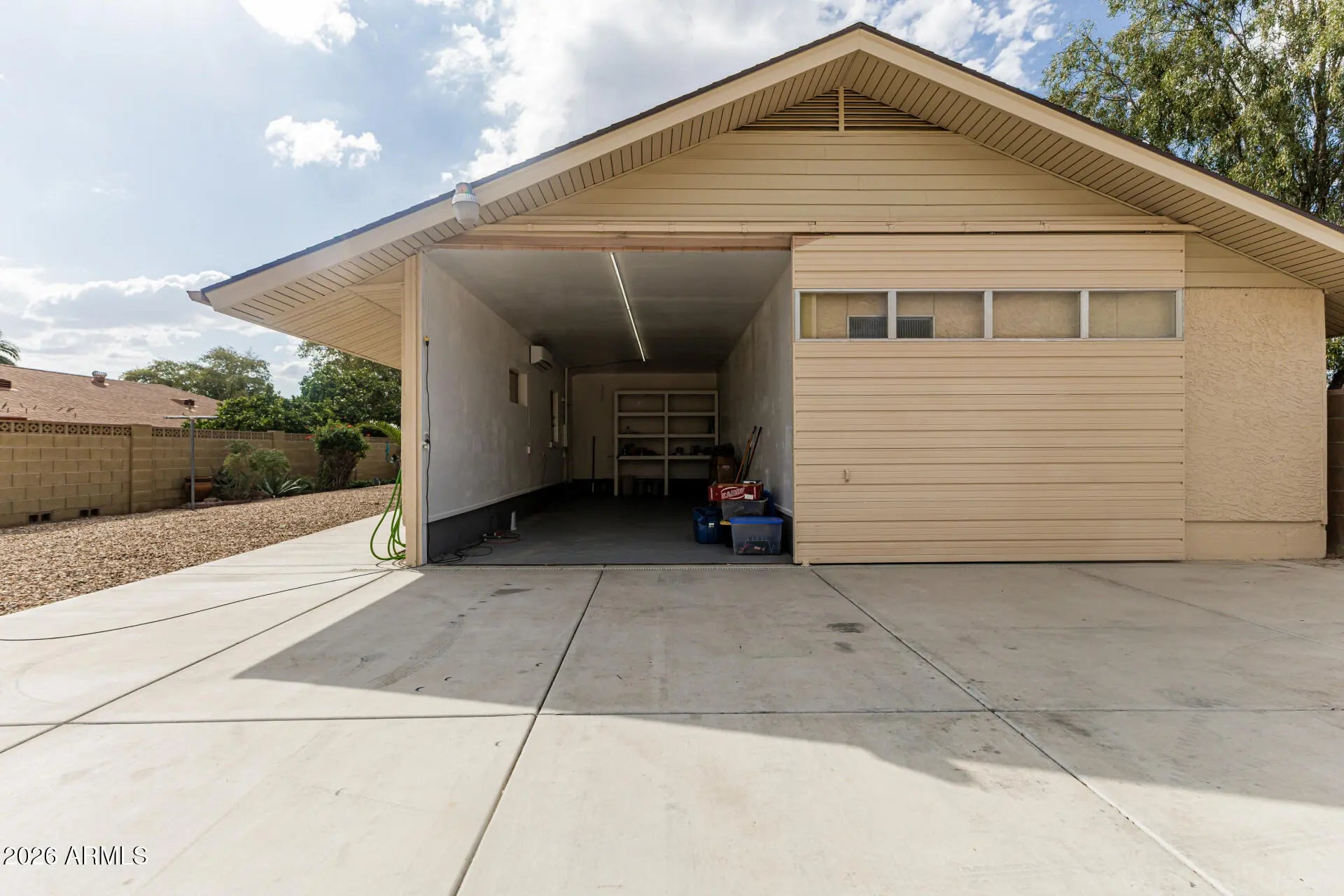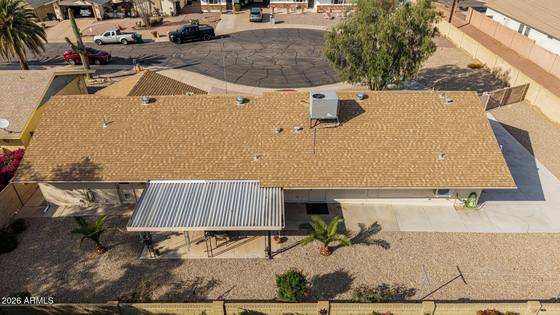 Fantastic single-level home in the highly sought-after active adult community of Velda Rose Estates! Situated on a quiet cul-de-sac and positioned on one of the largest lots in the neighborhood, this property offers exceptional privacy with no neighbors on one side. This well-maintained 2-bedroom, 2-bath home features a 2-car garage plus a rare RV garage with RV gate access. An extra-large concrete pad with added drainage was recently installed at the RV garage entrance for enhanced functionality and convenience. The RV garage also includes a mini-split system (negotiable with the right offer). A water softener is also negotiable. Inside, you'll find inviting living spaces filled with abundant natural light and neutral flooring throughout, creating a bright, open feel. The kitchen showcases stainless steel appliances, warm wood cabinetry, and ample storage space. The spacious primary suite includes a private ensuite bath for comfort and privacy. Step outside to a generously sized backyard featuring a covered patioperfect for relaxing or entertaining. Enjoy fantastic community amenities and a prime Mesa location close to shopping, dining, and medical facilities. This rare oversized lot with RV garage opportunity won't last!