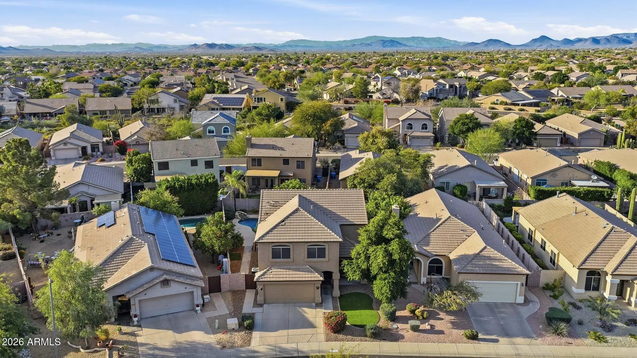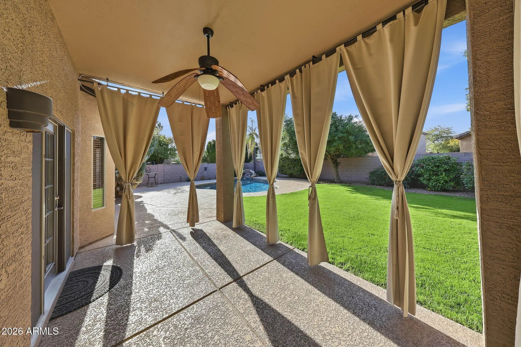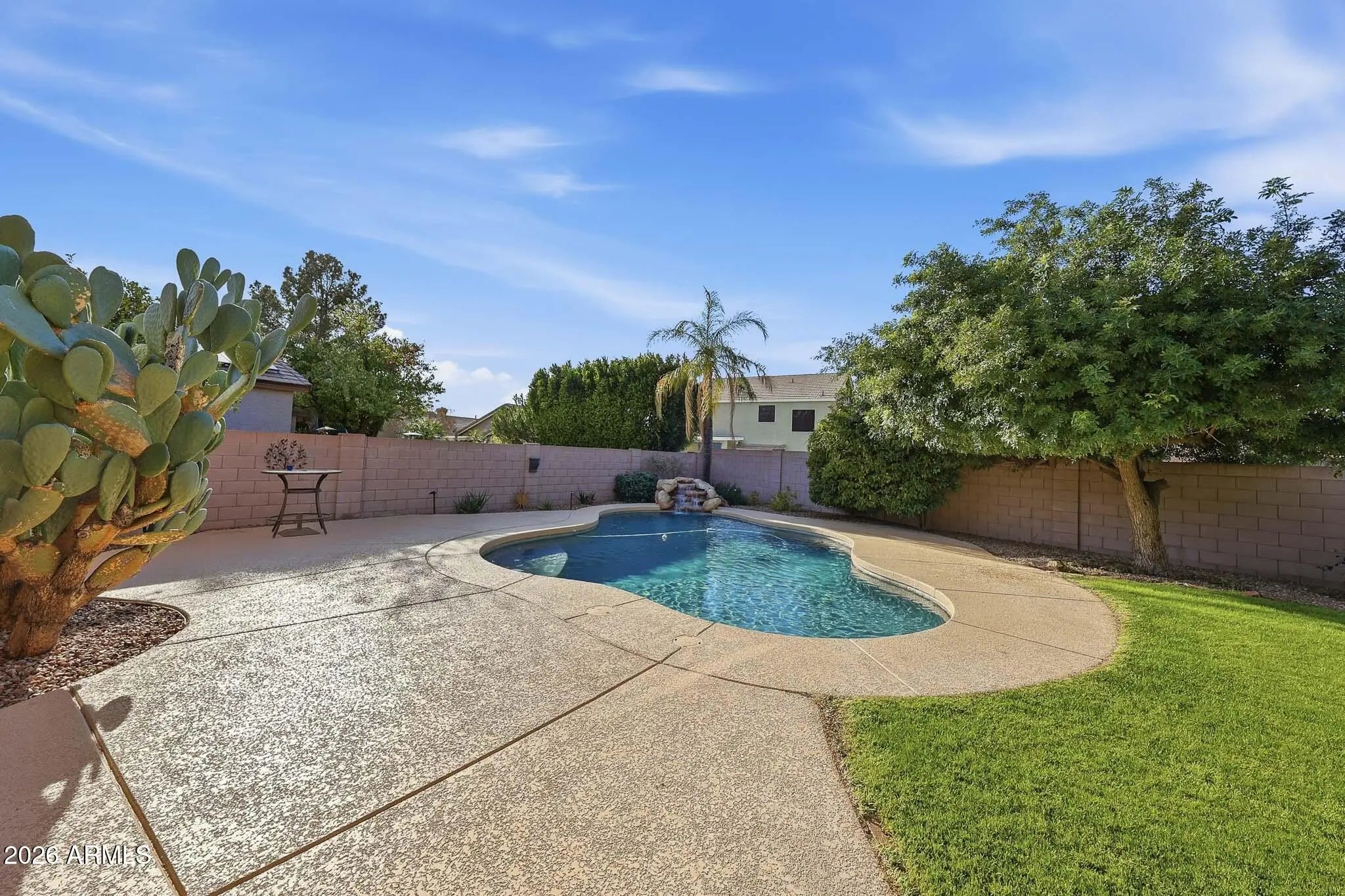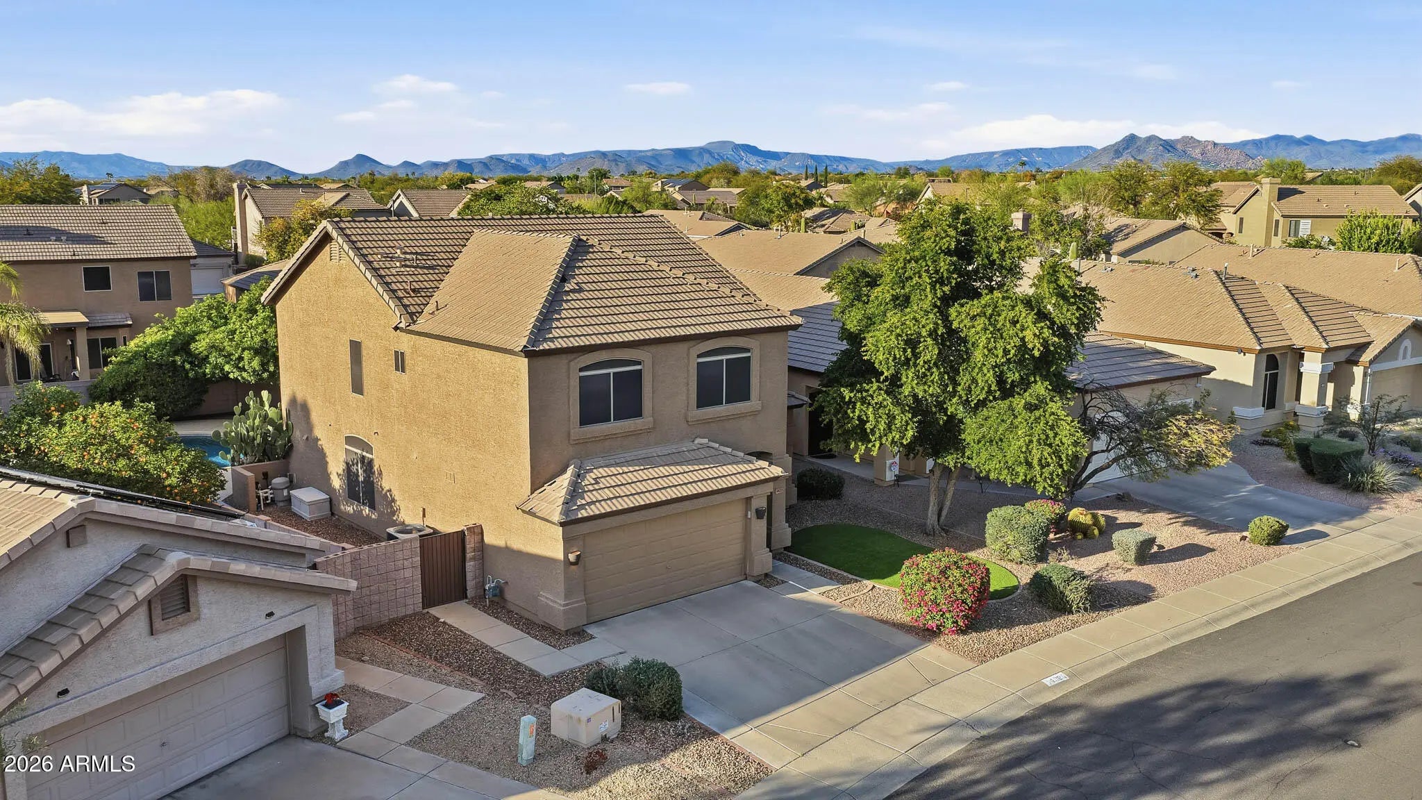 This beautifully maintained 4-bedroom, 2.5-bath home offers the perfect blend of comfort, functionality, and Arizona lifestyle living. From the moment you step inside, you'll appreciate the pride of ownership and thoughtful layout designed for both everyday living and entertaining. The spacious primary suite is a true retreat, featuring a large walk-in closet, a luxurious soaking tub, and plenty of room to unwind at the end of the day. The additional bedrooms provide flexibility for family, guests, or a home office. The heart of the home flows seamlessly into the backyard oasis, complete with a sparkling pool and tranquil water feature, perfect for relaxing weekends or hosting gatherings. The oversized backyard also features mature citrus trees, offering both shade and fresh fruit right from your own garden. Enjoy peace of mind with new appliances and a home that has been meticulously cared for. Located just minutes from shopping, dining, and entertainment at Desert Ridge Marketplace, you'll have everything you need within easy reach. Plus, the home is situated in one of the area's top-rated school districts, making it an exceptional opportunity for families.