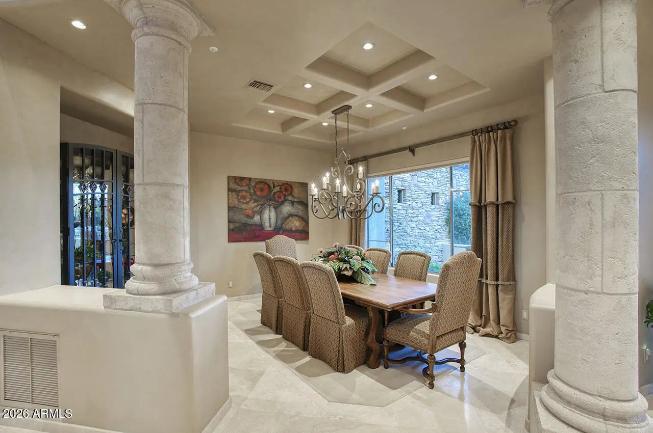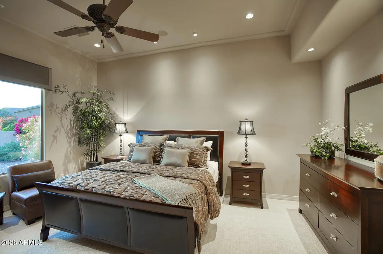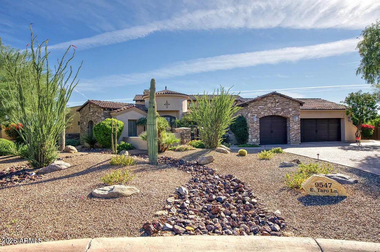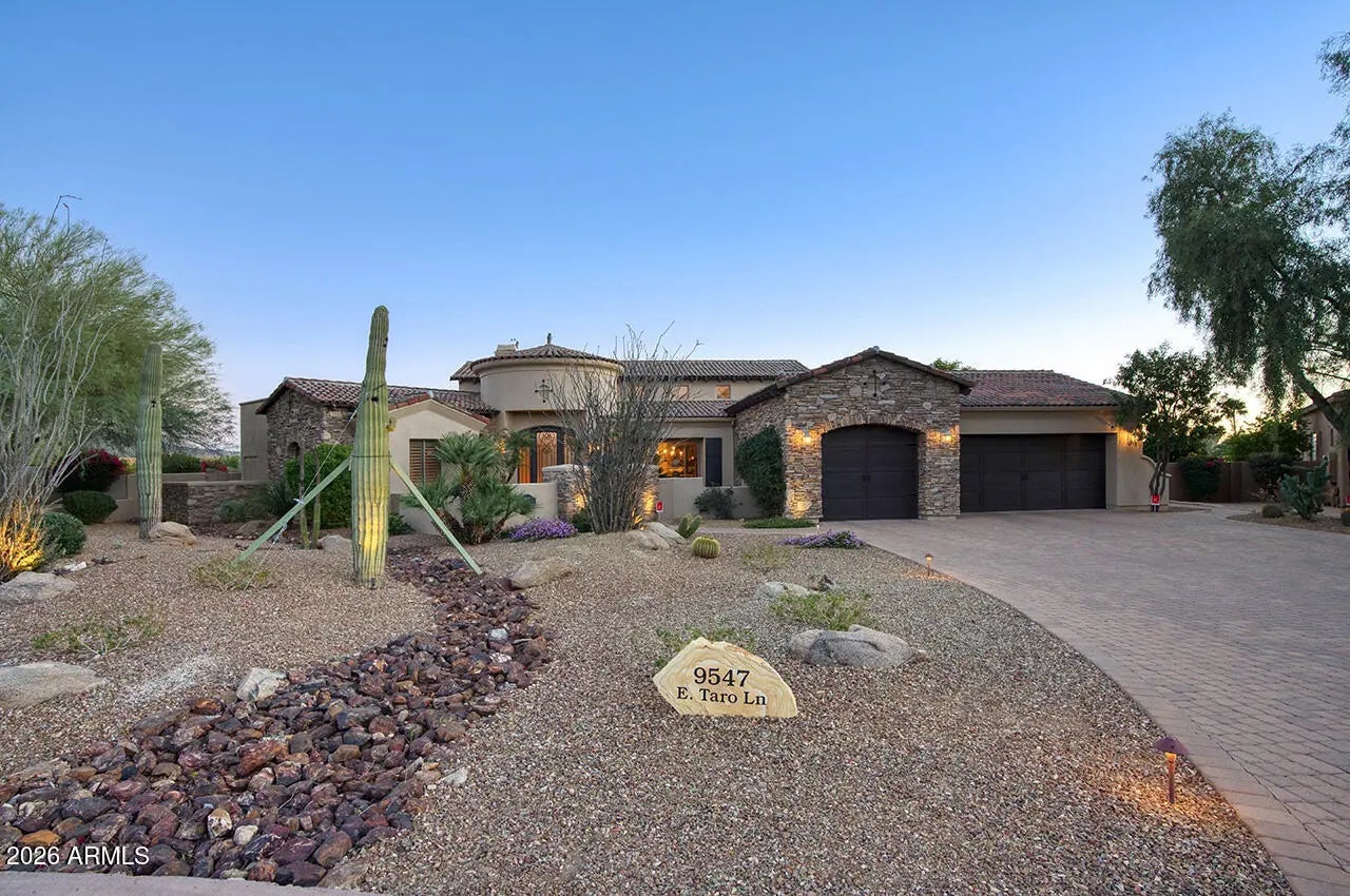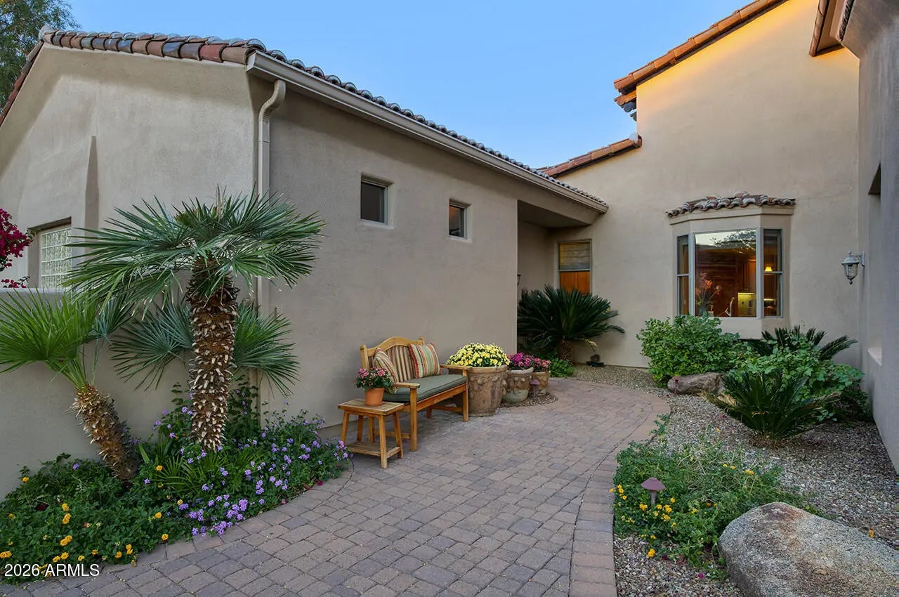 Nestled within the charming 23-home, all single-story gated enclave of Toscana, this desirable ranch estate is a true North Scottsdale jewel and one of the area's best-kept secrets. Set on an exceptional oversized lot, the home enjoys picturesque McDowell Mountain backdrop views and shimmering city light vistas, offering a rare sense of space, privacy, and presence within this intimate, one-level community. Ideally located immediately south of DC Ranch, the setting combines prestige, tranquility, and convenience. Designed for effortless living and entertaining, this meticulously maintained, one-owner residence offers a highly desirable floor plan featuring four bedrooms plus a den, thoughtfully arranged with a split owner's suite. Spacious living areas form the heart of the home, creating a seamless flow that enhances both everyday comfort and entertaining ease. Seamless indoor-outdoor living defines the lifestyle, with living spaces opening to a resort-style backyard that feels like a private retreat. Outdoors, enjoy an expansive covered patio, multiple lounging and entertaining areas, a putting green, fire pit, and a sparkling pool and spaperfect for relaxed afternoons or elegant evenings under the desert sky. The oversized lot provides exceptional space and privacy, elevating the sense of resort living in the heart of North Scottsdale.