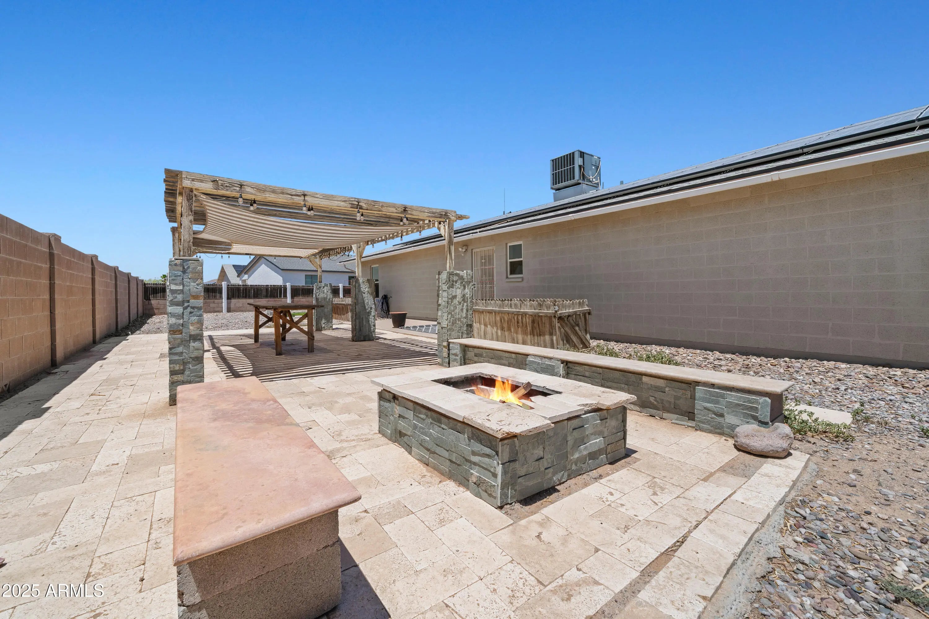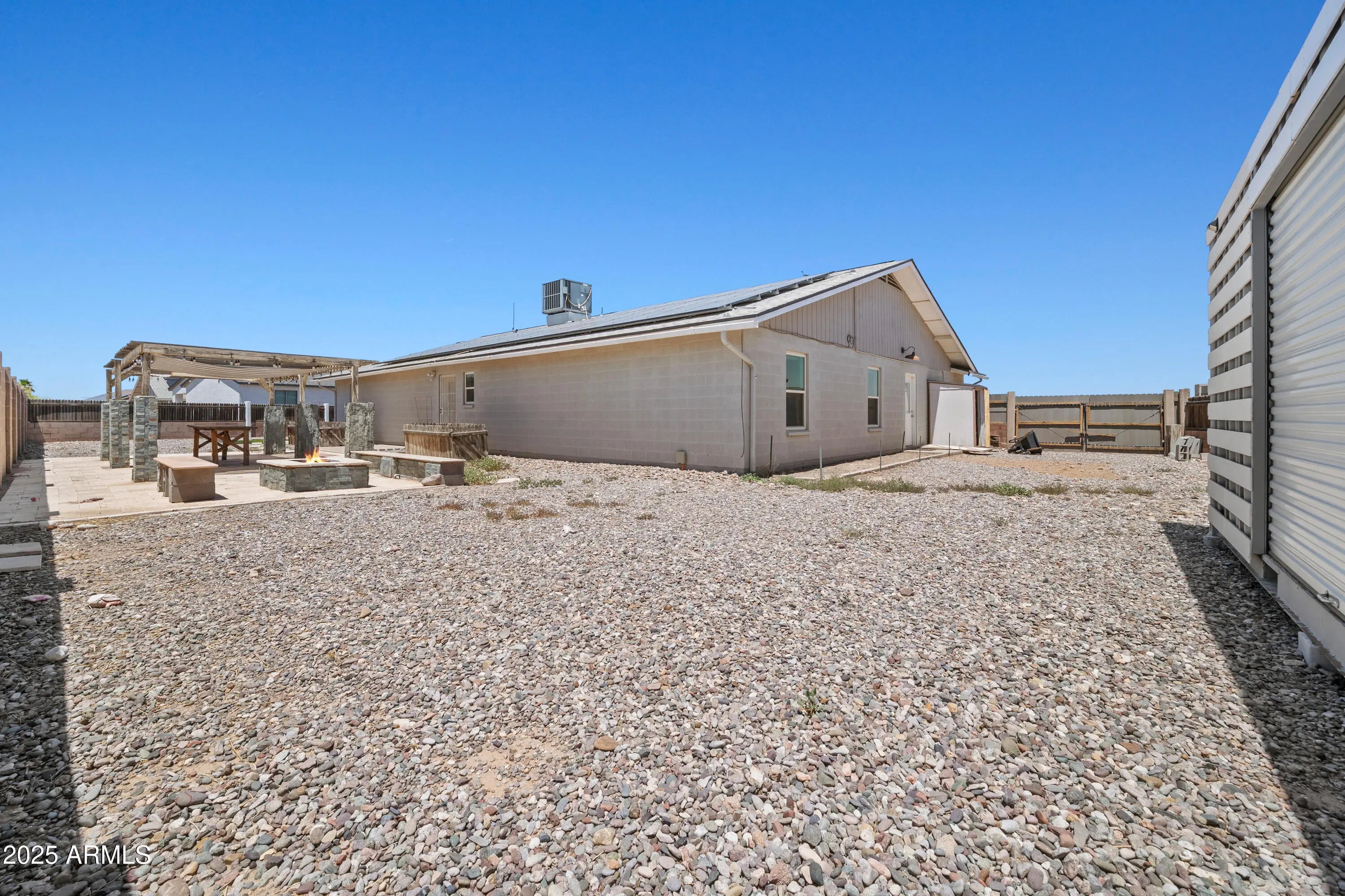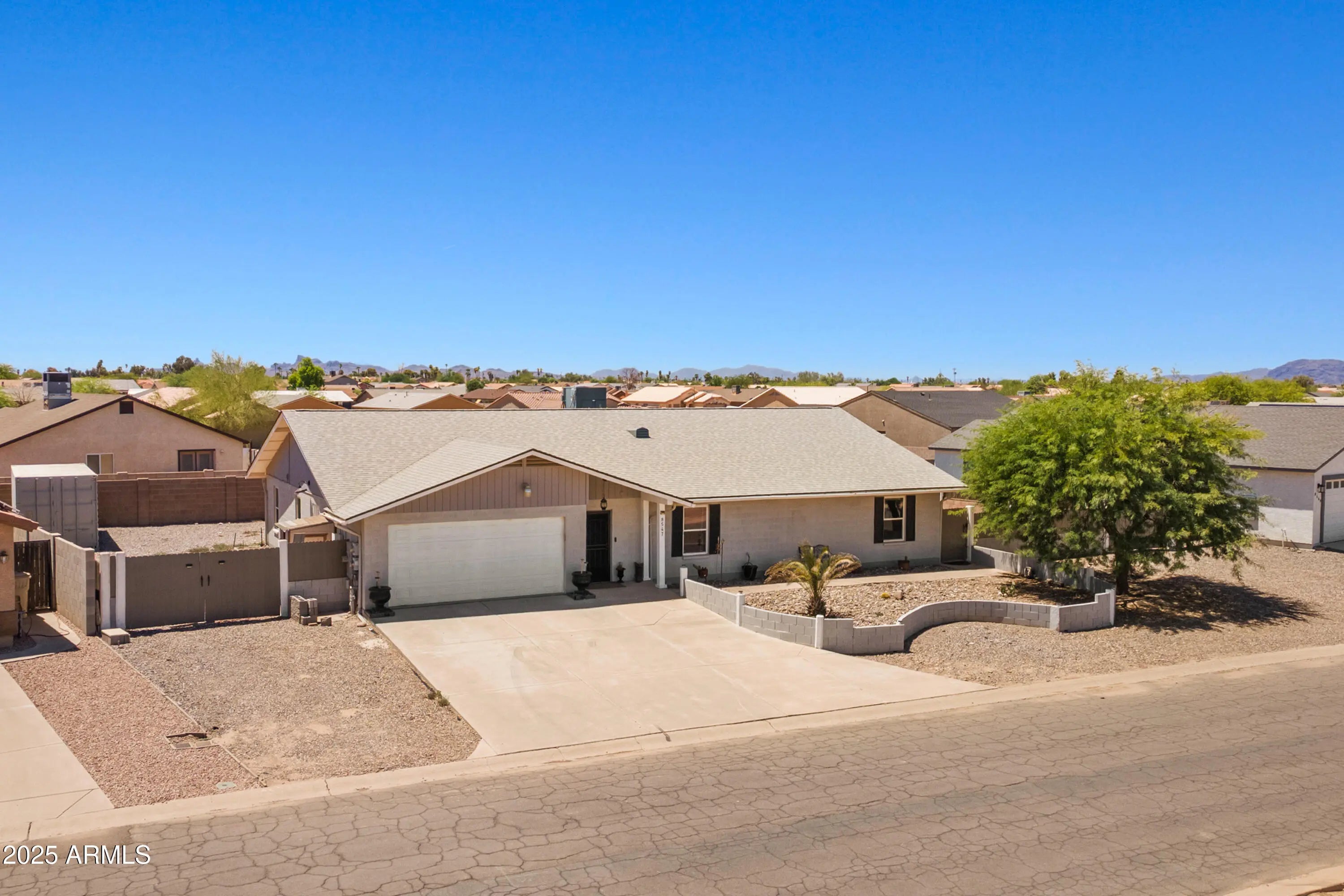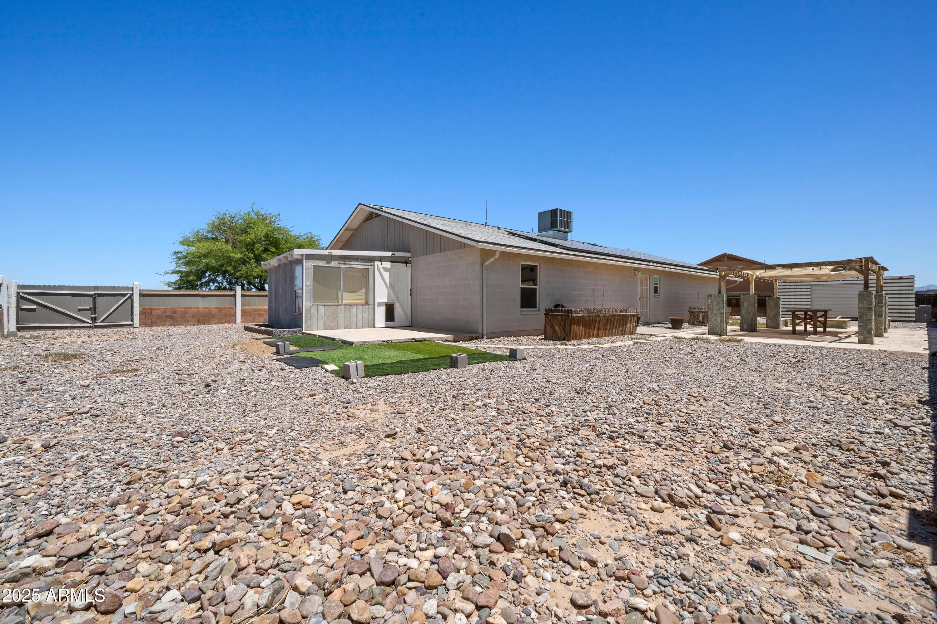Exceptional fully remodeled 4-bedroom home situated on a rare double lot with NO HOA. This move-in-ready property offers the perfect blend of style, space, and functionality. The custom-designed kitchen features granite countertops, subway tile backsplash, oversized island, abundant cabinetry, and LED lighting throughout. Modern concrete flooring flows seamlessly across the home, creating a clean and cohesive look. The spacious floor plan includes four bedrooms, a large bonus room, and an Arizona room, ideal for entertaining, game nights, or quiet evenings at home. Major upgrades provide lasting peace of mind, including a new HVAC system (2019), new roof (2021), new water heater (2023), and a HYDRO QUAD whole-house water filtration system. A solar-leased system installed in October 2018 helps enhance energy efficiency year-round. The expansive double lot offers exceptional outdoor flexibility with RV and boat parking, two RV gates, and ample space for trailers, toys, or additional vehicles. Conveniently located less than 10 minutes to I-10 and approximately 15 minutes to the Promenade at Casa Grande, offering easy access to shopping, dining, and entertainment.