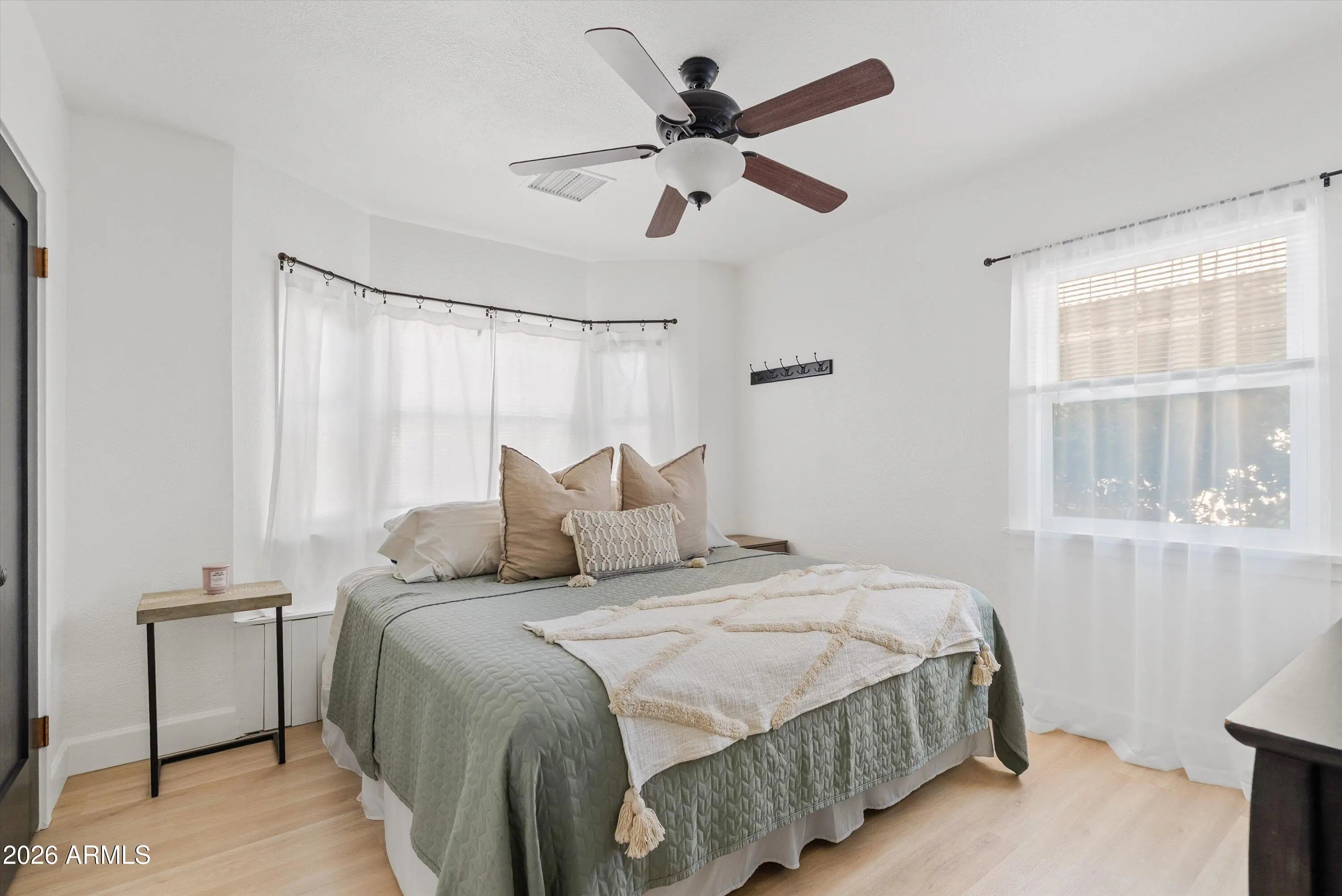 Enjoy upscale Downtown Phoenix living at it's finest! Located in the heart of Fairview Place Historic District, this beautifully restored 2-bedroom, 1-bath home offers timeless character with the benefit of extensive modern upgrades. Original charm and architectural details have been carefully preserved while major systems and finishes have been thoughtfully updated, creating a home that feels both classic and comfortable. The functional floor plan provides an easy, natural flow. Inside, you'll find all new flooring and baseboards, fresh interior and exterior paint, and recessed lighting added in the kitchen for a bright, updated feel. The kitchen also includes water professionally ran to the refrigerator. A recently finished laundry room adding convenience and additional usable space. Behind the walls, the improvements are significant. The home features a brand-new roof, new A/C unit, all new A/C ductwork and returns, and a new tankless water heater relocated to the exterior side of the home (fully permitted). All copper plumbing has been installed throughout, along with all new electrical wiring within the walls and outlets. The sewer line has also been recently hydro jetted with a new connection to city sewer. Old insulation was removed and replaced with newly blown insulation for improved energy efficiency. The oversized lot offers beautifully refreshed outdoor space with all new front and backyard landscaping done professionally by design, a newly installed irrigation system, and a new walkway. A new front concrete patio enhances curb appeal as well as provides the perfect spot to sip your morning coffee while enjoying your new neighborhood full of character- where all the homes are unique and speak their own story. While the backyard includes a brand-new pergola, ideal for outdoor dining and relaxing. This historic district home combines preserved character with the infrastructure and upgrades buyers want, delivering style, comfort, and long-term peace of mind.