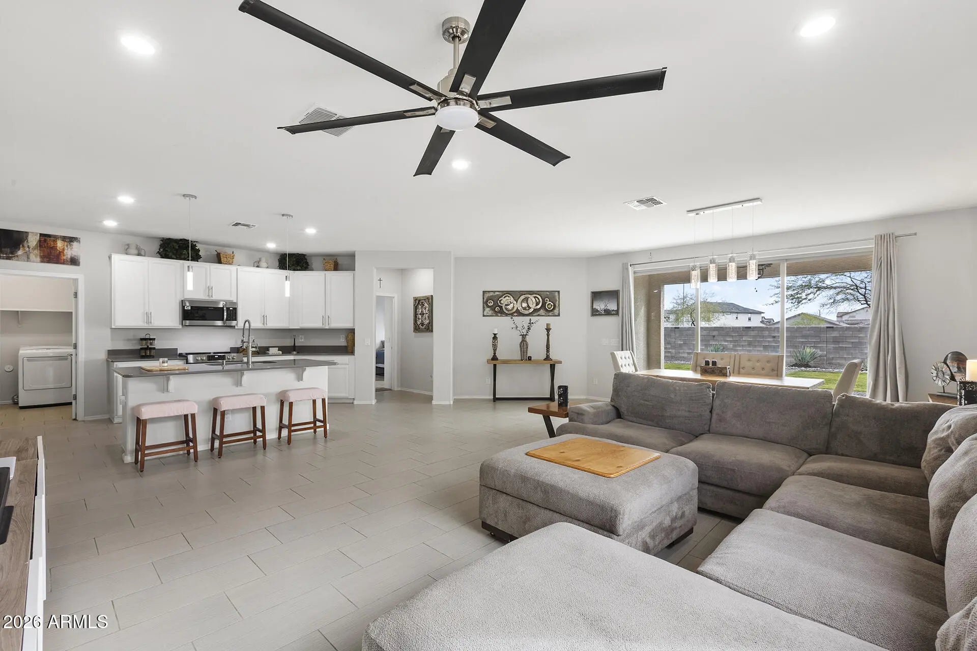 Updated 3-bed, 2-bath home offering 1,885 sqft of spacious living - move-in ready and beautifully maintained! Assumable VA loan with substitution of entitlement with a $330,000 balance at just 2.25% - an incredible opportunity in today's market! The home features a bright open floor plan and a spacious kitchen designed for both style and function, complete with quartz countertops, modern plank tile flooring, a pantry, and a center island. A new stainless steel refrigerator (2026) is included, along with the washer/dryer. The primary suite offers a walk-in closet and full bath. Recent upgrades include 18'' insulation added in 2025 and three dedicated breakers installed in the garage. This home blends modern updates and exceptional financing value. A rare opportunity you don't want to miss!