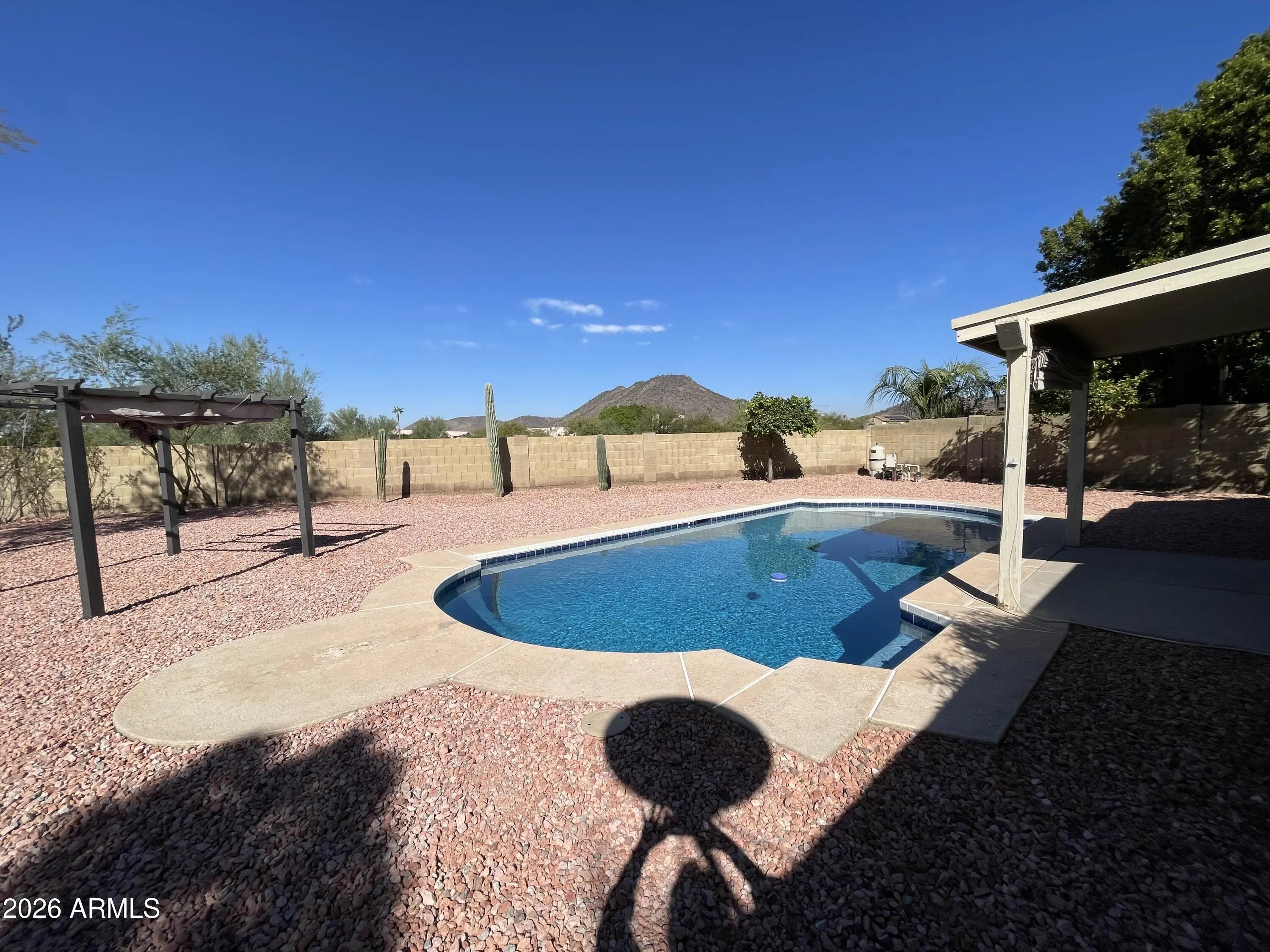 Beautifully updated 4-bedroom, 2-bath rental backing to state land with stunning mountain views. Light and bright with vaulted ceilings throughout, this home has been completely remodeled—everything is new, including a large sparkling pool. All appliances included, plus washer and dryer. Owner provides weekly pool service and yard maintenance for easy, low-maintenance living. Prime location with quick access to the 101 freeway & 51st Ave and just down the street from Mountain Shadows Elementary. Close to Peoria Sports Complex, Arrowhead Mall, Desert Ridge, Scottsdale, and Cardinal Stadium. Move-in ready and exceptionally clean. Sorry, no pets.