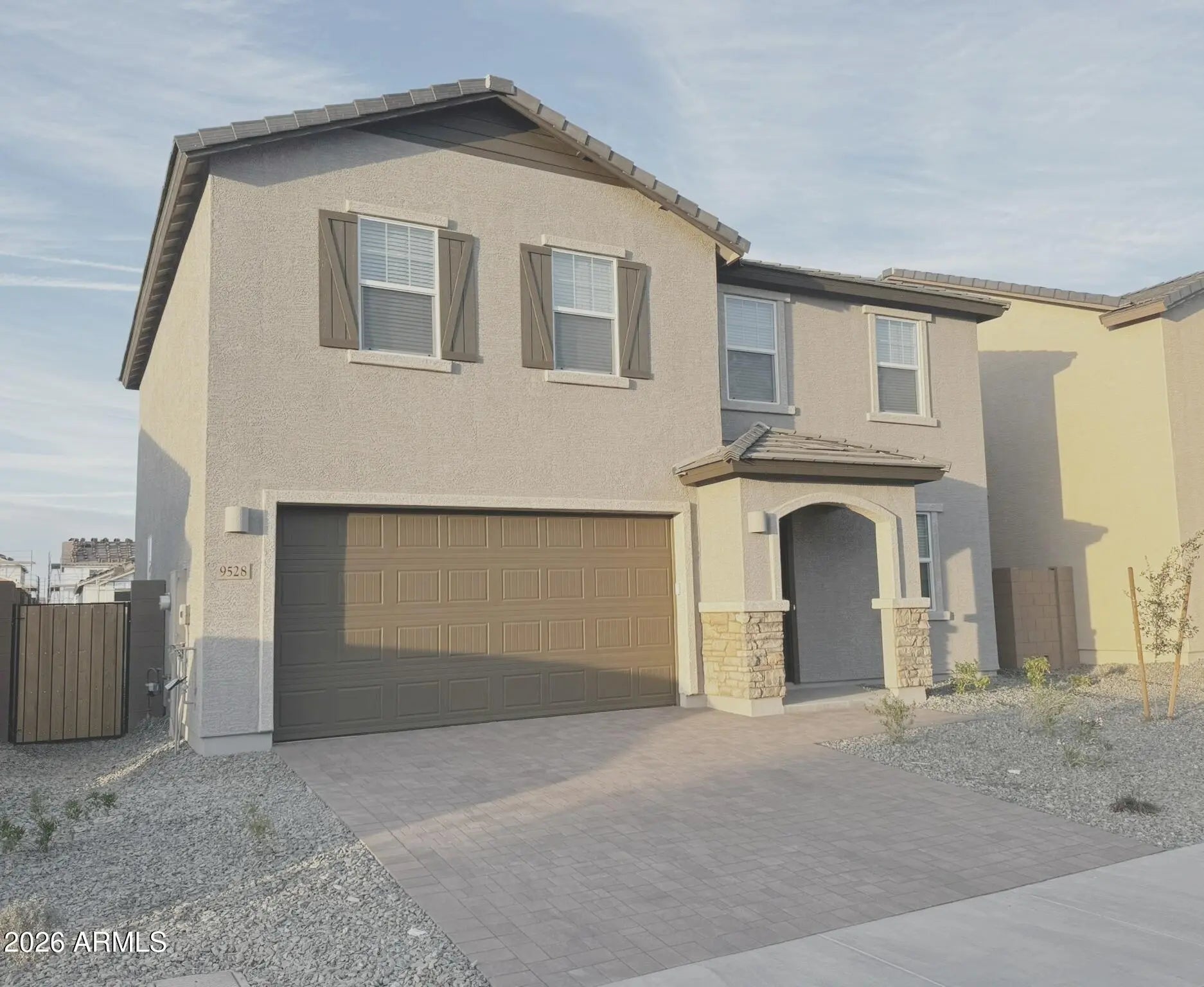This brand-new, never-lived-in home is located in the desirable Western Gardens community, just minutes from the I-10, 101, 202, and 303. The open-concept first floor seamlessly connects the kitchen, dining, and living areas, with a private bedroom near the entry ideal for guests or a home office. Upstairs features a laundry room with washer and dryer, four additional bedrooms, a spacious loft, and a stunning owner's suite with a private bath and large walk-in closet. The backyard is ready for entertaining with turf, a firepit area, and an oversized yard. Community amenities are under development, including a pool, basketball and pickleball courts, and future gated access. Required Fees: High-speed fiber internet: $60/month, Monthly Admin Fee 2.95%