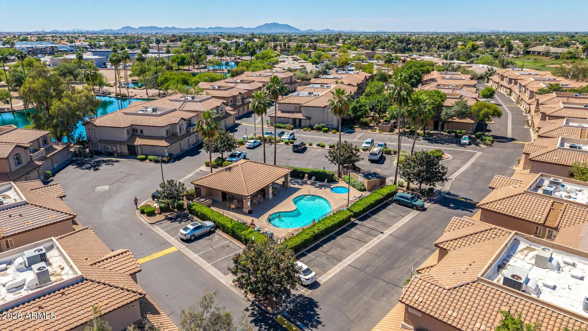 Welcome to this beautifully maintained, owner-occupied, move-in ready condo in the sought-after Superstition Lakes community in Mesa! This 3-bedroom, 2-bath home offers 1,359 sqft of comfortable living space with peaceful water fountain sounds from your private patio. Inside features wood plank flooring through the main living areas and primary bedroom, with new carpet in the two guest rooms for added comfort. New carpet on stairs. The open-concept design offers a spacious living room, well-appointed kitchen, and abundant natural light. Two-car garage included. Community pool access plus water, sewer, garbage, and cable covered. Short-term rentals allowed--ideal for investors, seasonal residents, or full-time living. Walk to shopping, golf, and dining.