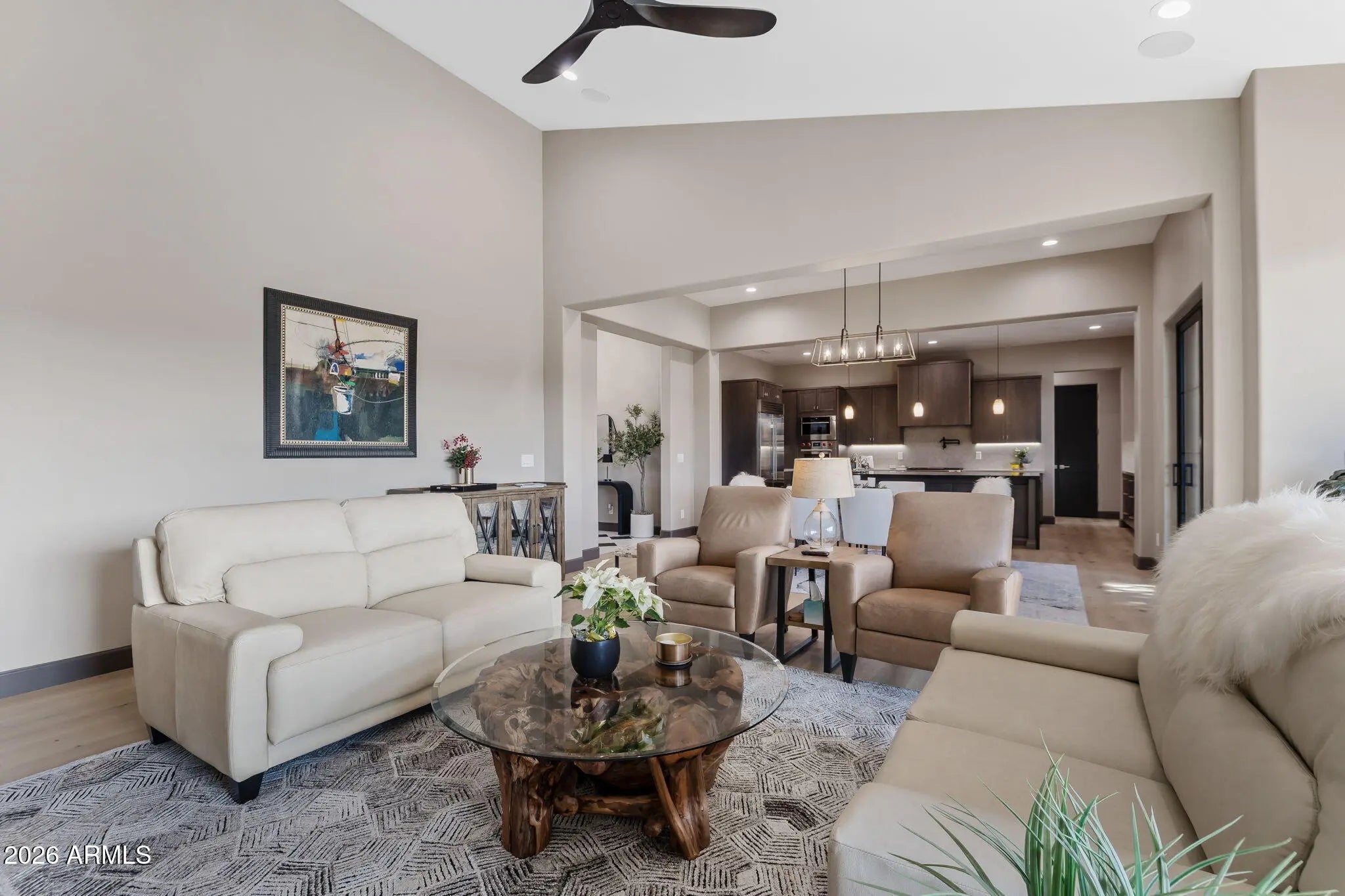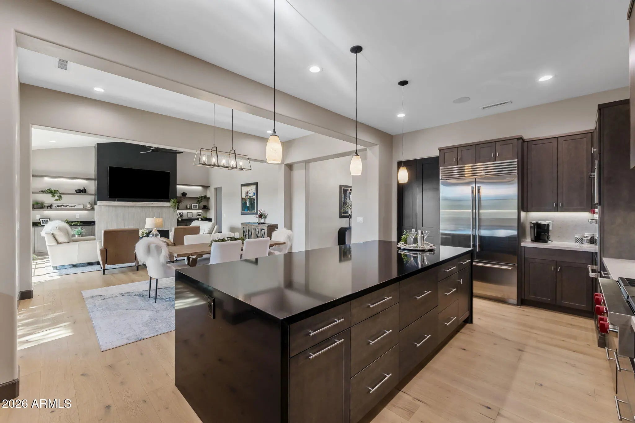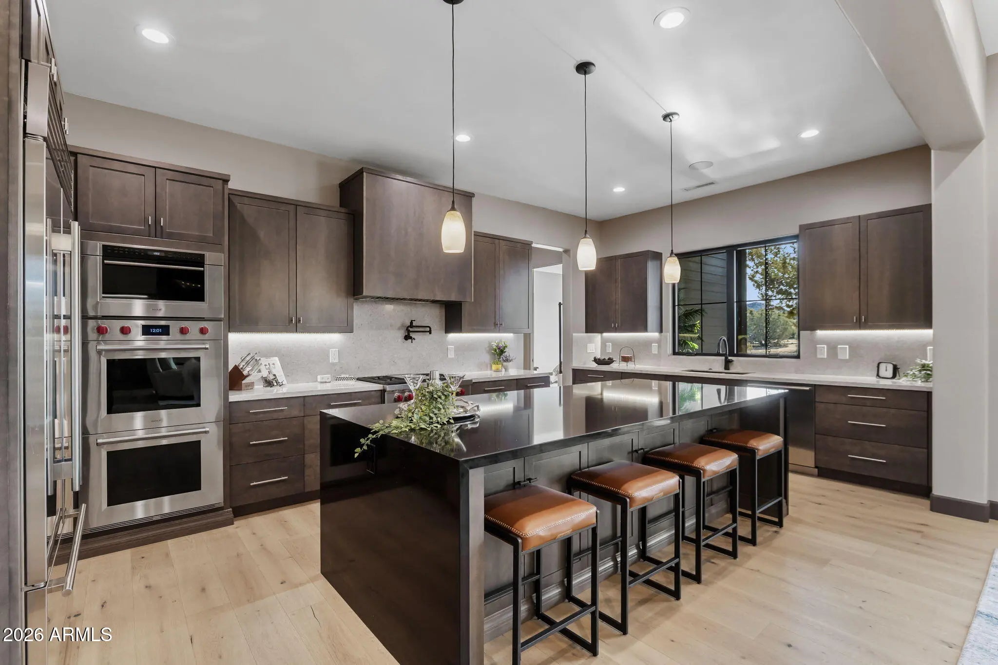 Stunning Designer Home in Talking Rock Ranch - Offered Fully Furnished Welcome to this gorgeous, modern home completed August 2025, located in the gated Talking Rock Ranch Golf Community, a private and serene neighborhood in Prescott. Perfectly positioned on a rare double lot spanning over one acre, this exceptional residence offers privacy, luxury, and thoughtful design throughout. The home features three bedrooms, three full bathrooms, and a powder room, along with a spacious three-car garage finished with epoxy floors, quiet doors, and extensive storage. From the moment you arrive, the dramatic steel and glass pivot-style front door opens into a wide, light-filled foyer that immediately showcases the home's designer aesthetic and high-end finishes. Offered fully furnished! The heart of the home is the open-concept kitchen and family room, anchored by a breathtaking floor-to-ceiling accent fireplace with custom tile work, handcrafted mantle, floating shelves, and beautifully coordinated flooring. The chef's kitchen is a true showpiece, featuring an oversized waterfall island with black quartz countertops, under-cabinet lighting, and an impressive 34 pull-out drawers with soft-close doors and drawers throughout. High-end Wolf appliances include double ovens, a four-burner range with griddle and self starting kitchen hood, pot filler, Wolf Microwave, Cove dishwasher, complemented by a Sub-Zero refrigerator. A large walk-in pantry with a built-in bar adds both functionality and style, making the space ideal for entertaining. Designer finishes continue throughout the home, including porcelain shower surrounds, Milgard doors and casement windows, a linear fireplace, wired surround sound, security cameras, an 85-inch TV, and a three-zone HVAC system for year-round comfort. Extensive storage and carefully curated details elevate every room, creating a home that is both beautiful and highly functional. Seamless indoor-outdoor living is enjoyed through a large covered patio, perfect for relaxing or entertaining while taking in the fresh mountain air and scenic surroundings. The patio features a tongue-and-groove finished ceiling, built-in speakers, and multiple gas stubs ready for a future barbecue or fire pit. This home is offered fully furnished with high-end designer furnishings, making it truly move-in ready, and also includes a golf cart for convenient access throughout the Talking Rock Ranch community. Life in Talking Rock Ranch offers an unparalleled lifestyle where luxury meets authenticity. Residents enjoy access to a private 18-hole Jay Morrish-designed championship golf course, an elegant clubhouse with full-service dining and event space, a fully equipped fitness center with workout classes and spa facilities, a pool, dog park, and miles of scenic trails for hiking, horseback riding, and outdoor exploration. A gated entry with 24/7 security provides privacy and peace of mind, while a vibrant calendar of social events fosters one of the most welcoming communities in Northern Arizona. This exceptional home invites you to experience the best of Talking Rock Ranchwhere Western soul, open land, and refined modern living coexist effortlessly.