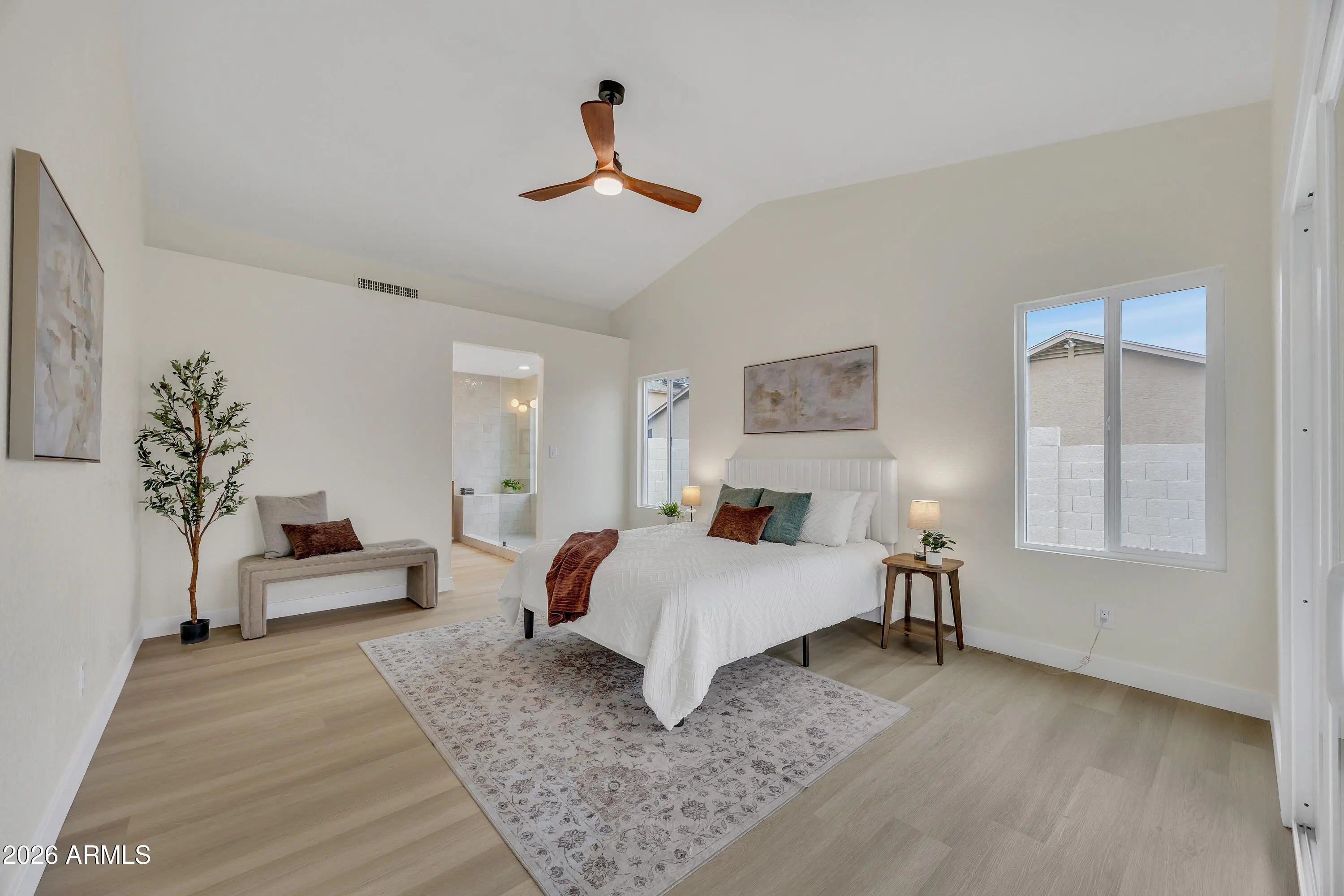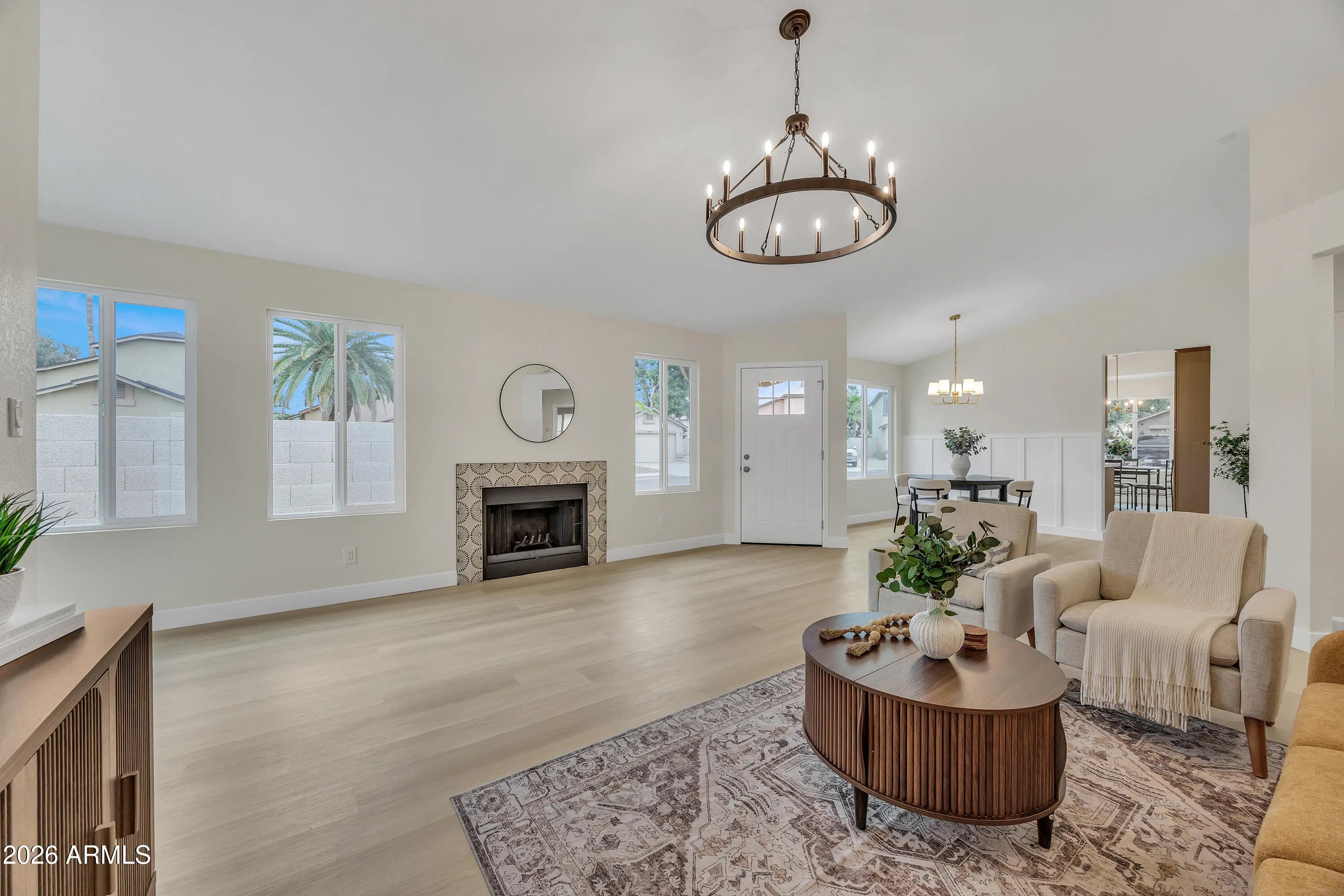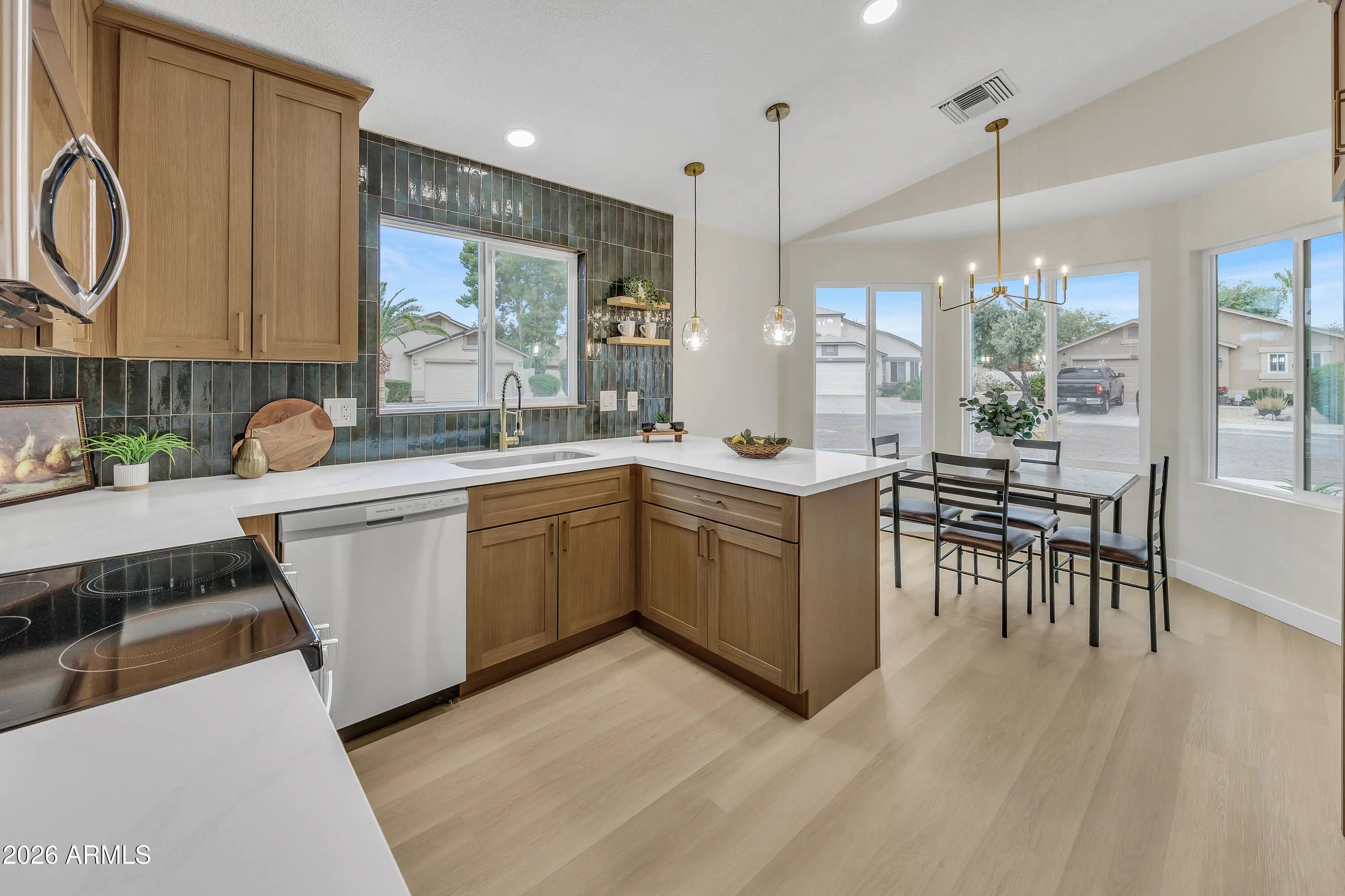 Welcome to your new home in a highly sought-after North Phoenix Neighborhood located in a prime location minutes away from everything. This amazing 1,476 sq ft corner lot home has 3 bedrooms, 2 bathrooms, and a 2 car garage. Discover a fully renovated designer grade interior with NEW white oak cabinets, flooring, quartz countertops, new appliances, dualpane windows, tiled showers, NEWER roof and much more! Step inside to be greeted by the expansive vaulted ceiling open floor plan, complemented by a beautiful open kitchen; creating an inviting atmosphere. Step outside to a beautiful large yard, featuring a covered patio, artificial turf, and mountain views! Don't miss the opportunity to make this truly turn key delightful home yours, that offers everything you need, this wont last long!