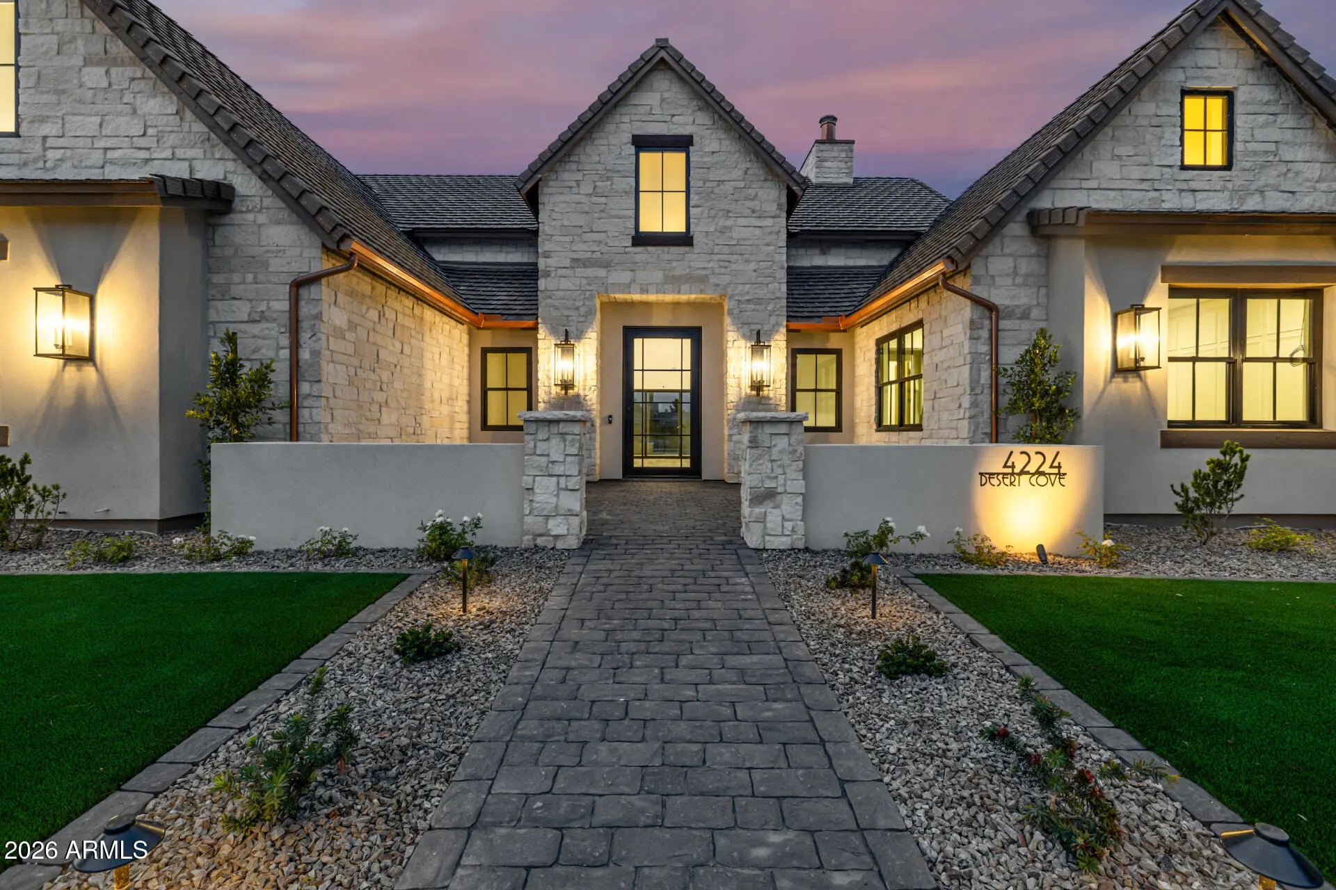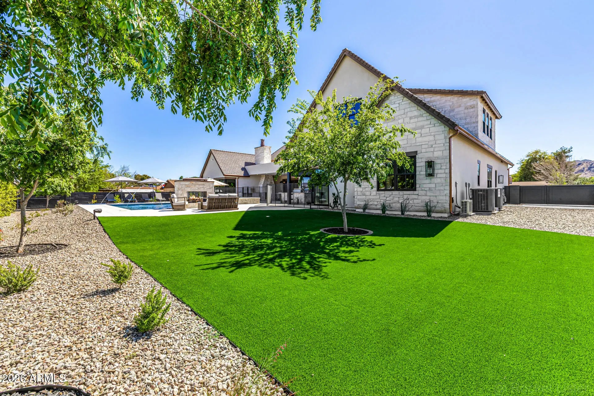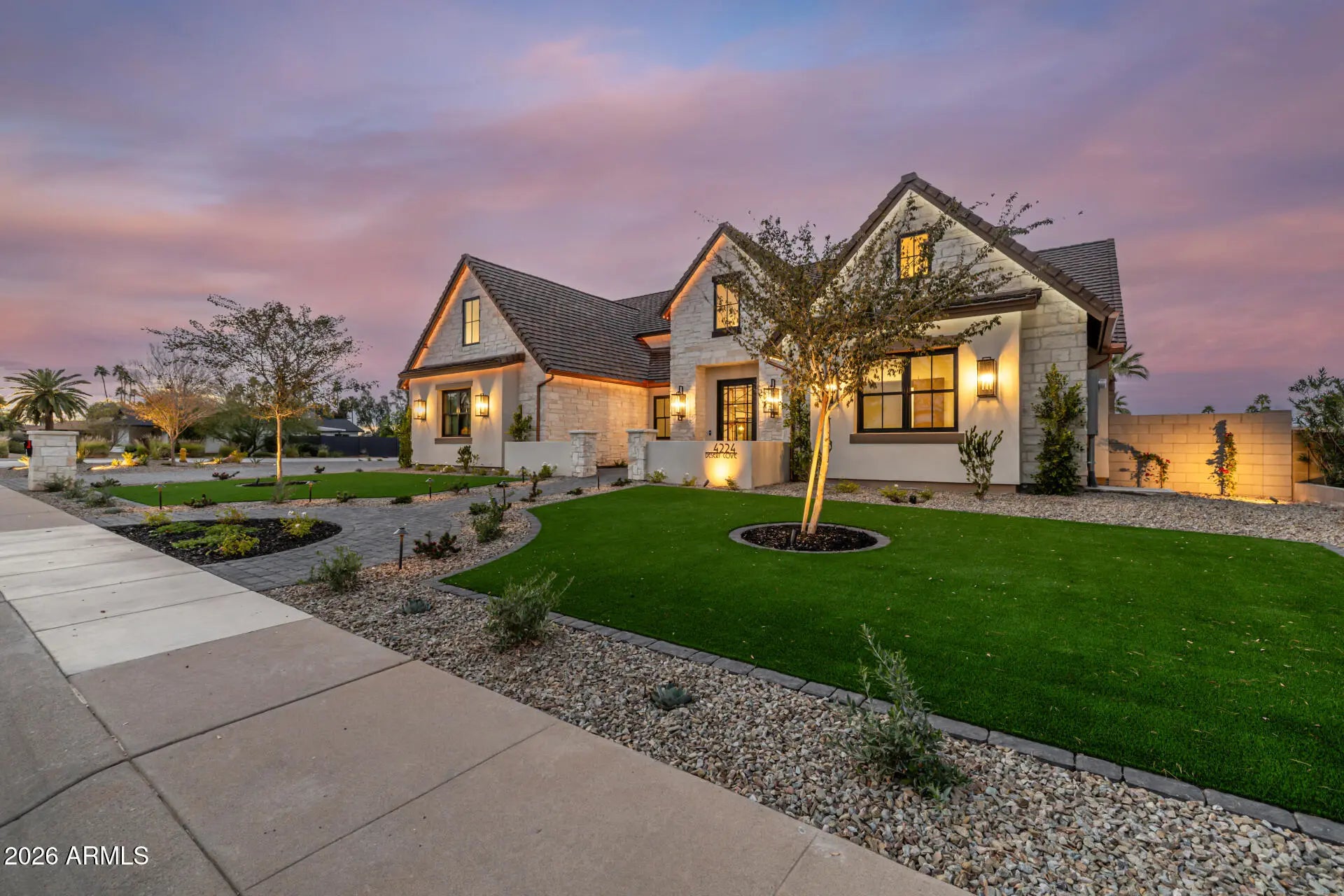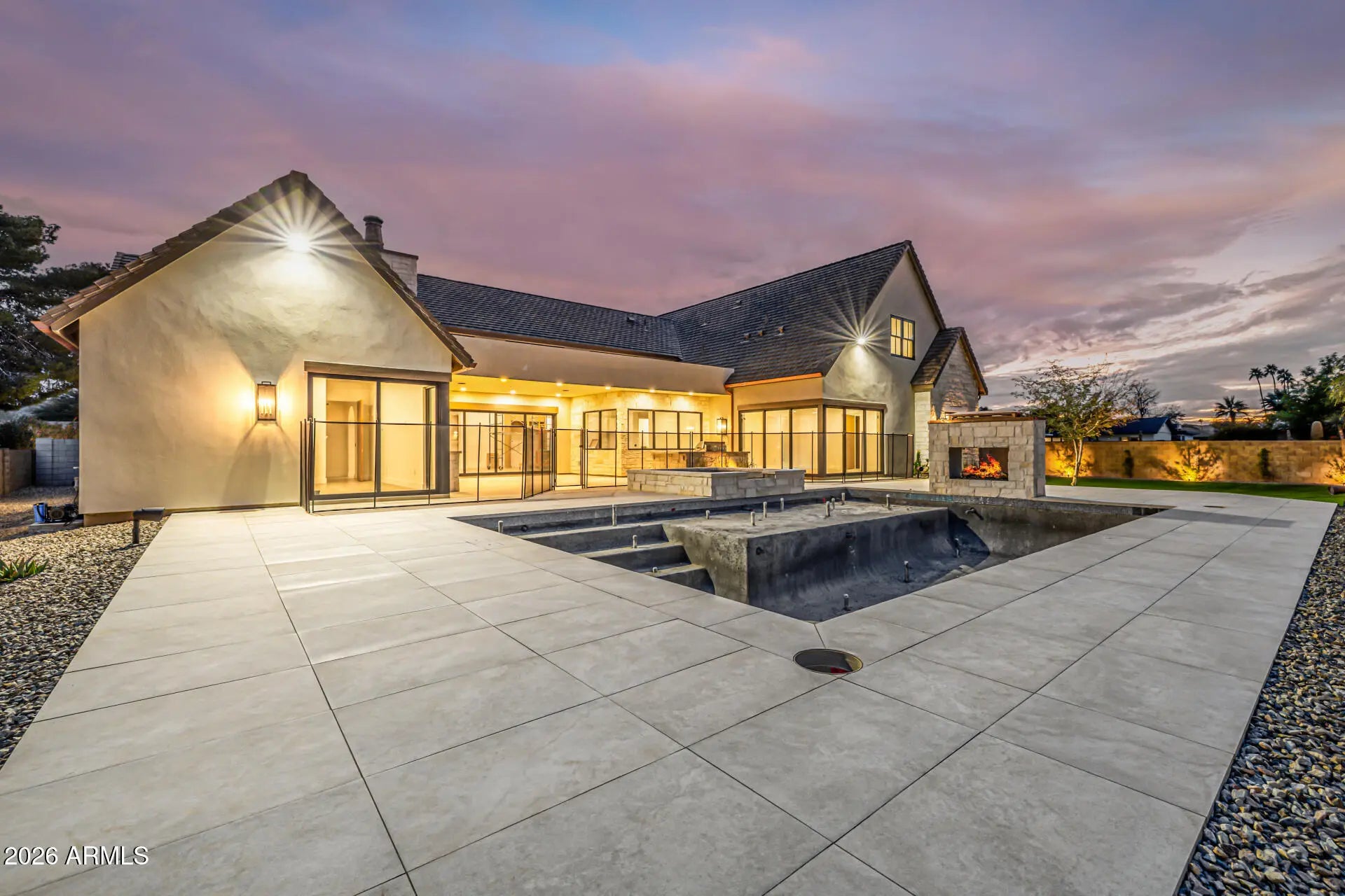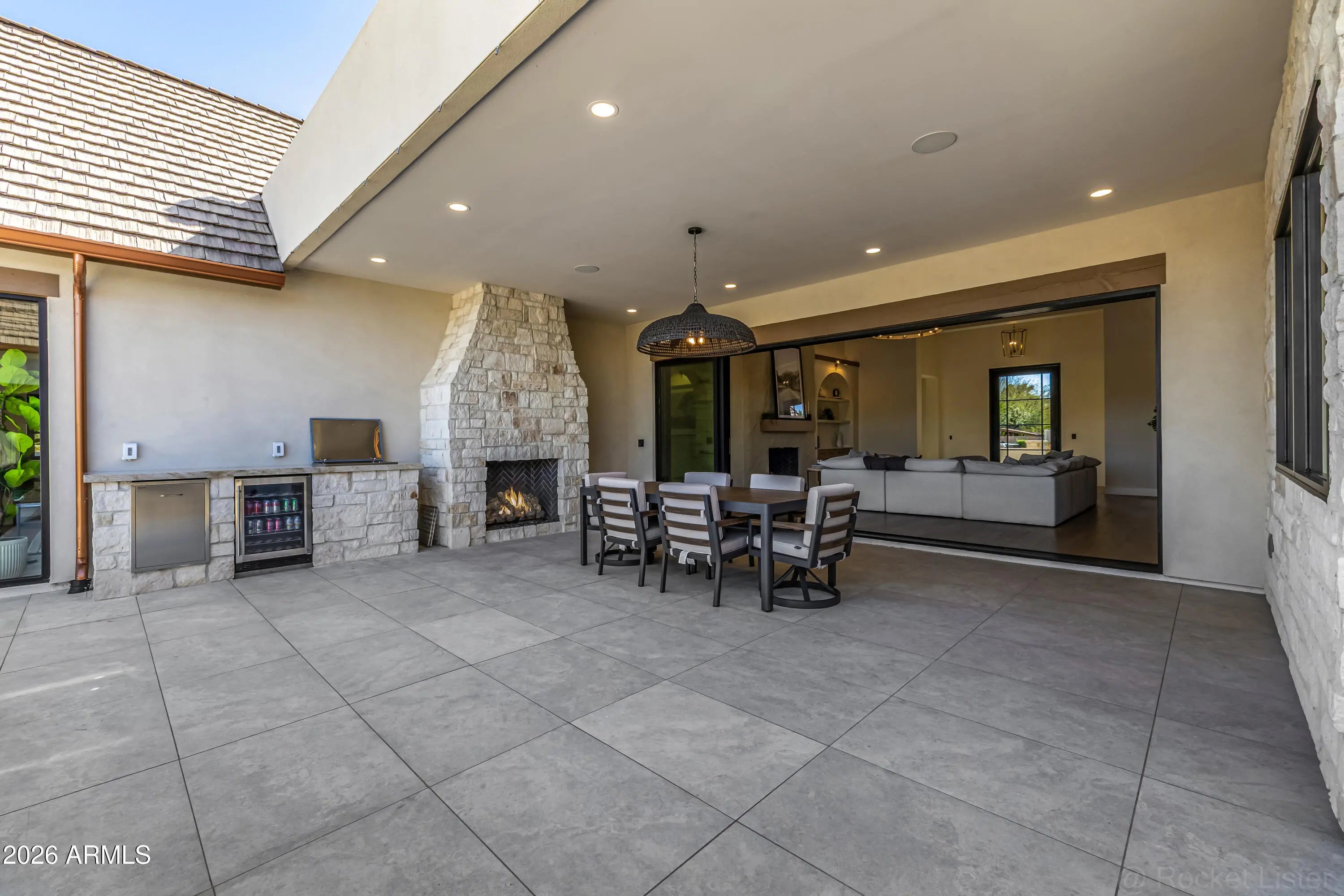 A rare opportunity to own new construction with true luxury finish and full smart-home integration just moments from Paradise Valley--offering comparable lifestyle at a more compelling value. A Fully Integrated Smart Estate in the Coveted Sheaborhood Set on a pristine nearly half-acre corner lot, this newly constructed 5,332-square-foot estate embodies elevated desert living with uncompromising design and fully integrated technology. Ideally positioned just moments from the revitalized PV District, home to sought-after retail, acclaimed dining, championship golf resorts, and neighborhood parks. The residence offers rare privacy while remaining effortlessly connected to Phoenix's most desirable destinations. A private courtyard entry introduces the home's striking stone-accented facade a architectural presence, framed by breathtaking mountain views. Designed for Elevated Living. The thoughtfully curated floorplan balances grand entertaining with refined everyday comfort: - Four spacious ensuite bedrooms - Four-and-a-half baths - Private executive office - Versatile game/flex lounge - Dedicated upstairs theater with chic concession loft At the heart of the home, a statement chef's kitchen pairs bespoke cabinetry with a full Sub-Zero and Wolf appliance suite, including a 60-inch range, separate 36-inch refrigerator and freezer (panel-ready), and a discreet walk-in pantry designed for seamless entertaining. A sophisticated full-service bar--complete with an 18-inch full-height Sub-Zero wine column and ice maker--anchors the main living spaces with understated glamour. Soaring vaulted ceilings with custom wood beams, an expansive sliding glass wall, and a fully glass-framed dining room blur the boundary between indoors and out, capturing uninterrupted views of the resort-caliber grounds. Intelligent. Intuitive. Effortless. A fully integrated Crestron system orchestrates the home with precision--curated lighting scenes, motorized shades, whole-home and exterior audio, climate control, pool and spa temperature, and garage access--all seamlessly controlled for a truly turnkey experience. A Private Sanctuary. The primary suite is a retreat unto itself. Corner glass doors open to tranquil views of the pool and landscaped grounds, while a 20' x 20' custom LED-illuminated dressing room evokes a luxury boutique experience. The spa-inspired bath offers a serene escape, where everyday living feels indulgent. Function meets refinement with dual washer/dryer setups in the main laundry room and an additional discreet unit within the primary suite for ultimate convenience. A Resort Beyond Compare. The backyard is designed as a private destination. A stunning pool with generous baja shelf and integrated spa anchors the space, surrounded by curated gathering areas. An outdoor kitchen--featuring a built-in grill, beverage refrigerator, and drop-in cooler--makes al fresco entertaining effortless. An intimate patio fireplace and a dramatic double-sided fireplace near the pool extend evenings well past sunset. Lush landscaping, an architectural wood-look concrete shake roof offering the warmth of timber with superior durability, double and single bay garages, and an RV gate complete this exceptional offering.