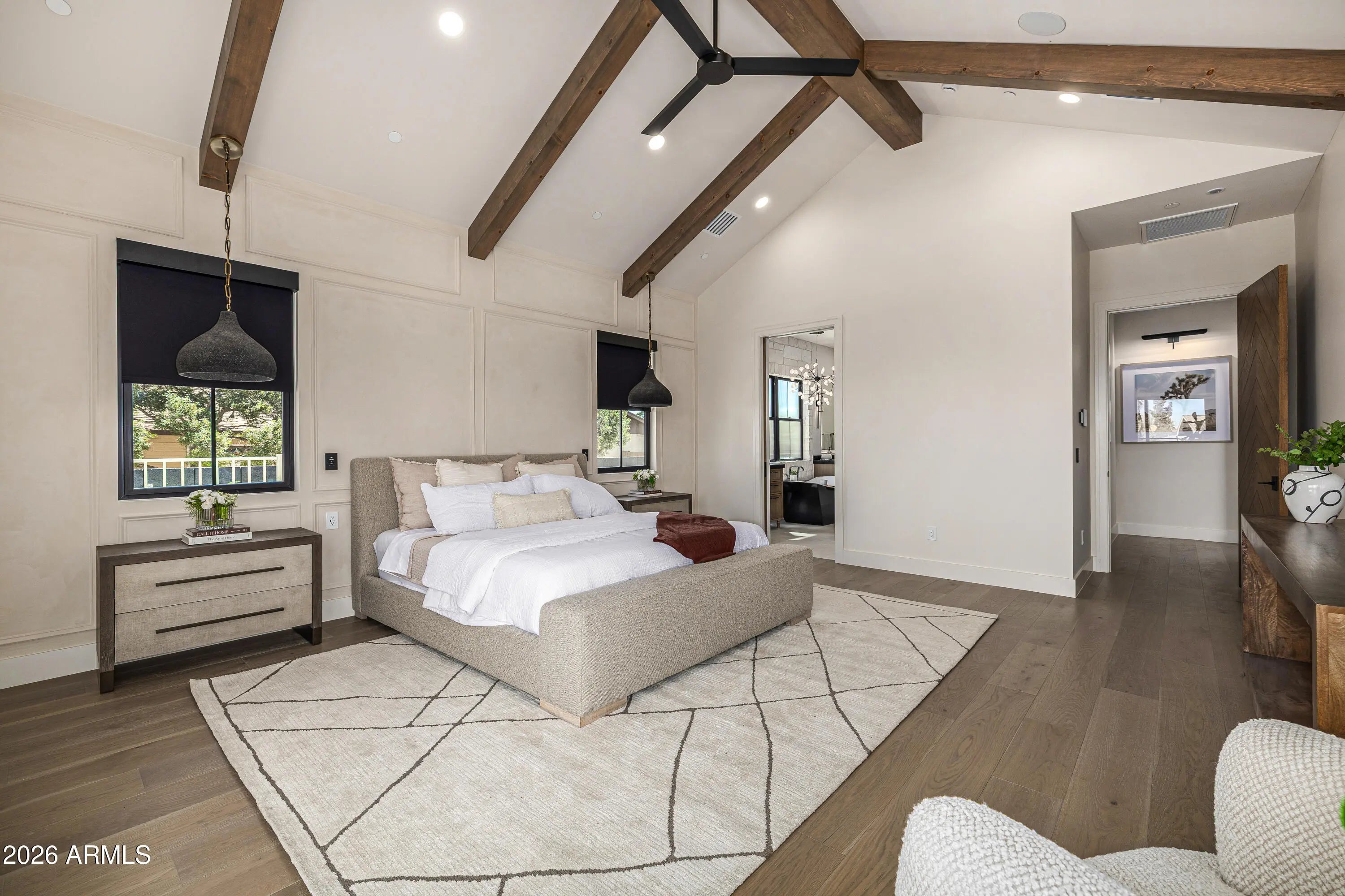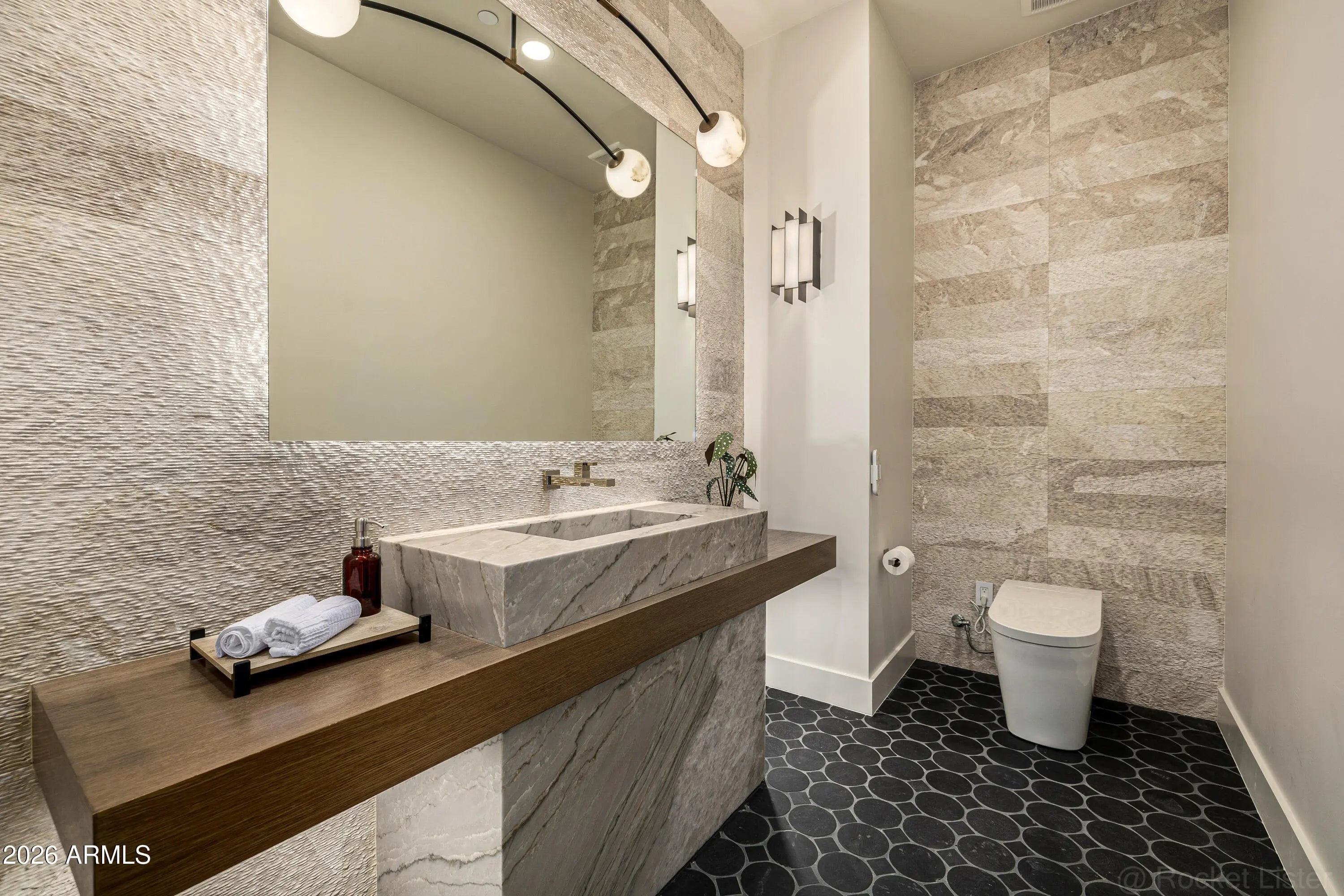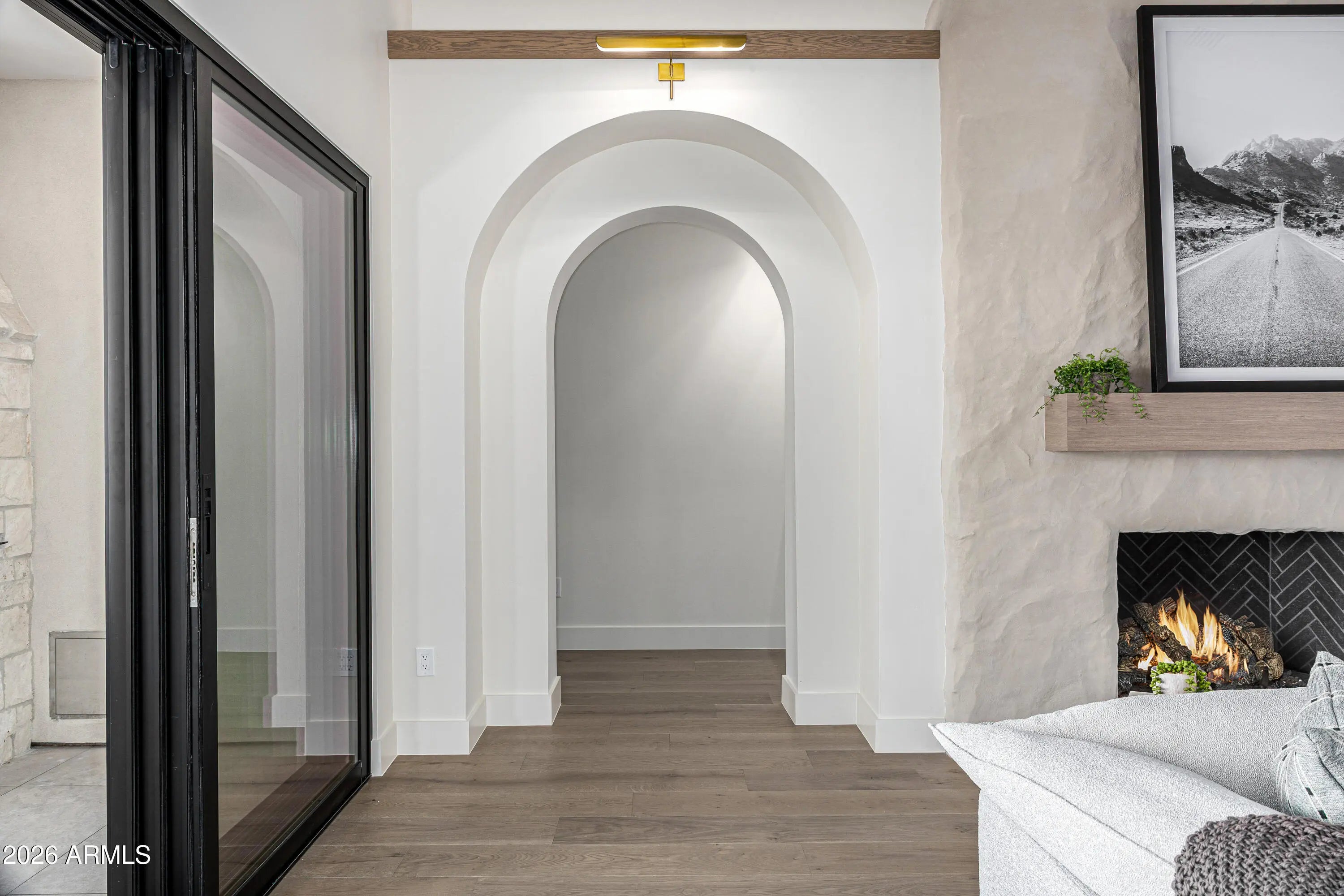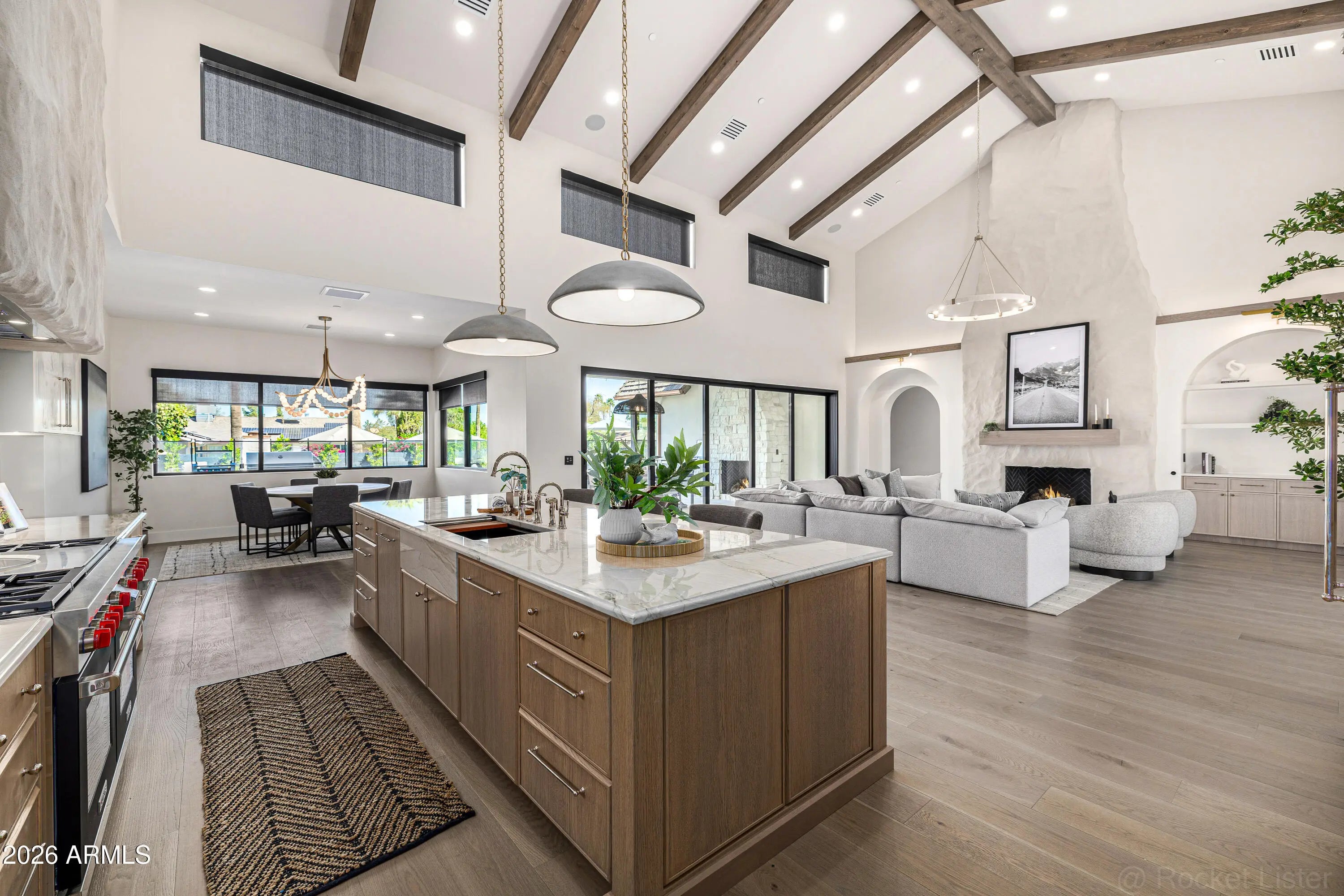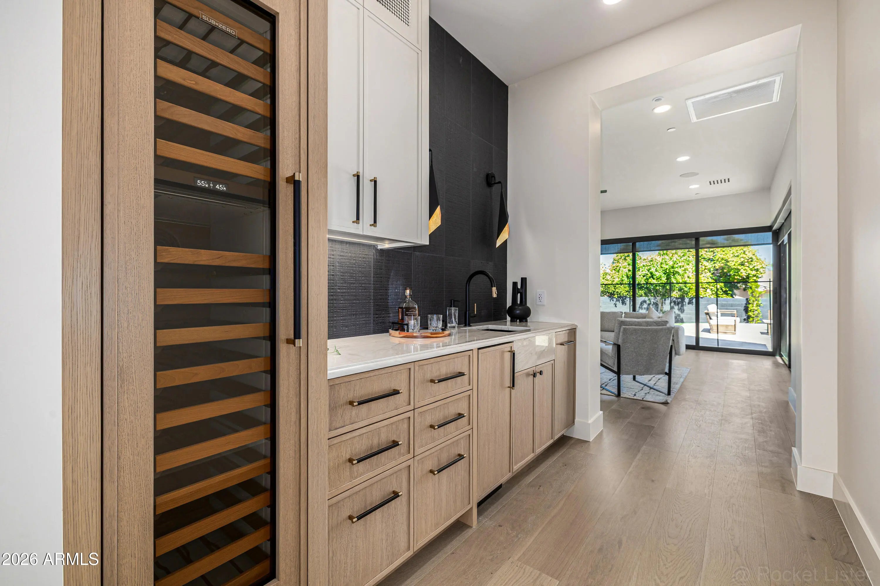 A rare opportunity to own new construction with true luxury finish and full smart-home integration just moments from Paradise Valley--offering comparable lifestyle at a more compelling value. A Fully Integrated Smart Estate in the Coveted Sheaborhood Set on a pristine nearly half-acre corner lot, this newly constructed 5,332-square-foot estate embodies elevated desert living with uncompromising design and fully integrated technology. Ideally positioned just moments from the revitalized PV District, home to sought-after retail, acclaimed dining, championship golf resorts, and neighborhood parks. The residence offers rare privacy while remaining effortlessly connected to Phoenix's most desirable destinations. A private courtyard entry introduces the home's striking stone-accented facade a architectural presence, framed by breathtaking mountain views. Designed for Elevated Living. The thoughtfully curated floorplan balances grand entertaining with refined everyday comfort: - Four spacious ensuite bedrooms - Four-and-a-half baths - Private executive office - Versatile game/flex lounge - Dedicated upstairs theater with chic concession loft At the heart of the home, a statement chef's kitchen pairs bespoke cabinetry with a full Sub-Zero and Wolf appliance suite, including a 60-inch range, separate 36-inch refrigerator and freezer (panel-ready), and a discreet walk-in pantry designed for seamless entertaining. A sophisticated full-service bar--complete with an 18-inch full-height Sub-Zero wine column and ice maker--anchors the main living spaces with understated glamour. Soaring vaulted ceilings with custom wood beams, an expansive sliding glass wall, and a fully glass-framed dining room blur the boundary between indoors and out, capturing uninterrupted views of the resort-caliber grounds. Intelligent. Intuitive. Effortless. A fully integrated Crestron system orchestrates the home with precision--curated lighting scenes, motorized shades, whole-home and exterior audio, climate control, pool and spa temperature, and garage access--all seamlessly controlled for a truly turnkey experience. A Private Sanctuary. The primary suite is a retreat unto itself. Corner glass doors open to tranquil views of the pool and landscaped grounds, while a 20' x 20' custom LED-illuminated dressing room evokes a luxury boutique experience. The spa-inspired bath offers a serene escape, where everyday living feels indulgent. Function meets refinement with dual washer/dryer setups in the main laundry room and an additional discreet unit within the primary suite for ultimate convenience. A Resort Beyond Compare. The backyard is designed as a private destination. A stunning pool with generous baja shelf and integrated spa anchors the space, surrounded by curated gathering areas. An outdoor kitchen--featuring a built-in grill, beverage refrigerator, and drop-in cooler--makes al fresco entertaining effortless. An intimate patio fireplace and a dramatic double-sided fireplace near the pool extend evenings well past sunset. Lush landscaping, an architectural wood-look concrete shake roof offering the warmth of timber with superior durability, double and single bay garages, and an RV gate complete this exceptional offering.