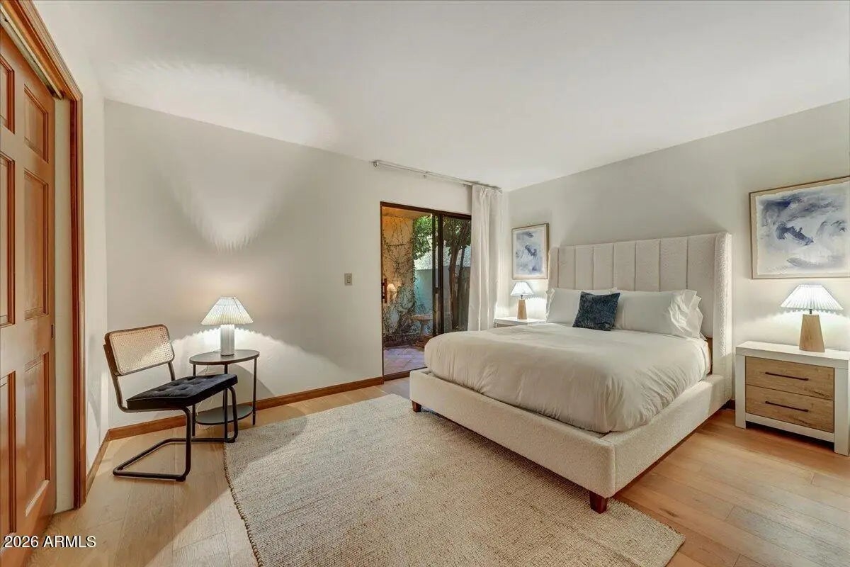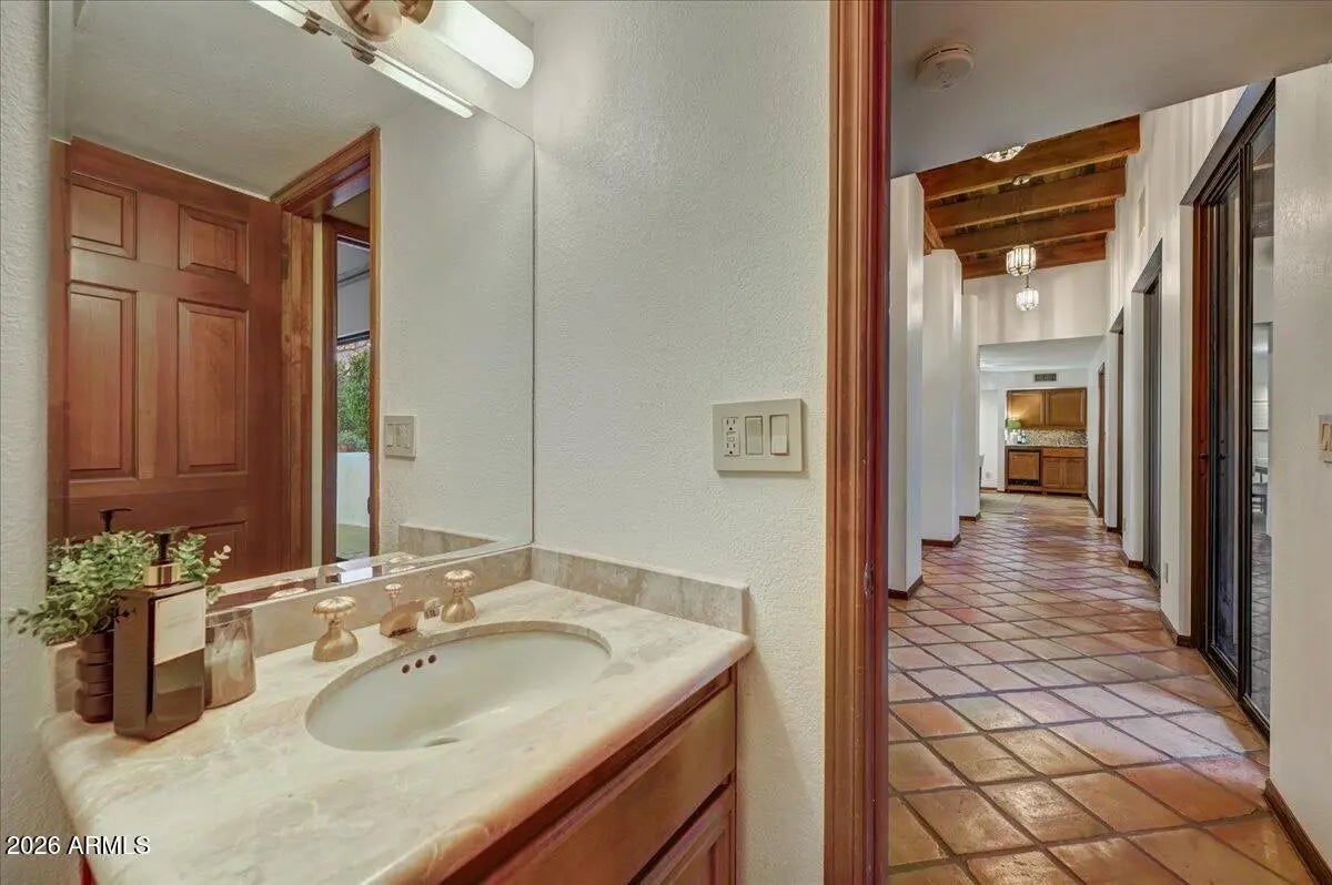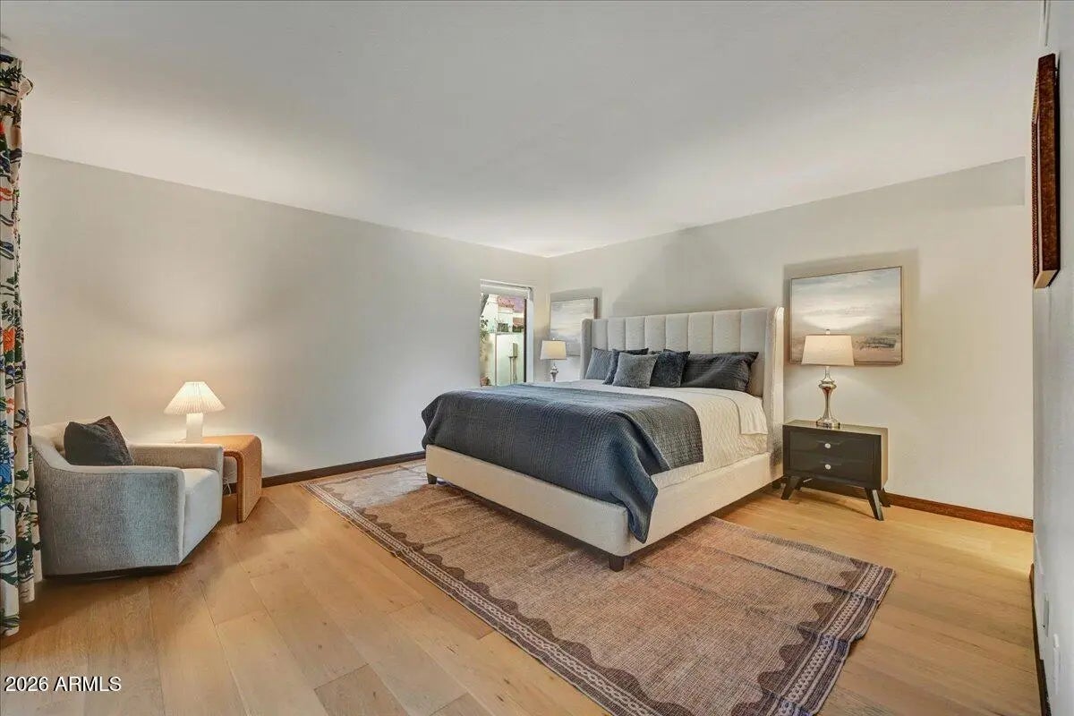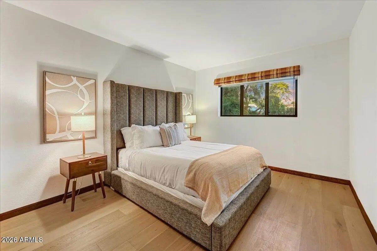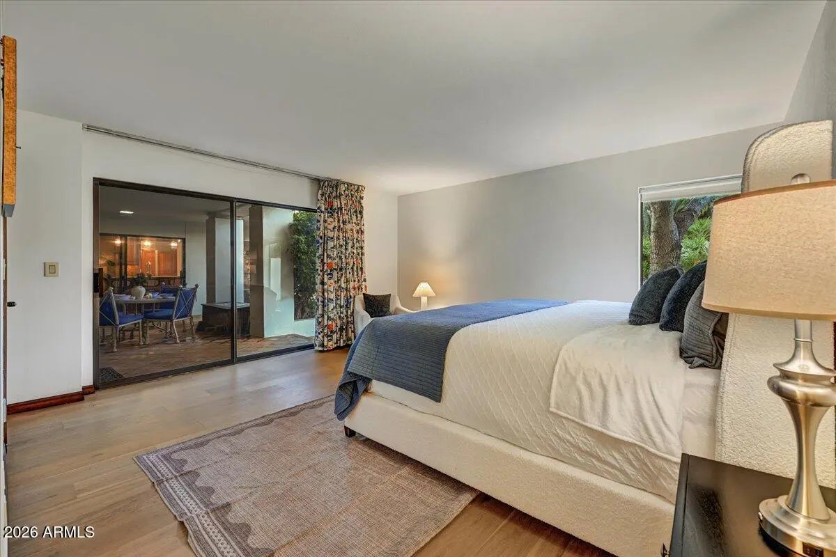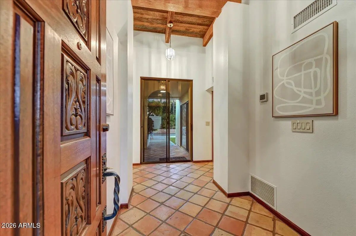 Rare Opportunity in Guard-Gated Biltmore Greens! Welcome to one of the most lush and private homes in the community. Surrounded by mature, manicured landscaping in both the front and backyard, this single-level 4-bedroom, 2.5-bath residence offers a true garden retreat in the heart of the Biltmore area. The backyard is exceptionally private and designed for entertaining--featuring a sparkling swimming pool with a new electric retractable pool cover, built-in BBQ, and vibrant tropical foliage, flowering trees, and an established rose garden that will delight any green thumb. This is outdoor living at its finest. Inside, you'll find a warm and inviting layout with just the right touch of exposed wood-beamed ceiling to add architectural character. The kitchen has been thoughtfully updated over the years, blending functionality with timeless style. Updated wood flooring flows throughout all bedrooms and the living room, adding warmth and continuity to the home. The spacious primary suite features an extra-large walk-in closet, offering abundant storage rarely found in this community. Located within the highly regarded Madison School District, this home combines privacy, greenery, and educational excellence. Proudly maintained by the original owners, this is a rare opportunity to personalize a beautifully cared-for home in one of Phoenix's most desirable guard-gated communities. Homes with this level of privacy, landscaping, and potential rarely become available in Biltmore Greens.