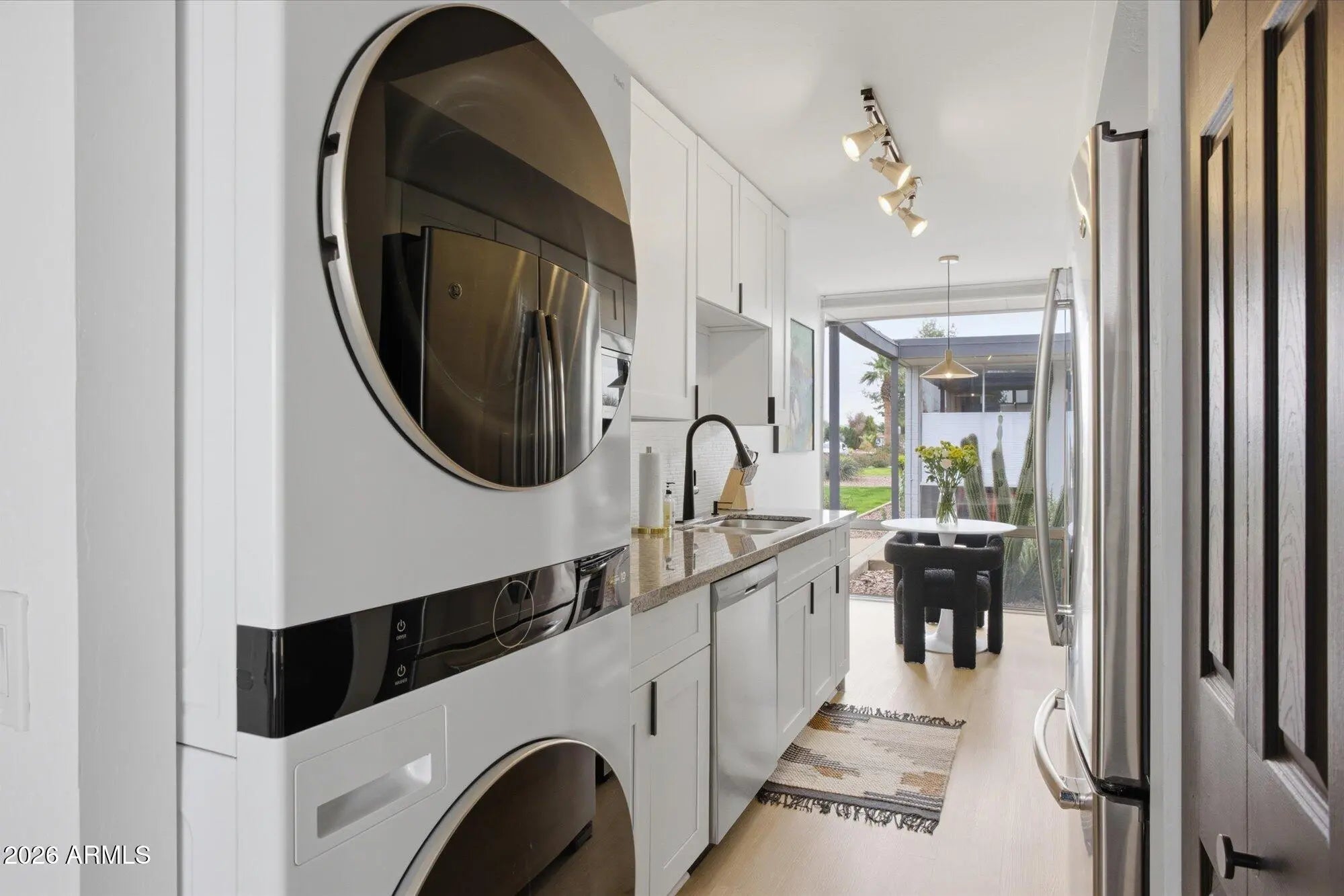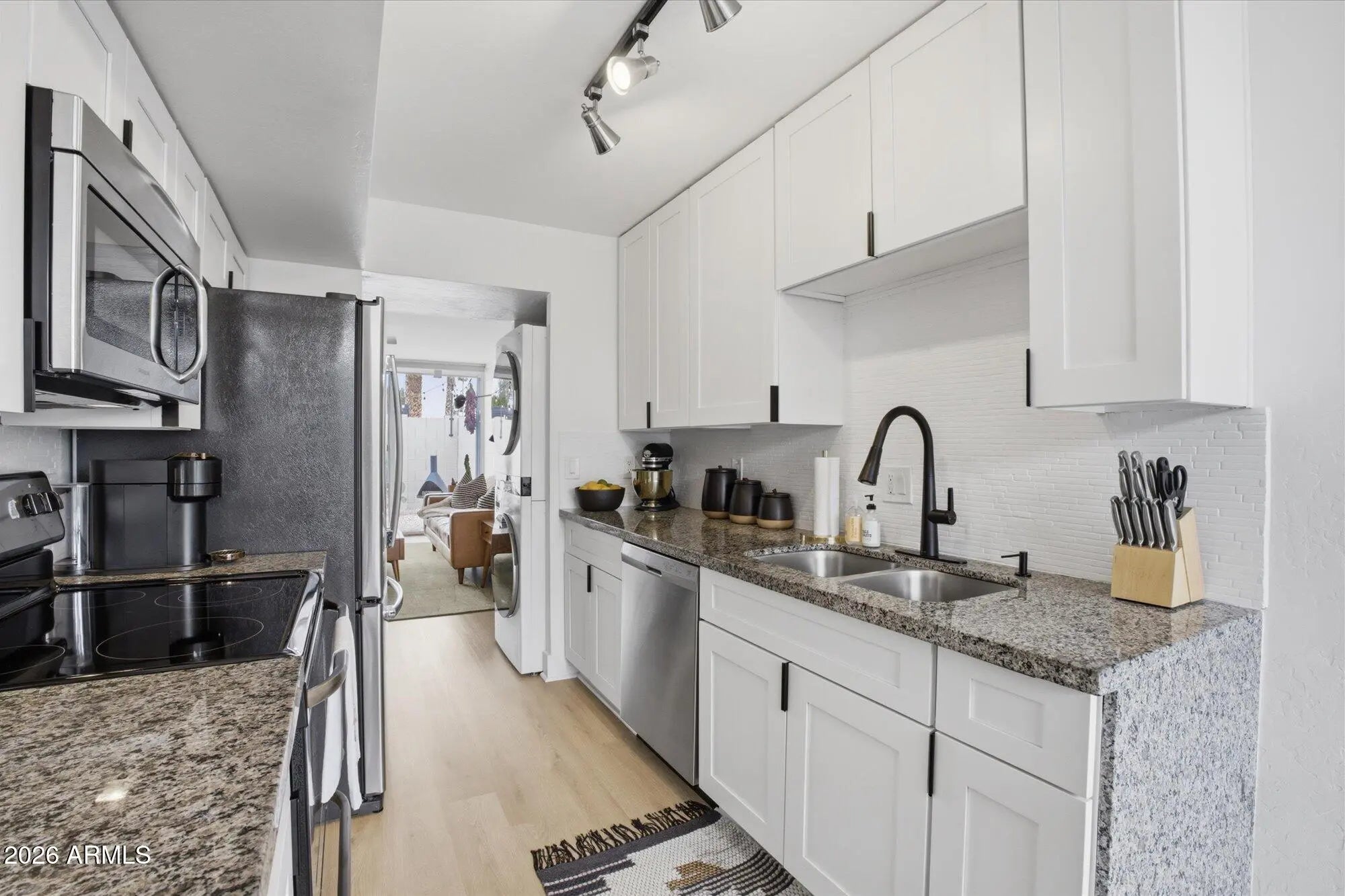 Stacked Washer/Dryer, Dryer, Washer, Built-in Microwave, Dishwasher, Disposal, Electric Range, Electric Oven