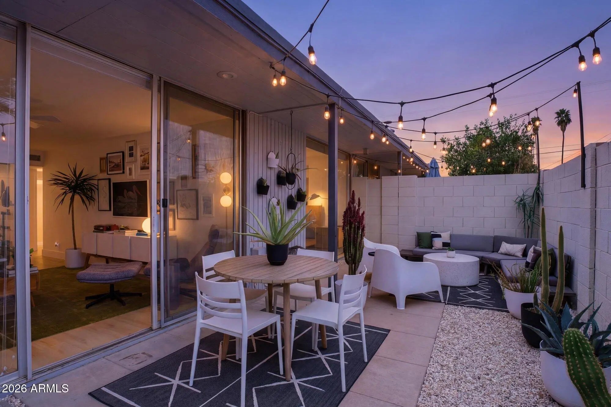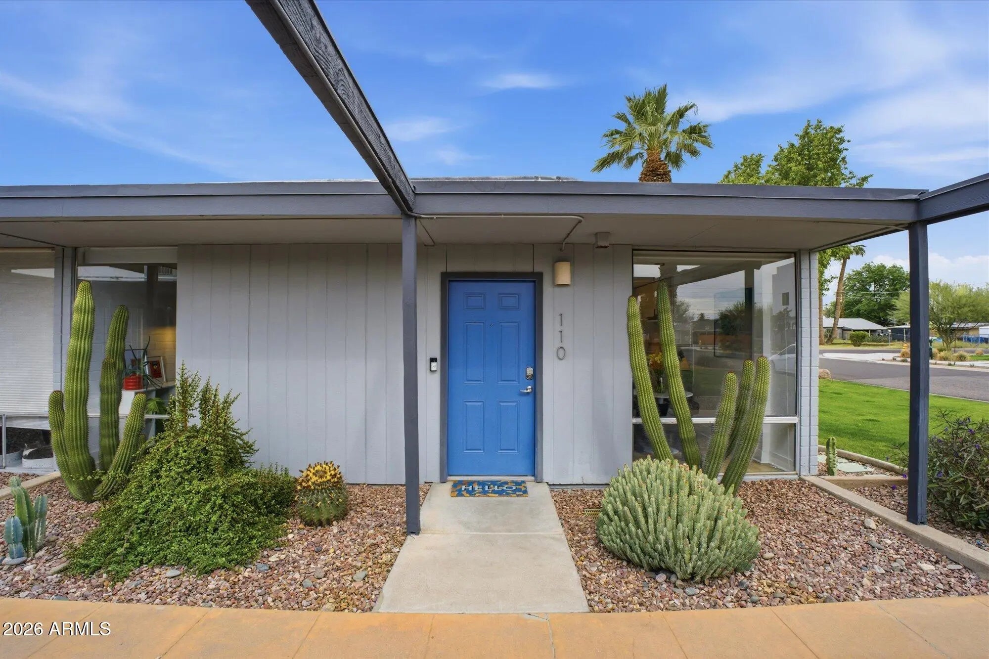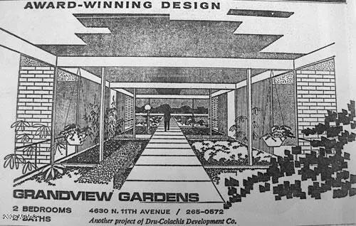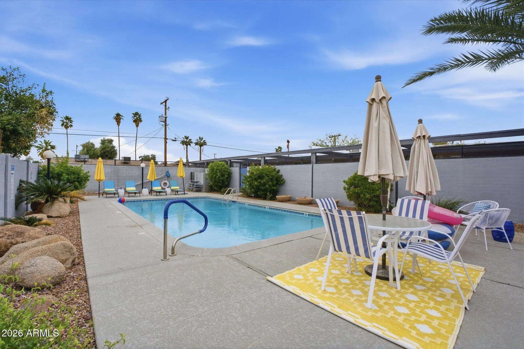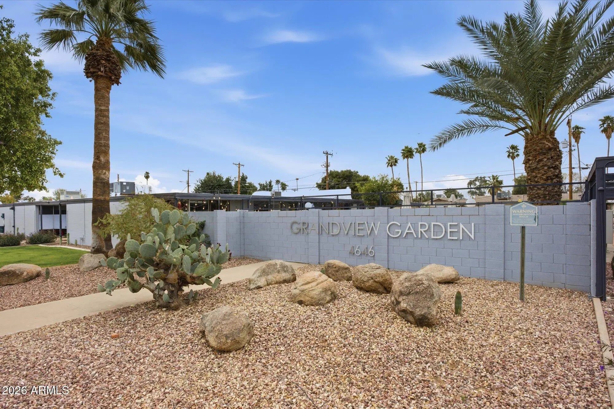 A favorite saying among mid-century enthusiasts is ''What would Beadle do?'' - and the answer is simple: purchase this residence and embrace the ultimate desert modern lifestyle! Located in the vibrant and highly desirable Grandview Neighborhood -affectionately known as the ''Neighborhood with Heart'' - this rare end-unit condo sits in the heart of the Melrose District, just moments from the iconic Melrose Mile along 7th Avenue with its beloved coffee shops, dining, bars, and vintage boutiques. Enjoy close proximity to Tawa Park at the end of the complex, along with easy access to light rail, major freeways, Downtown Phoenix (approximately 12 minutes), and Sky Harbor Airport. Designed by legendary mid-century modern architect Alfred Beadle, this prime end unit is a true Beadle Box - a rare opportunity to own an authentic piece of Phoenix architectural history within a small, boutique garden-style community of just 27 residences. With only one shared wall, no neighbors above or below, and solid block construction, the home lives more like a single-family residence: private, quiet, and filled with natural light. The unit backs to the community pool and lush grass area, offering added privacy and serene views. Inside, iconic mid-century details shine with slump block walls, clean lines, and expansive floor-to-ceiling glass doors and windows that create a bright, airy atmosphere. Fully updated and completely move-in ready, the home features new LVP flooring throughout, fresh interior paint, custom top-down/bottom-up window shades, new lighting, fans, fixtures, and an Ecobee smart thermostat. The updated kitchen blends style and function with stainless steel appliances (including a new dishwasher), waterfall-edge granite countertops, and seamless indoor/outdoor flow. Large sliding glass doors open to a private covered patio, perfect for enjoying Arizona's beautiful weather year-round. The spacious primary bedroom offers direct patio access as well, custom closet organization, and a tranquil retreat-like feel. A second generously sized bedroom includes a large closet, and both bathrooms have been refreshed with new vanities, fixtures, and toilets. Additional upgrades include a new water heater (2024), new LG smart WashTower (2024) conveniently located in-unit, and HVAC updated (2018). The Grandview Gardens community features a sparkling pool with refreshed patio furnishings (2025). Included with the unit is one reserved covered carport parking space, additional guest permit parking, ample street parking, and a dedicated storage unit. Beyond the home itself, Grandview is known for its strong sense of connection, hosting community events throughout the year including Front Yard Fridays, holiday gatherings, and neighborhood socials, adding to the true community feel that makes this area so special. The HOA is extremely well managed and includes your water, sewer, trash, roof repair and replacement (brand-new roof in 2024), blanket insurance, pest control, and exterior landscaping and maintenance. Thoughtfully curated to honor its 1963 mid-century roots, this home is equal parts architectural statement and effortless lifestyle - ideal as a primary residence, lock-and-leave winter retreat, or stylish urban escape. WELCOME HOME TO GRANDVIEW!
