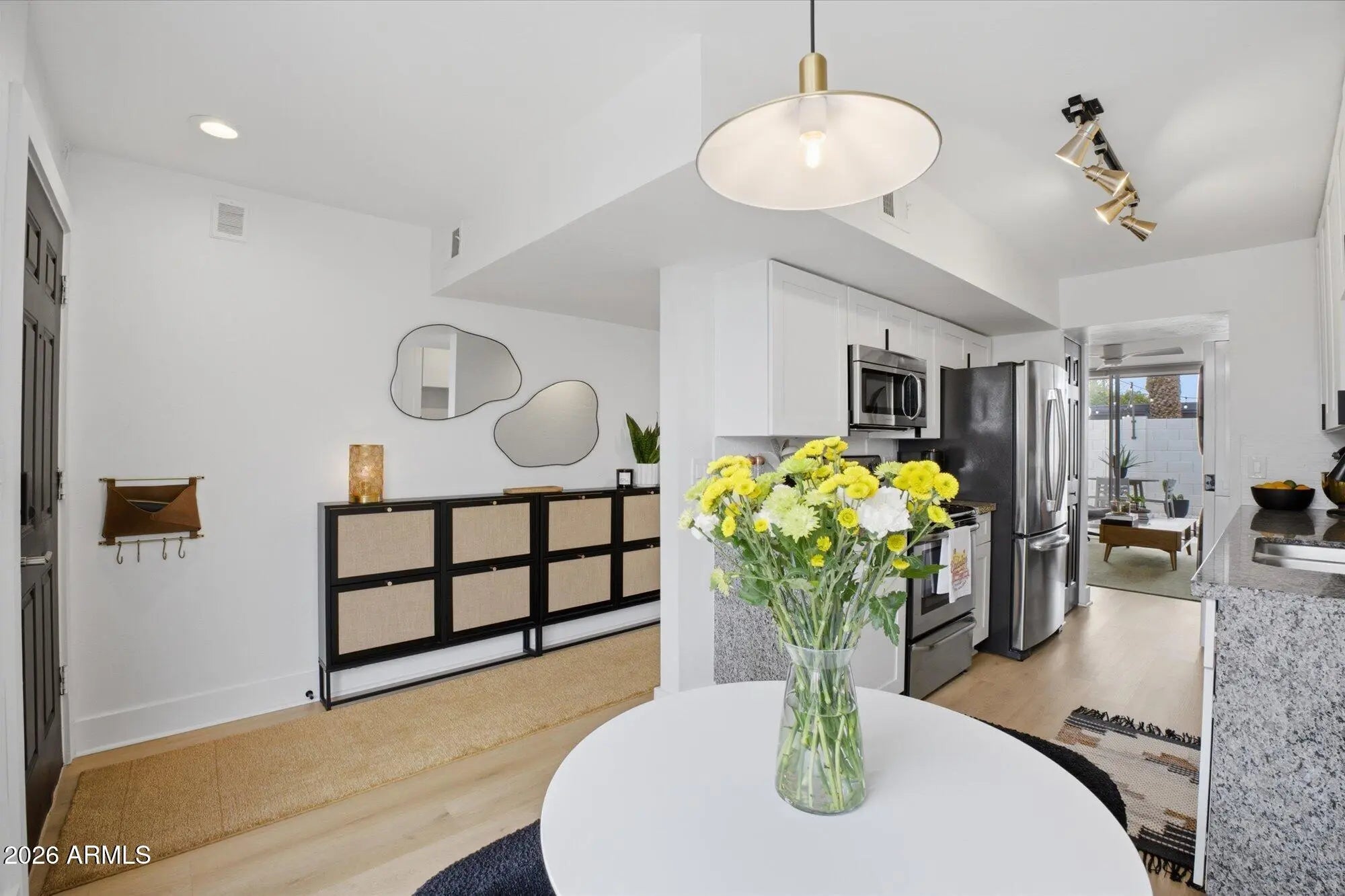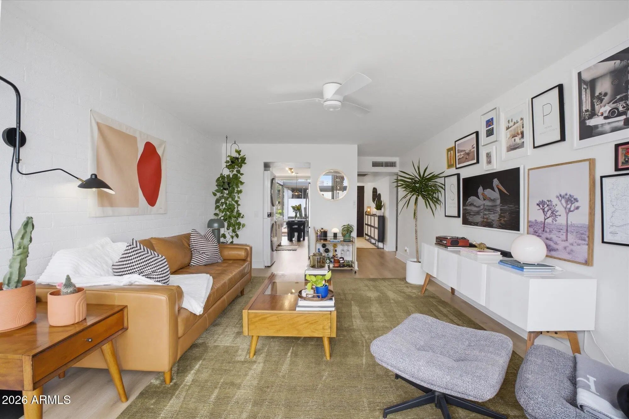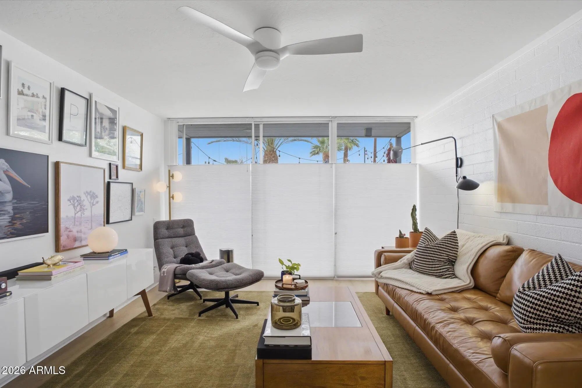A favorite saying among mid-century enthusiasts is ''What would Beadle do?'' - and the answer is simple: purchase this residence and embrace the ultimate desert modern lifestyle! Located in the vibrant and highly desirable Grandview Neighborhood -affectionately known as the ''Neighborhood with Heart'' - this rare end-unit condo sits in the heart of the Melrose District, just moments from the iconic Melrose Mile along 7th Avenue with its beloved coffee shops, dining, bars, and vintage boutiques. Enjoy close proximity to Tawa Park at the end of the complex, along with easy access to light rail, major freeways, Downtown Phoenix (approximately 12 minutes), and Sky Harbor Airport. Designed by legendary mid-century modern architect Alfred Beadle, this prime end unit is a true Beadle Box - a rare opportunity to own an authentic piece of Phoenix architectural history within a small, boutique garden-style community of just 27 residences. With only one shared wall, no neighbors above or below, and solid block construction, the home lives more like a single-family residence: private, quiet, and filled with natural light. The unit backs to the community pool and lush grass area, offering added privacy and serene views. Inside, iconic mid-century details shine with slump block walls, clean lines, and expansive floor-to-ceiling glass doors and windows that create a bright, airy atmosphere. Fully updated and completely move-in ready, the home features new LVP flooring throughout, fresh interior paint, custom top-down/bottom-up window shades, new lighting, fans, fixtures, and an Ecobee smart thermostat. The updated kitchen blends style and function with stainless steel appliances (including a new dishwasher), waterfall-edge granite countertops, and seamless indoor/outdoor flow. Large sliding glass doors open to a private covered patio, perfect for enjoying Arizona's beautiful weather year-round. The spacious primary bedroom offers direct patio access as well, custom closet organization, and a tranquil retreat-like feel. A second generously sized bedroom includes a large closet, and both bathrooms have been refreshed with new vanities, fixtures, and toilets. Additional upgrades include a new water heater (2024), new LG smart WashTower (2024) conveniently located in-unit, and HVAC updated (2018). The Grandview Gardens community features a sparkling pool with refreshed patio furnishings (2025). Included with the unit is one reserved covered carport parking space, additional guest permit parking, ample street parking, and a dedicated storage unit. Beyond the home itself, Grandview is known for its strong sense of connection, hosting community events throughout the year including Front Yard Fridays, holiday gatherings, and neighborhood socials, adding to the true community feel that makes this area so special. The HOA is extremely well managed and includes your water, sewer, trash, roof repair and replacement (brand-new roof in 2024), blanket insurance, pest control, and exterior landscaping and maintenance. Thoughtfully curated to honor its 1963 mid-century roots, this home is equal parts architectural statement and effortless lifestyle - ideal as a primary residence, lock-and-leave winter retreat, or stylish urban escape. WELCOME HOME TO GRANDVIEW!
