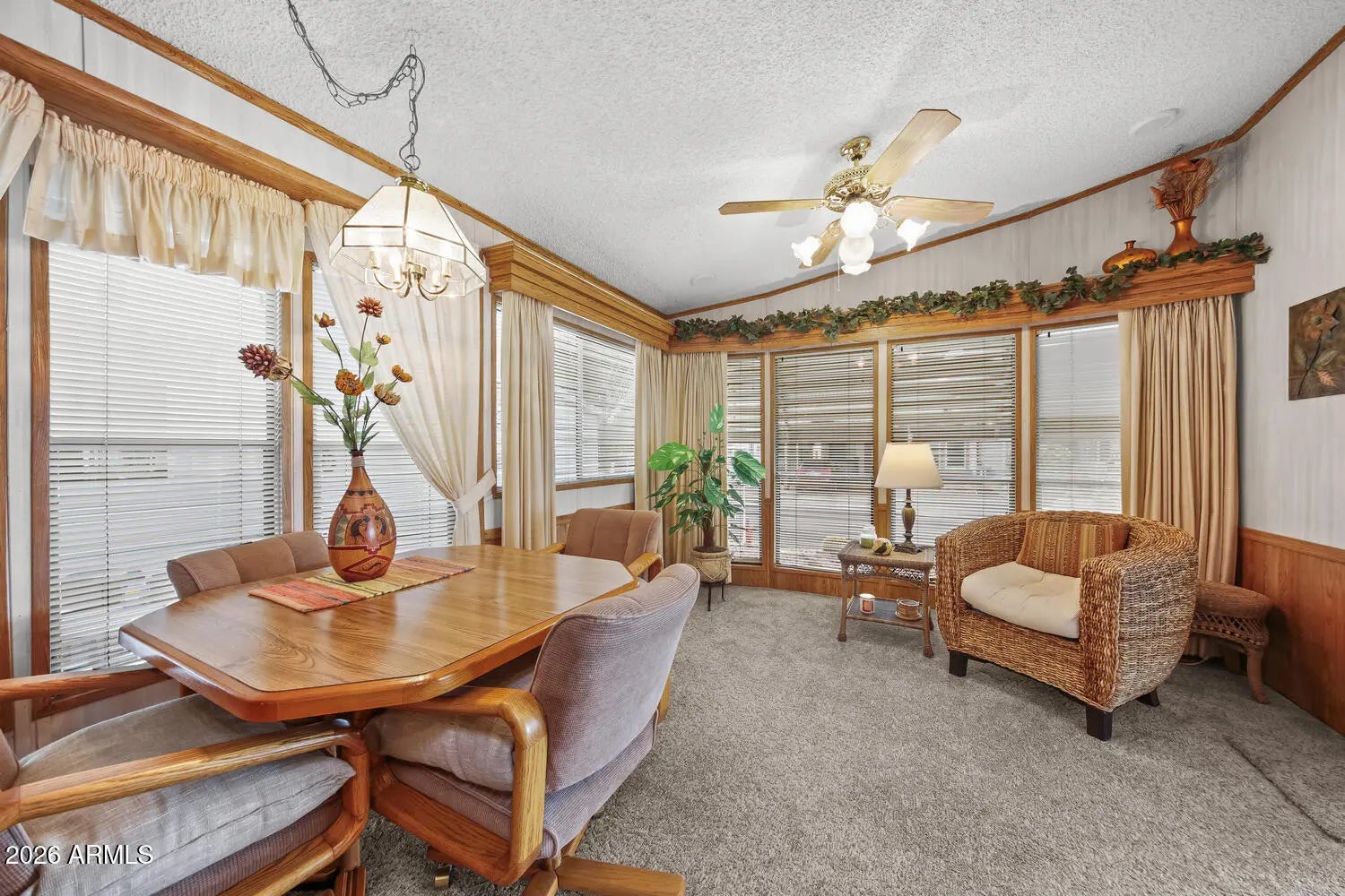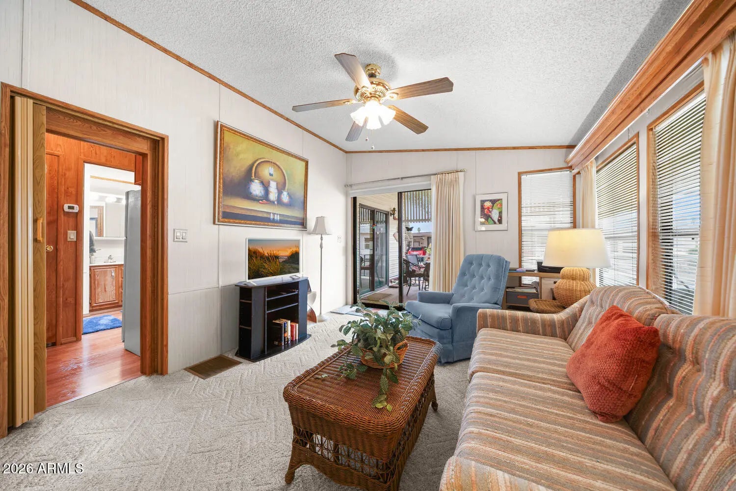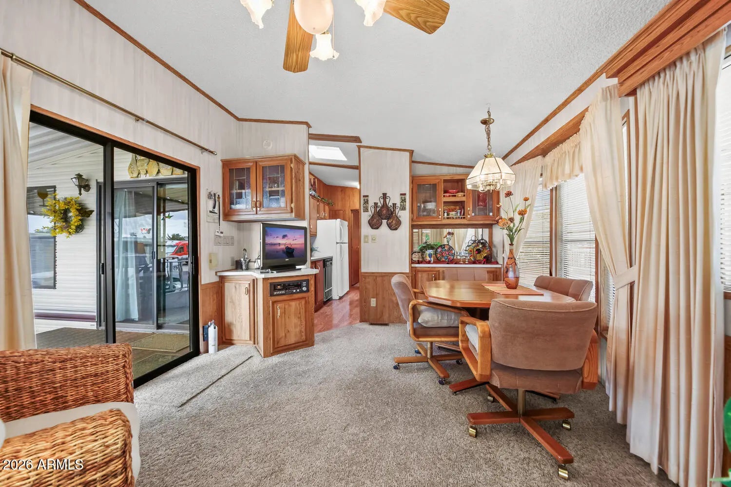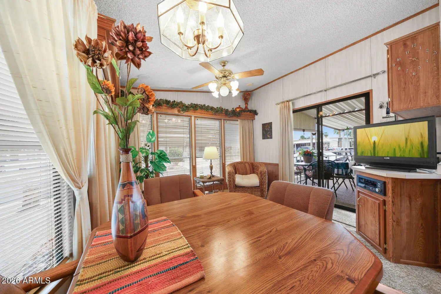 CHECK OUT THIS PRICE! This home has great features for under $200K! Lot #007 is a park model with an AZ room that is being sold furnished, even with the golf cart! Move-in ready! Happy Trails RV Resort is a 55+ active adult, guarded community featuring an on-site restaurant, post office, low HOA dues, & NO LAND LEASE! Experience Arizona living and a vibrant social scene. This is more than a home - it's a lifestyle! Whether you're looking for a winter getaway, a full-time residence, or a high-demand rental opportunity, this property offers incredible value in a premier location. Happy Trails is conveniently located in Surprise, Arizona, near shopping, dining, golf, sports, and medical services.