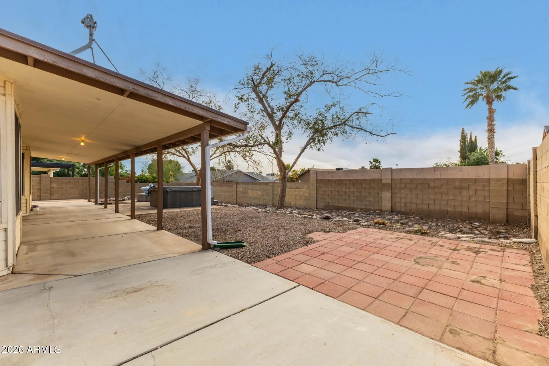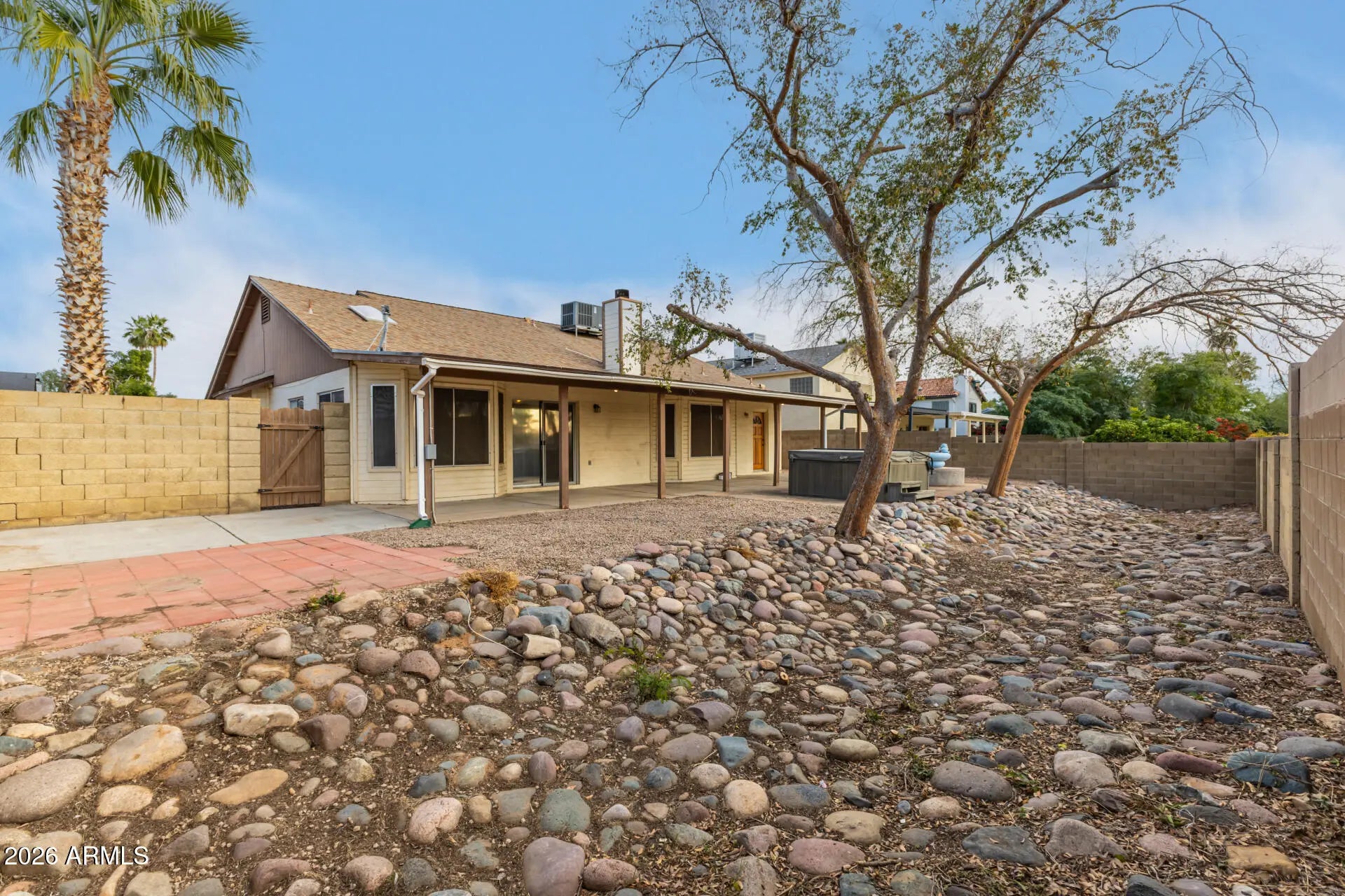 Huge Opportunity for BIG lot w/generous 4 Bedrooms, 2 full baths 2G + NO HOA + 2 10 Ft Side yard Gates! Functional design w/separate Living Room, Dining Room & Family Room w/fireplace. Kitchen w/island breakfast bar opens to Family Rm & breakfast nook that overlooks extended Covered Patio, HUGE Yard PLUS relaxing Hot TUB. Soaring vaults in main living areas including formal Living OR flex room. Master suite w/separate patio access w/relaxing private bath/shower, dual vanities & a walk-in closet. Inside laundry room leads to 2-car garage w/tons of cabinets & insulated garage door. TWO RV Gates on side. HVAC replaced in 2019. Great location close to parks, schools, shopping, restaurants, the 202 & more.