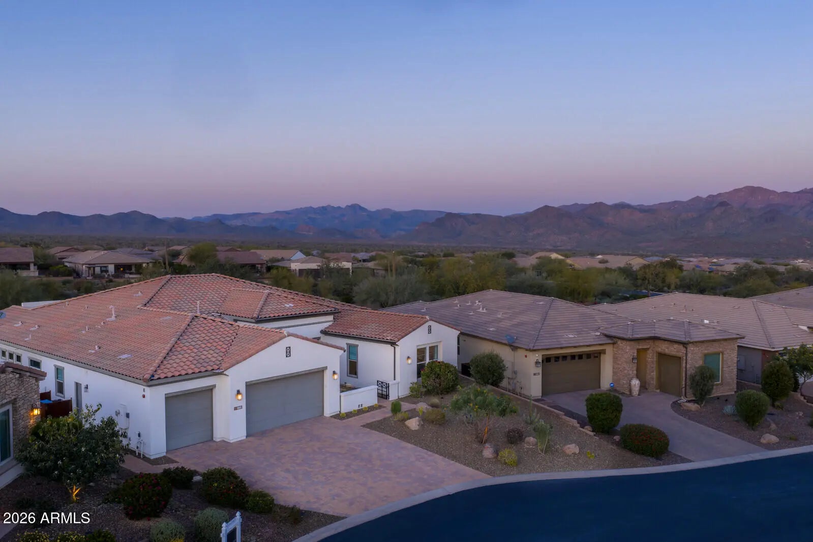 Wonderful mountain views highlight this premium wedge-shaped homesite featuring the highly sought-after Dorado floor plan — a rare three-bedroom, three-and-one-half-bath design with all en-suite bedrooms, plus a private den. This exceptional residence showcases numerous luxury upgrades, including a gourmet kitchen appointed with Wolf and Thermador appliances, an expansive granite island, walk-in pantry, and a dedicated butler's preparation bar. Additional features include an extended three-car garage, extended covered patio, rich wood flooring, central vacuum system, and built-in wine storage beneath soaring 12-foot ceilings. The thoughtfully designed owner's suite offers dual walk-in closets and breathtaking mountain views. Complemented by wireless automated blinds in the owner's suite, living room, and dining room. A separate den/office and Smart Space provide added flexibility and functionality. Designed for refined indoor-outdoor living, the backyard is an entertainer's dream showcasing panoramic mountain vistas, a resort-style pool and spa, built-in grilling station, gas firepit, and five distinct seating areas for optimal gathering and relaxation. Modern conveniences include a Tesla charging station and Smart App integration for the pool and spa, thermostat, appliances, and lighting controls. Located within the lush Sonoran Desert of Arizona, Verde River Golf & Social Club the centerpiece of the Trilogy® at Verde River community borders the Tonto National Forest and offers sweeping views of the Mazatzal Mountains and the iconic Four Peaks. Residents enjoy access to a Tom Lehman-designed championship golf course, tennis and pickleball courts, a poolside bar and grill, and a luxurious resort-style pool with panoramic views extending to Weaver's Needle. The Outfitter serves as the gateway to outdoor adventure. The exceptional 30,000+ square-foot clubhouse features thoughtfully designed indoor and covered patio spaces where members and guests enjoy a wide range of amenities, including fine and casual dining venues such as Needle Rock Kitchen & Tap and Eddy's Poolside Diner, the proprietary Afturburn fitness concept, Alvea Spa, an events center, Test Kitchen, Artist Loft, and much more. Be Sure to Watch the Video in Photos Tab