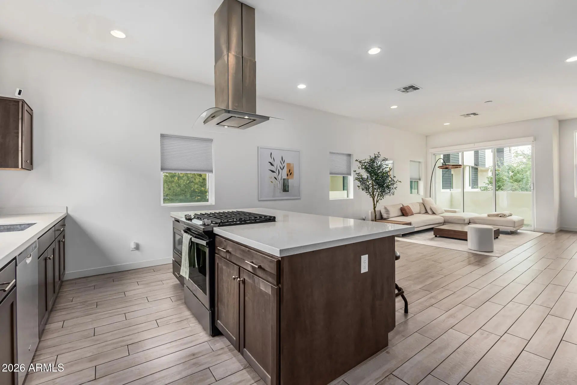 Look NO further! Modern comfort meets convenience in this beautifully maintained 3-bedroom townhome with a 2-car garage. Discover a large open floor plan filled with tons of natural light, perfect for entertaining and everyday living. Charming details include wood-look tile flooring, dual pane windows, and recessed lighting that illuminates every corner. Well-appointed kitchen offers stainless steel appliances, abundant cabinetry, a pantry, quartz counters, and a center island with a breakfast bar. Serene main retreat boasts plush carpet, a walk-in closet, and an ensuite with a floor-to-ceiling tiled shower. Don't miss the bonus room, ideal for work or play. Cozy balcony invites you to unwind. Residents will also enjoy access to fantastic Community amenities. Act now before it's gone!