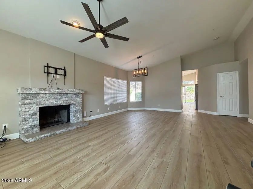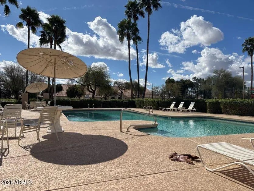 Located in the quiet Sweetwater Ranch neighborhood, this beautifully updated 3-bedroom, 2-bathroom home offers 1,610 square feet of modern living space. Remodeled in 2021 this home features, white cabinetry, granite counters and stainless steel appliances. Fresh neutral paint throughout and a living area anchored by a cozy fireplace. The backyard has been updated with a wonderful turf grass area. This community features front yard maintenance, tennis courts, heated pool and spa. Conveniently situated near the Loop 101 freeway, grocery stores, and shopping centers.