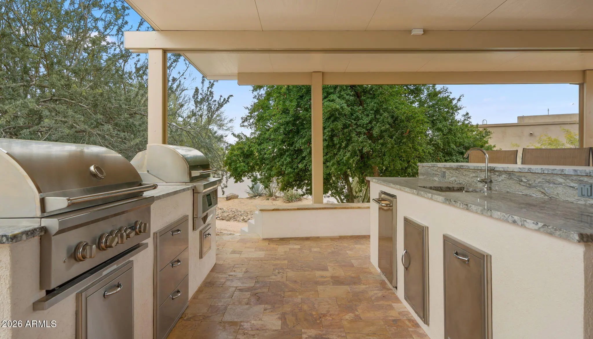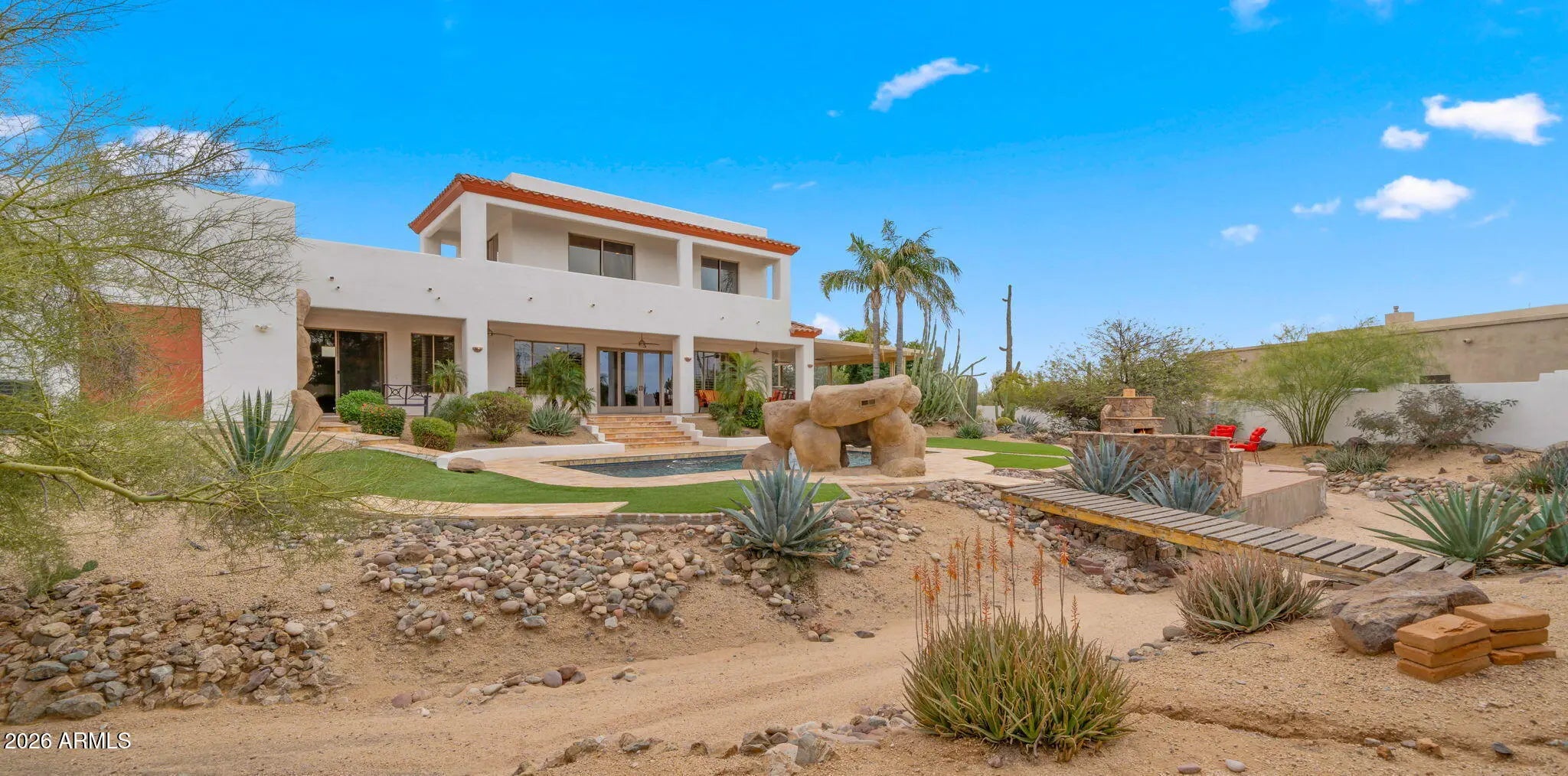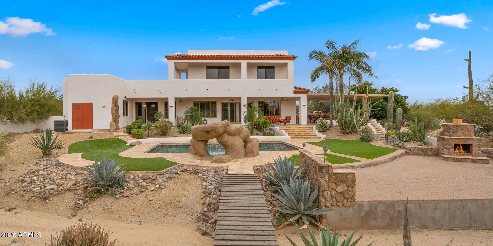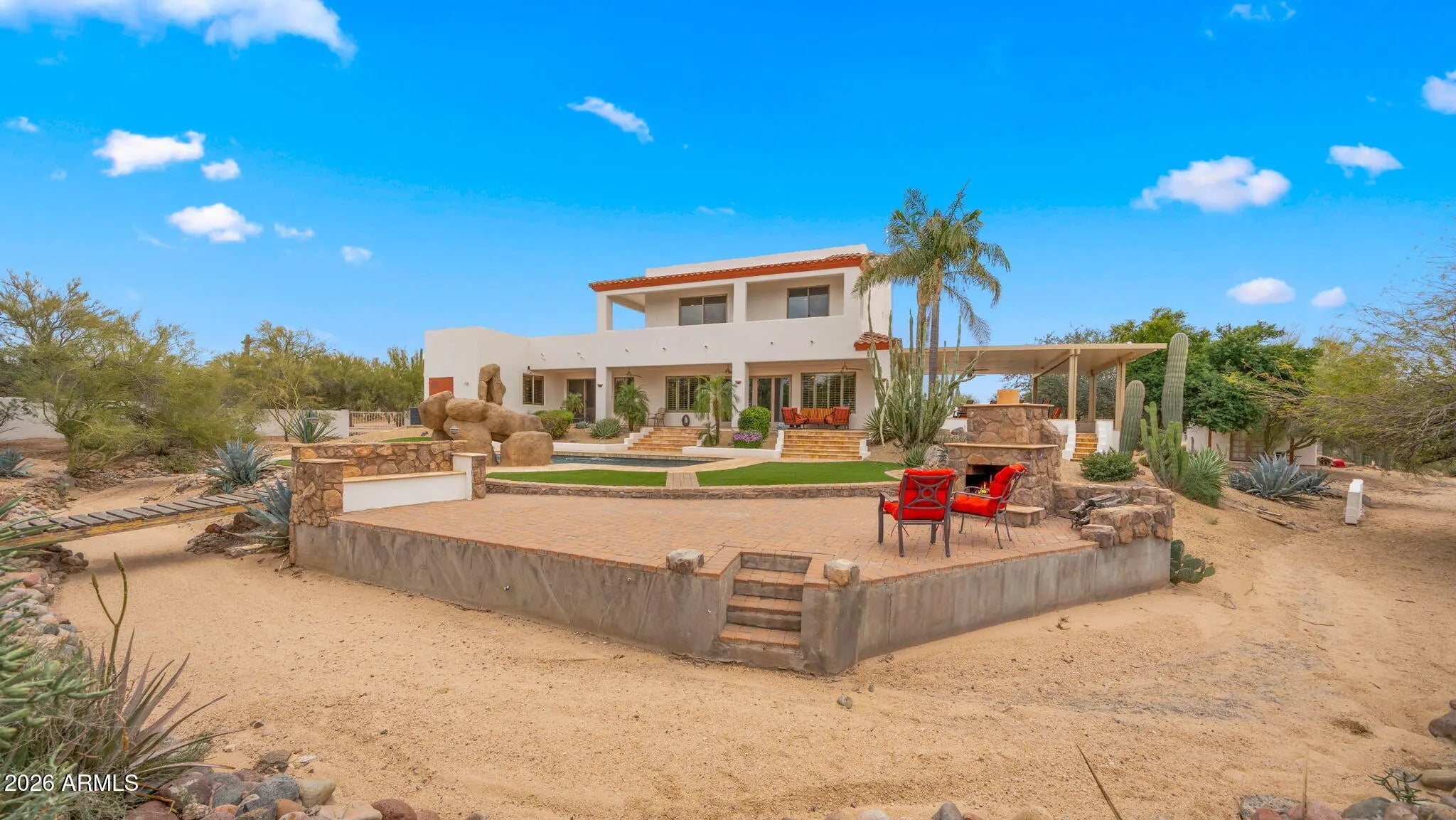 A rare desert retreat in Cave Creek offering luxury living, breathtaking views, and exceptional versatility. This 3,374 sq ft main residence is thoughtfully designed for both everyday comfort and unforgettable entertaining. Inside, you'll find a chef's kitchen appointed for culinary enthusiasts, seamlessly flowing into spacious living areas accented by cozy fireplaces and expansive windows that capture the surrounding desert vistas. Step outdoors to your private resort-style oasis. The outdoor chef's kitchen, extensive covered and open patio spaces, sparkling pool with outdoor shower, and inviting fireplaces create the ultimate Arizona lifestyle experience -- perfect for hosting gatherings or enjoying peaceful sunset evenings. Car enthusiasts and hobbyists will appreciate the attached 2-car garage, a detached 324 sq ft workshop, and abundant dedicated parking space for recreational vehicles, trailers, or other toys -- all without compromising the home's curb appeal. Adding to its appeal, the property offers potential as an income-producing rental or guest residence, providing flexibility for multi-generational living or supplemental income. This exceptional property blends luxury, function, and iconic desert beauty -- a true standout in Cave Creek.