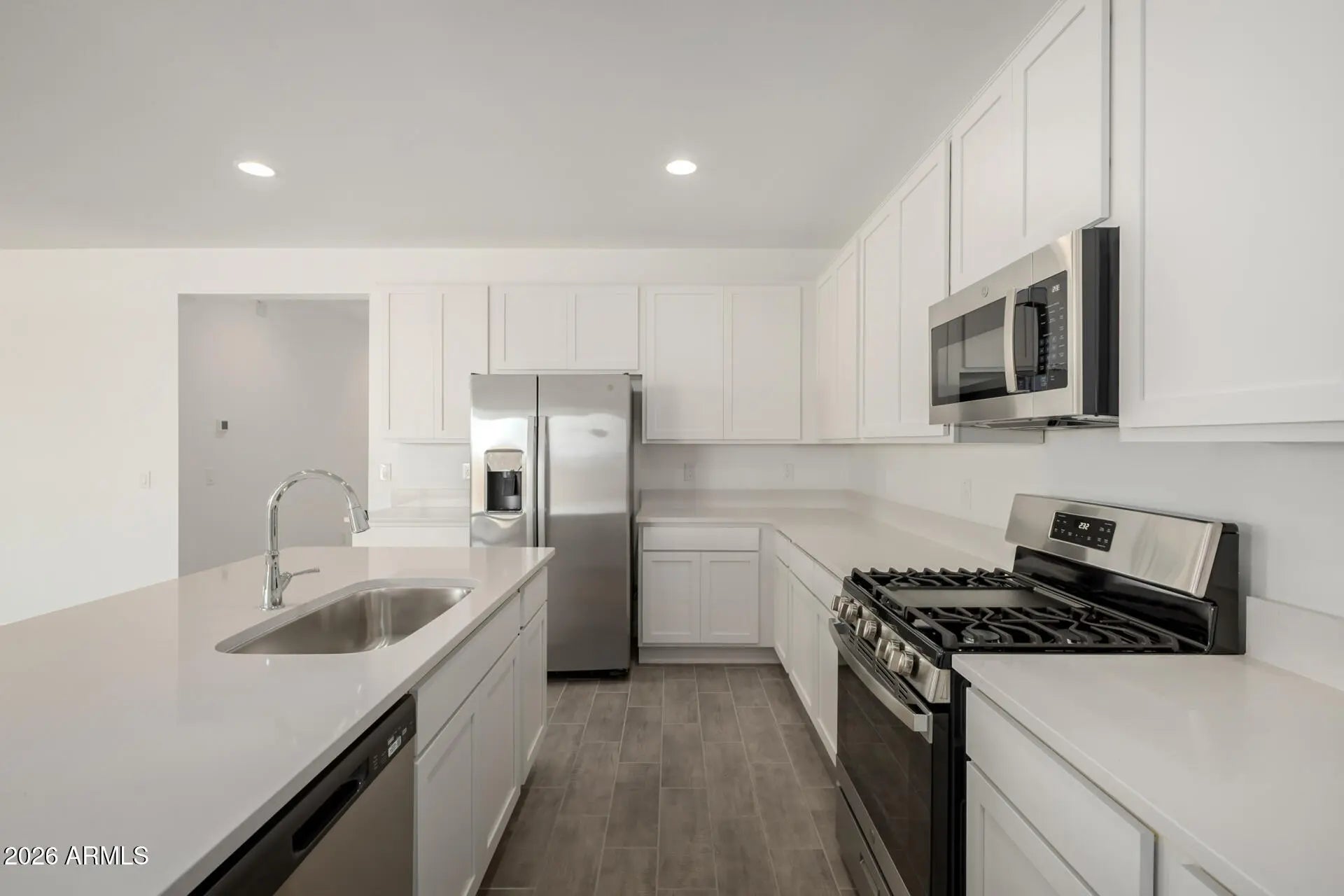 Explore this impressive Slate home, ready for quick move-in on a homesite boasting driveway pavers and front yard landscaping. Included features: an inviting covered entry; a spacious great room; an open dining area; a beautiful kitchen offering 42'' cabinets, stainless-steel appliances, quartz countertops, a walk-in pantry and a center island; a convenient laundry; an elegant primary suite showcasing a large walk-in closet and a private bath with cultured marble countertops; a covered patio and a 3-car garage. This could be your dream home!