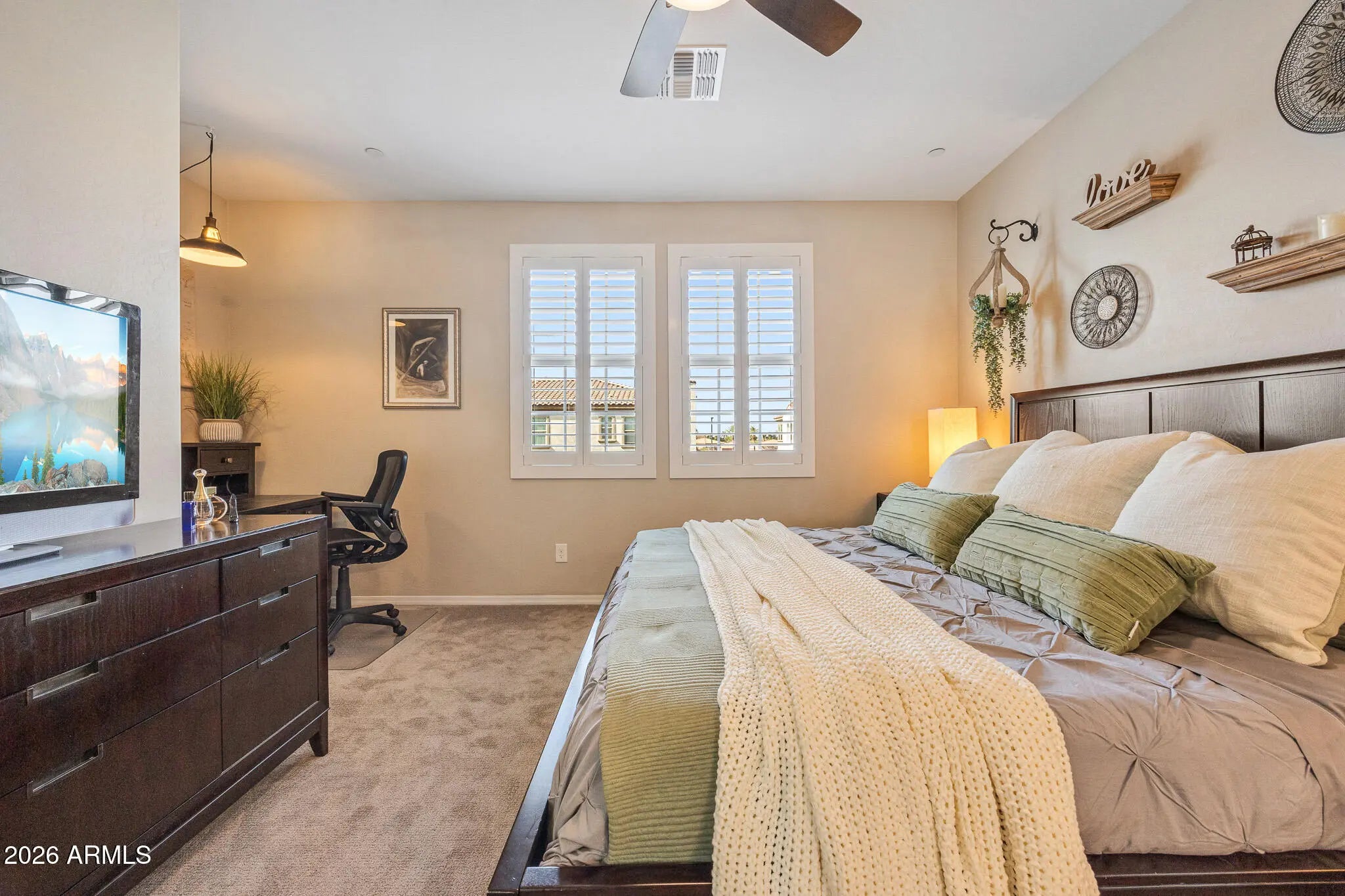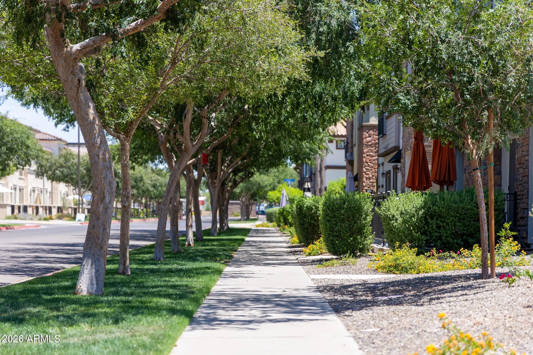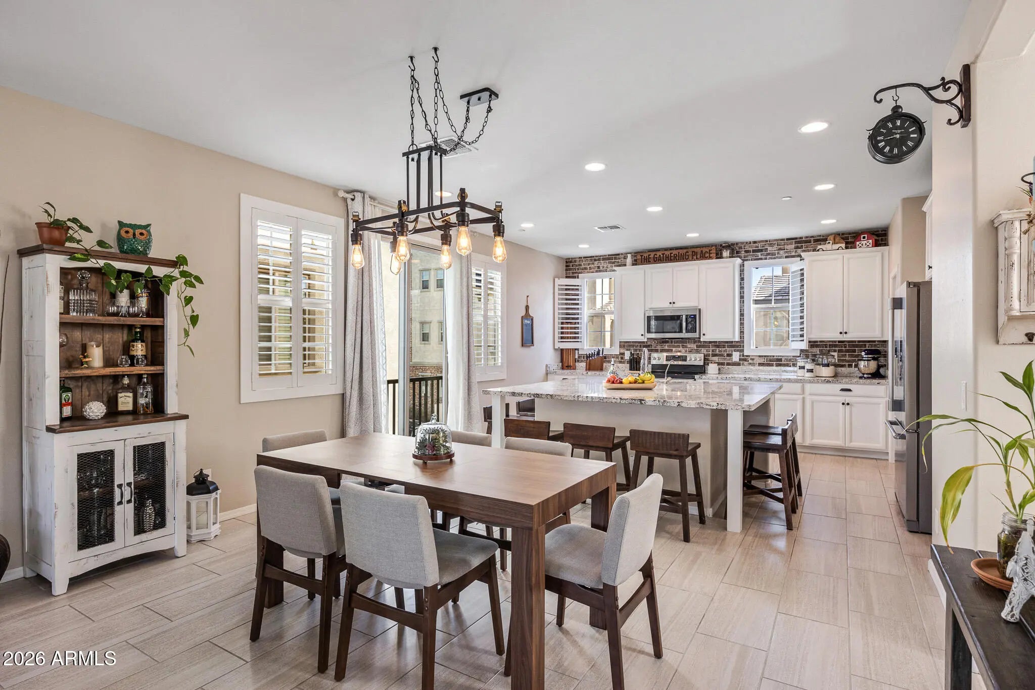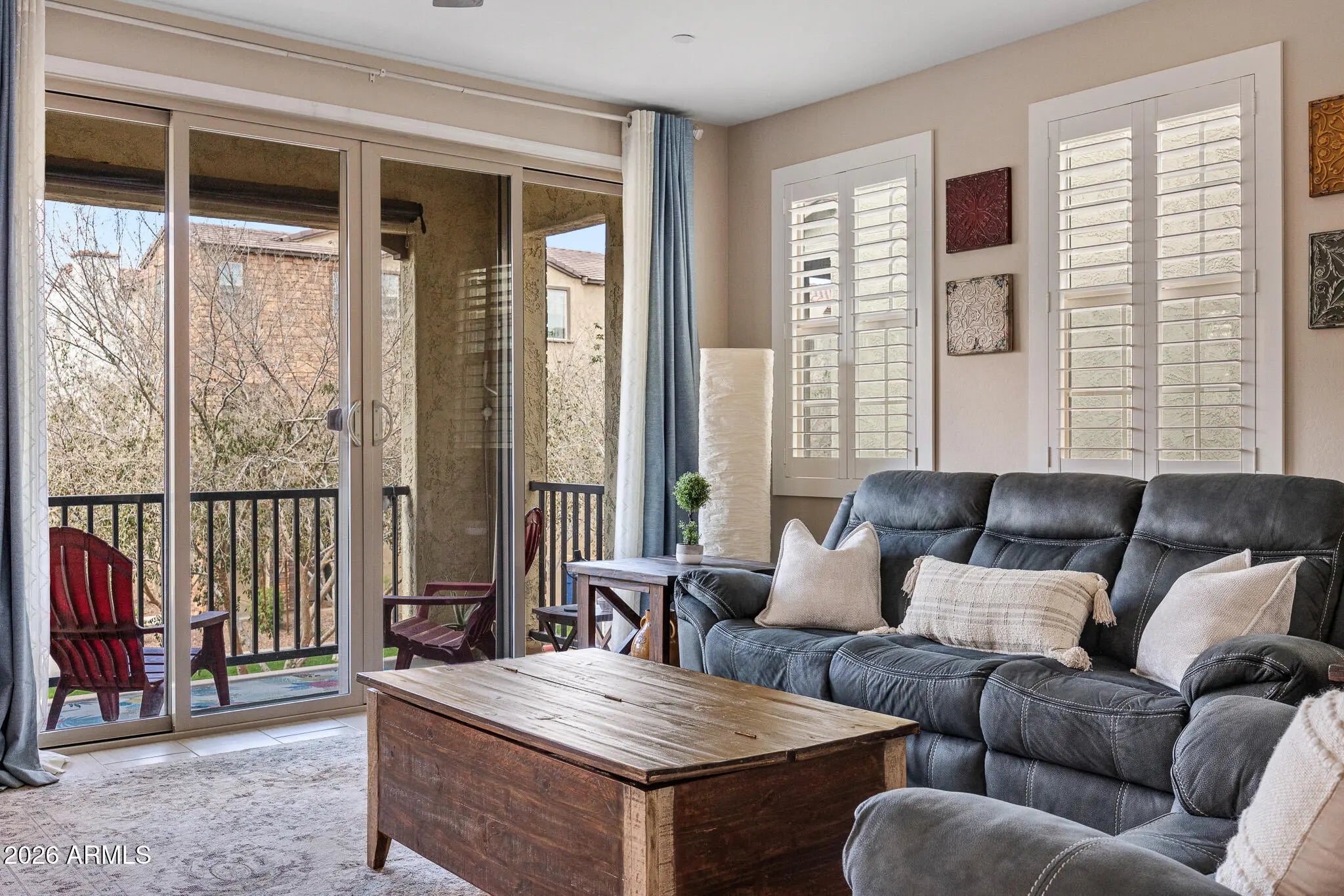 A rare opportunity to own one of the largest and most private residences in the gated community of The Lakes at Annecy. Fully detached with no common walls and positioned along a tree-lined street rather than directly facing neighboring homes, this 3-bedroom + den home offers the ease of condominium living with the feel and presence of a single-family residence. Built in 2020 and spanning 2,166 sq ft, this is the largest floorplan offered in the community - and it lives beautifully. The main living spaces are intentionally elevated on the second level, allowing natural light to pour in from multiple directions. Surrounded by windows and framed by custom plantation shutters throughout, the space feels bright, open, and quietly refined. The kitchen is truly the heart of the home and one of the most expansive layouts in Annecy. A massive island with seating for up to eight becomes a natural gathering place, complemented by stone countertops, stainless steel appliances, and a generous walk-in pantry. It's a layout that feels equally suited for hosting friends or simply enjoying an unhurried evening at home. A Juliet balcony off the kitchen and a front balcony with an upgraded double slider extend the living space outdoors and enhance the sense of openness. On the first level, a flexible den currently serves as a media room, creating separation between entertaining spaces and private retreats. The oversized two-car garage includes additional overhead storage, and an owned water softening system adds everyday comfort. A covered front patio offers a welcoming entry and another quiet place to unwind. The third level is thoughtfully designed with a split primary suite for added privacy. The retreat includes a recessed alcove ideal for a workspace or reading nook, a spacious walk-in closet, and an en-suite bath with dual vanities and a walk-in shower. Ceramic tile spans the first and second floors and all wet areas, with upgraded low-pile carpet in the bedrooms and staircases. Nine-foot ceilings throughout further enhance the sense of scale. The Lakes at Annecy is one of Gilbert's most distinctive gated communities, known for its resort-inspired design, scenic lakes with fountains, tree-lined pedestrian paths, and three pools and spas. Residents enjoy a walkable, low-maintenance lifestyle in a setting that feels intentionally designed and thoughtfully maintained. Located just moments from SanTan Village and with convenient access to the Loop 202 SanTan Freeway, the community offers both privacy and connectivity. With its detached design, premium interior positioning, and larger floorplan, this residence represents one of the more unique offerings within Annecy - combining privacy, scale, and light in one of Gilbert's most distinctive communities.