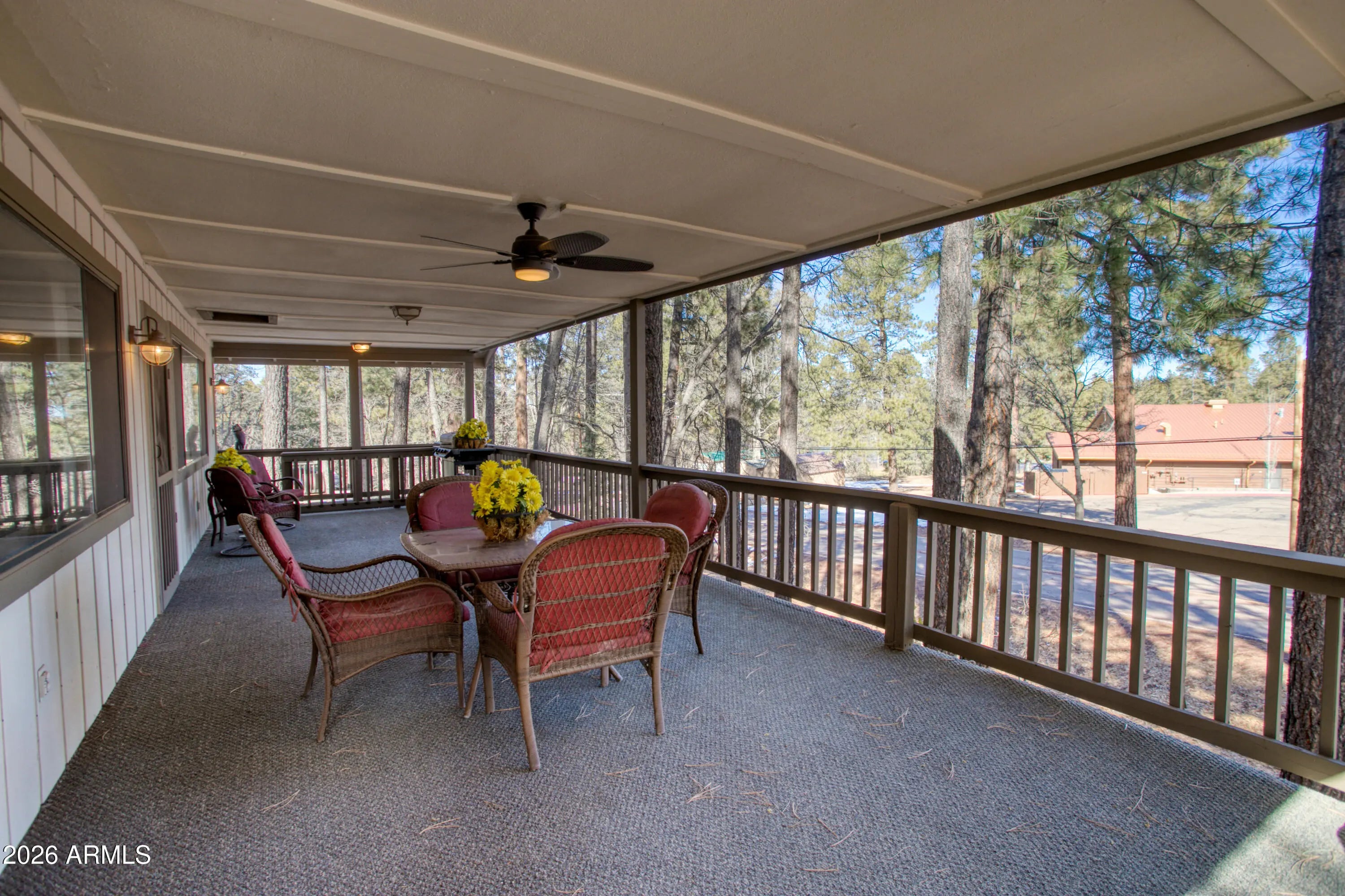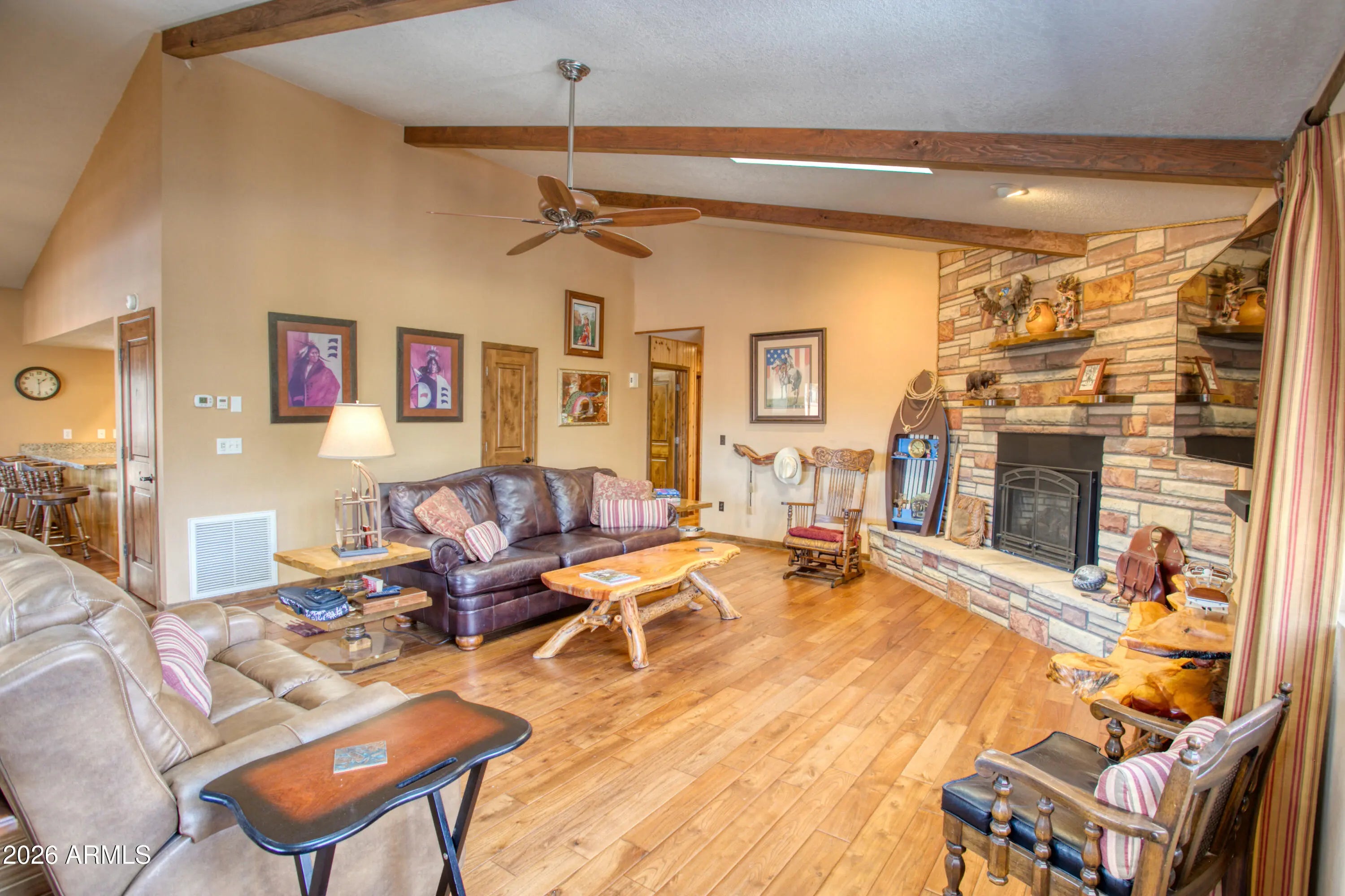 Country Club Living in the Cool White Mountains of Pinetop, AZ. Welcome to the good life in the White Mountains! Perfectly positioned across from the Pinetop Country Club, this beautifully designed 2-bedroom, 2-bath home offers 1,788 sq. ft. of comfortable mountain living,with no HOA fees. Surrounded by the Apache-Sitgreaves National Forest and near Mount Baldy, Arizona's 2nd-highest peak, this home blends scenic beauty with unbeatable convenience. Enjoy front row views of the clubhouse and easy access to not one, but two golf courses, all just steps from your front door. Inside, the thoughtfully designed floor plan flows effortlessly, featuring an inviting kitchen, an open great room, & stunning rock focal point, complemented by a cozy gas fireplace, perfect for cool mountain evenings.