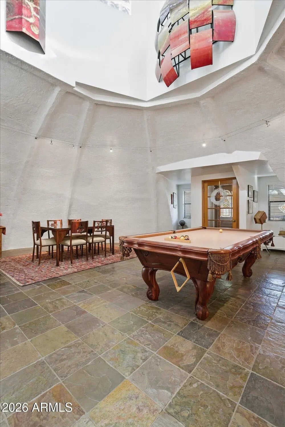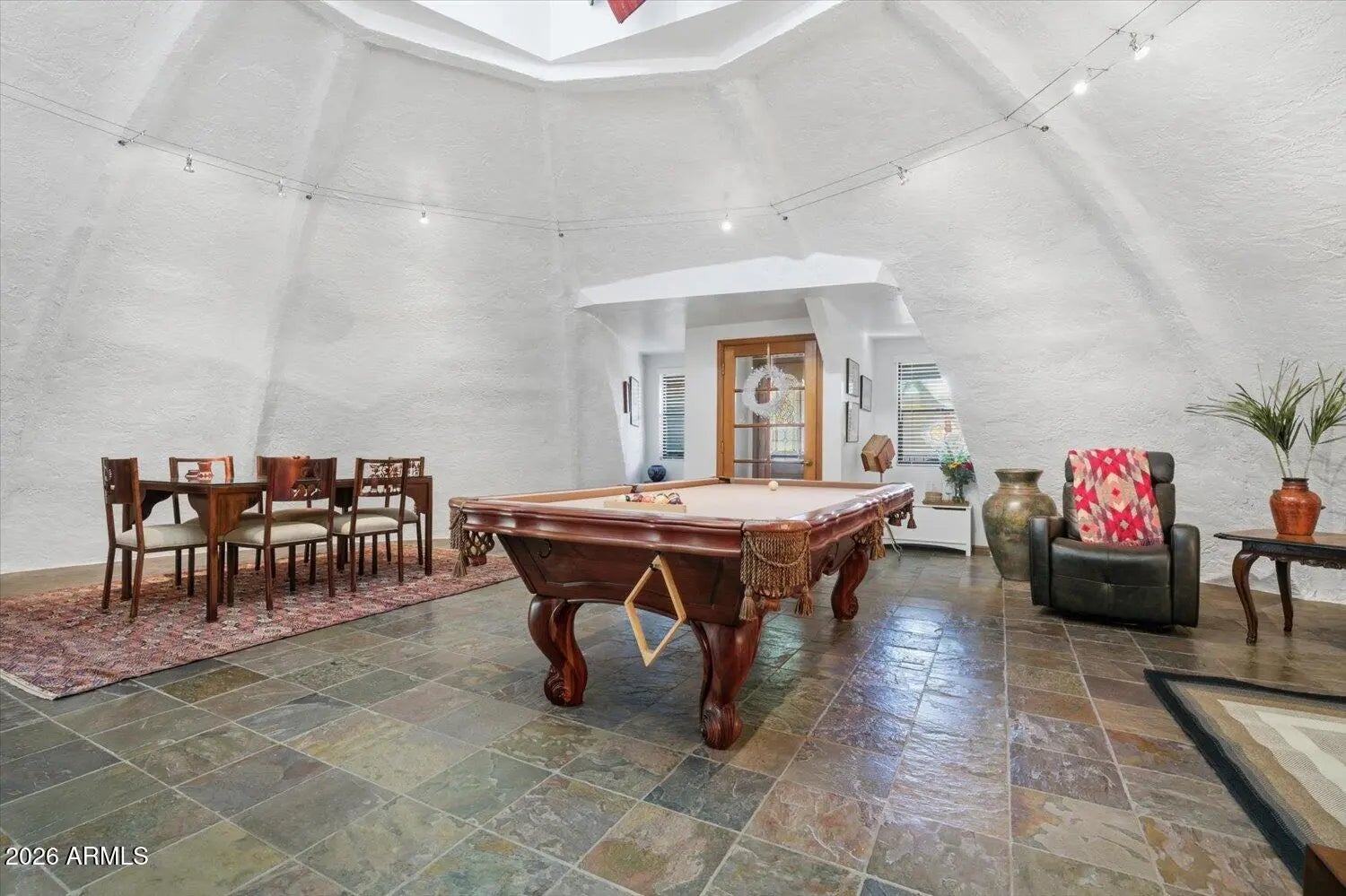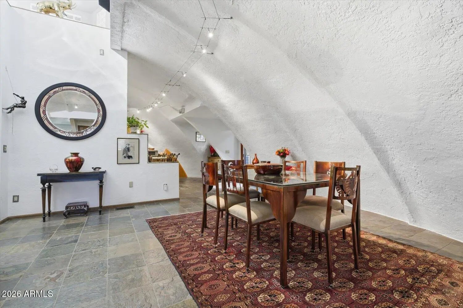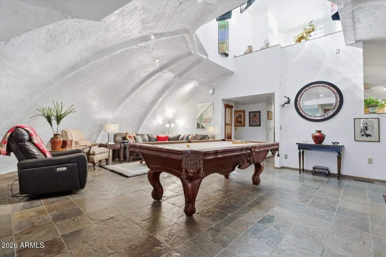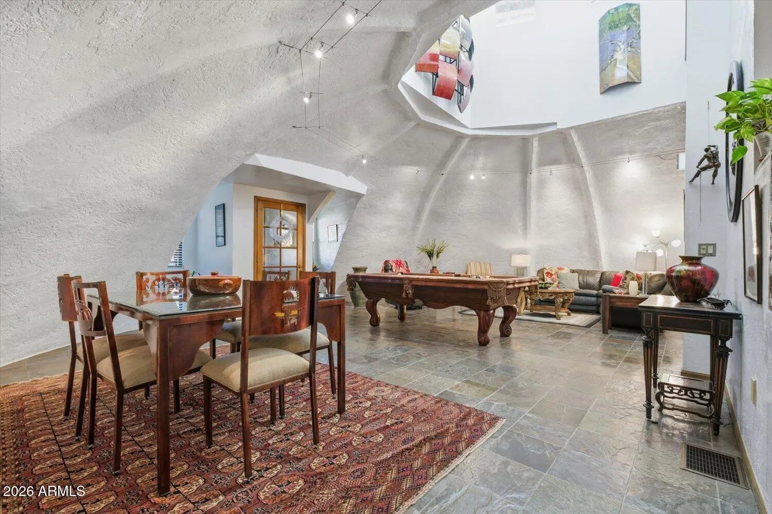 One of a kind exceptional, efficient, serene sanctuary, nestled in the scenic mountain-graced Ahwatukee Equestrian Estates! Restore your soul & be inspired as you feel the soothing energy inside of this earth-bermed beauty with elegantly curved concrete walls that create a tranquil haven. This energy efficient earth-insulated concrete dome structure keeps you safe, secure, comfortable & feeling calm while lowering your utility bills. Lovely natural light flows through the living spaces from the Cupola above.. Several updates in the home, including the kitchen & primary bath. Delightful indoor/outdoor living with inviting garden patios & very spacious backyard with mountain views. Community bridal path & horse arena. Live happily with the desirable Ahwatukee amenities & lifestyle! This earth sheltered dome construction home is uniquely enticing! Good energy here! Serene sanctuary! Valuable, higher cost earth sheltered design compared to conventional construction. Lower cost utility bills. Owner's description of dome construction 12054 S. Tonalea Dr Phoenix, AZ 85044 DOME OUTSIDE WALL CONSTRUCTION " Curved I-Beams are bolted to the foundation and cupola ring " Burlap/wire mesh is attached to the curved I-Beams " 3 miles of rebar are attached to the outside curved beams/ burlap wire mesh on 1 foot centers " Gunite/Shotcrete is applied to the outside of the dome. 4000 psi. 4-6 inches thick " After concrete cures, waterproofing is applied to all exposed surfaces Ahwatukee has amenities galore! Golf courses, parks, hiking and outdoor activities, good schools, plentiful mountain vistas, excellent dining options, entertainment, resort access, nearby Community Center and Rec. Center options , community activities, smaller town feel with everything that you need to live happily! Easy access to freeway connections.