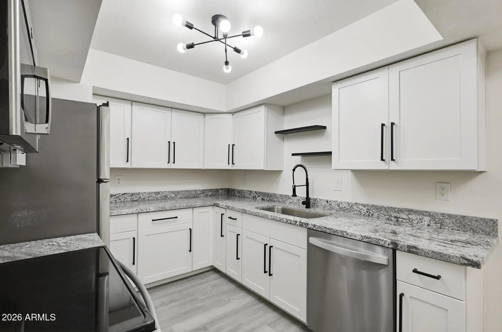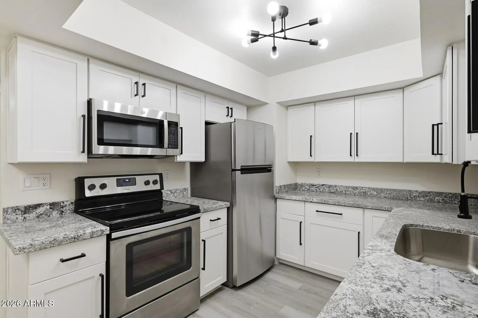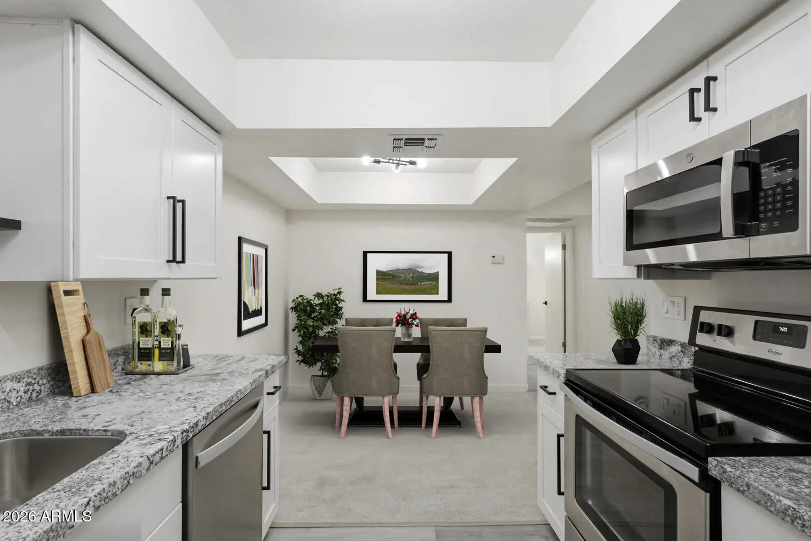 NEW! STUNNING REMODEL! Prime Location! Beautifully renovated condo featuring quality upgrades throughout! Enjoy new vinyl plank flooring and carpet, soft-close white shaker cabinets, elegant granite countertops, and a modern backsplash. The kitchen shines with stainless steel appliances including a new oven, dishwasher, microwave, refrigerator, new sink, faucet, and garbage disposal & new plumbings. Bathrooms have been refreshed with new vanity, mirrors, faucets, and two brand-new toilets. Additional upgrades include adjustable-color LED lighting, new ceiling fans with remotes, new outlets, and cable connectivity. Relax on the newly covered patio with extra storage. Located just steps from the highly anticipated Paradise Valley Mall redevelopment (completion expected late 2026), featuring high-end dining, retail, and entertainment including Flower Child, Costco, Whole Foods, Harkins Ciné Grill, and more right across the street! Community amenities include a swimming pool and community laundry. HOA covers water, sewer, trash, roof, cable and exterior maintenance. Modern updates, unbeatable location, and incredible value don't miss this opportunity!