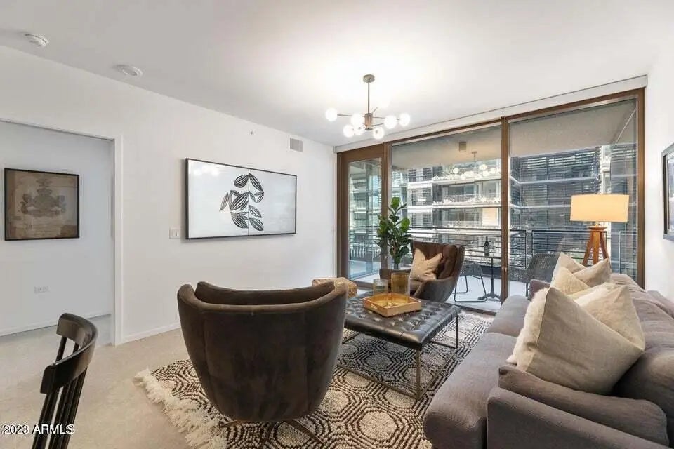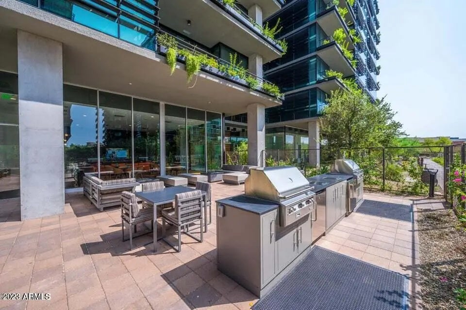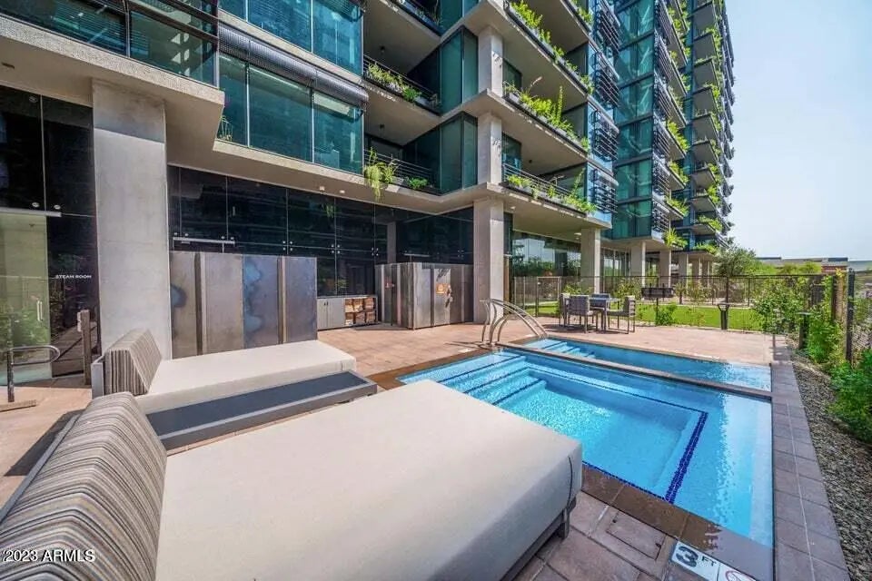 Live elevated at Optima Kierland in this furnished 8th-floor residence with floor-to-ceiling glass and sweeping Scottsdale city-light views. This modern split-bedroom condo features an open great-room layout, gourmet kitchen with European cabinetry, quartz counters, gas cooktop, and integrated appliances. Spacious primary suite offers spa-style bath, dual vanities, and walk-in closet. Enjoy a private terrace for indoor-outdoor living. Resort amenities include rooftop pool & spa, indoor lap pool, fitness center, basketball & pickleball courts, golf simulator, concierge, and secure parking. Walk to Kierland Commons & Scottsdale Quarter dining, shopping, and nightlife. Close to Mayo Clinic, TPC Scottsdale, and Loop 101. Luxury lock-and-leave living in North Scottsdale's premier high-rise comm
