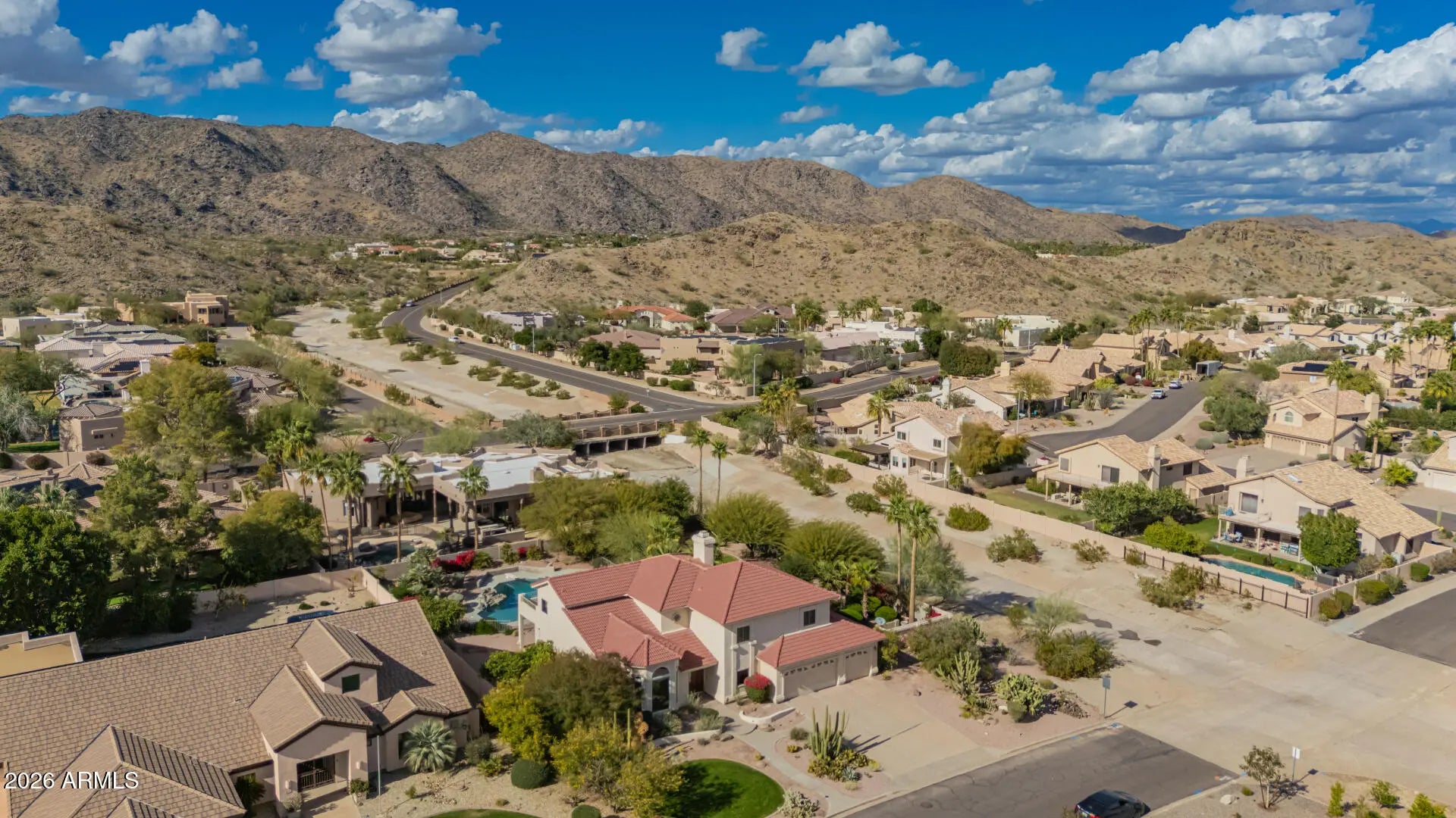 Rare opportunity in the exclusive Ahwatukee Custom Estates! This 3,657sq.ft. residence sits on a large lot with stunning mountain views and offers exceptional potential for luxury buyers seeking long-term value in a $1.5M+ neighborhood. Grand entry with a dramatic spiral staircase, open-concept kitchen and family room overlooking the backyard, and a resort-style pool with waterfall. Thoughtful layout includes 1 bedroom and full bath downstairs, plus an expansive split primary suite upstairs with 3 additional oversized bedrooms and full bath. 3-car garage, premium lot, and the opportunity to customize to your vision while maximizing return on investment in one of Ahwatukee's most desirable custom home communities.