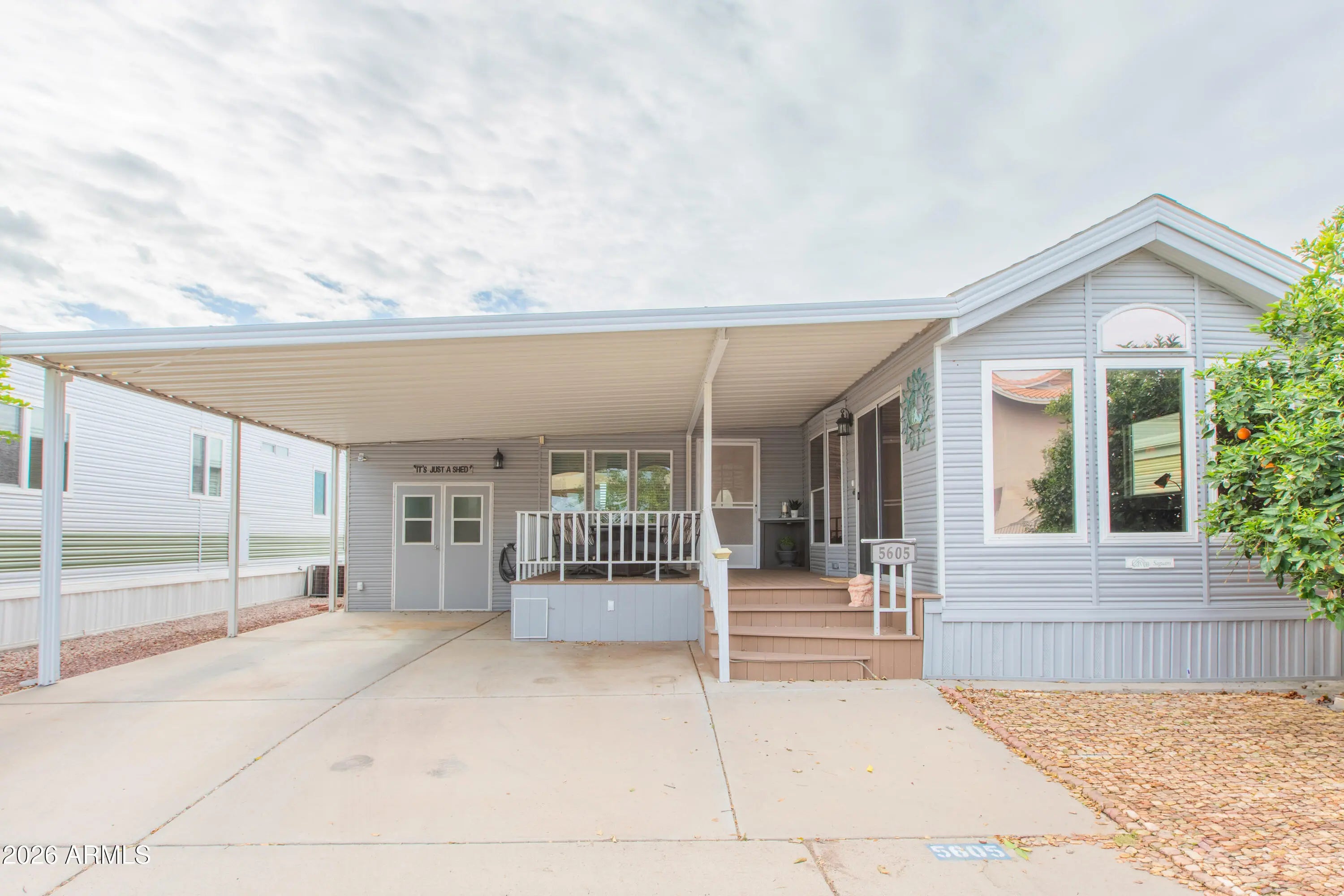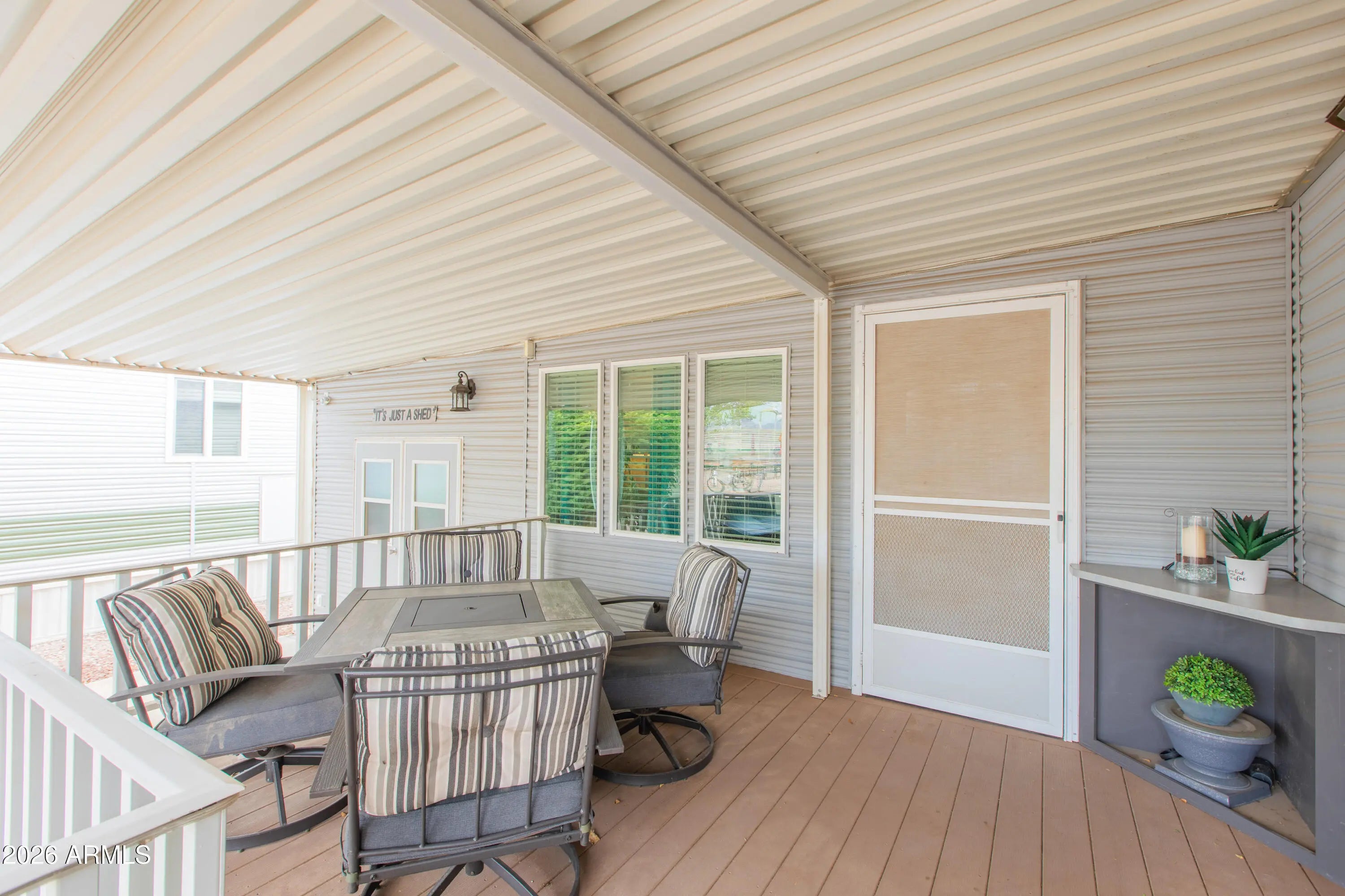 This beautifully updated and RARE 1 bedroom, 2 bath home is being sold fully furnished -- including furniture, TVs, décor, dishes, and linens. Truly turn-key... just bring your toothbrush and start enjoying the lifestyle! Inside you'll find a clean, well-maintained interior with abundant cabinetry and storage throughout. The functional layout offers comfort and convenience, perfect for full-time living or a seasonal retreat. Step outside to enjoy both a covered front deck and a private back deck -- ideal for morning coffee or relaxing evenings. The low-maintenance lot and additional storage shed make this property easy to lock-and-leave. Located directly across from the Ball Park and just steps from the North Rec Center featuring a pool and workout room, you're in the heart of it all Viewpoint Golf Resort offers 2 golf courses, tennis, pickleball, baseball field, multiple pools, and endless social activities. Resort living at its best!