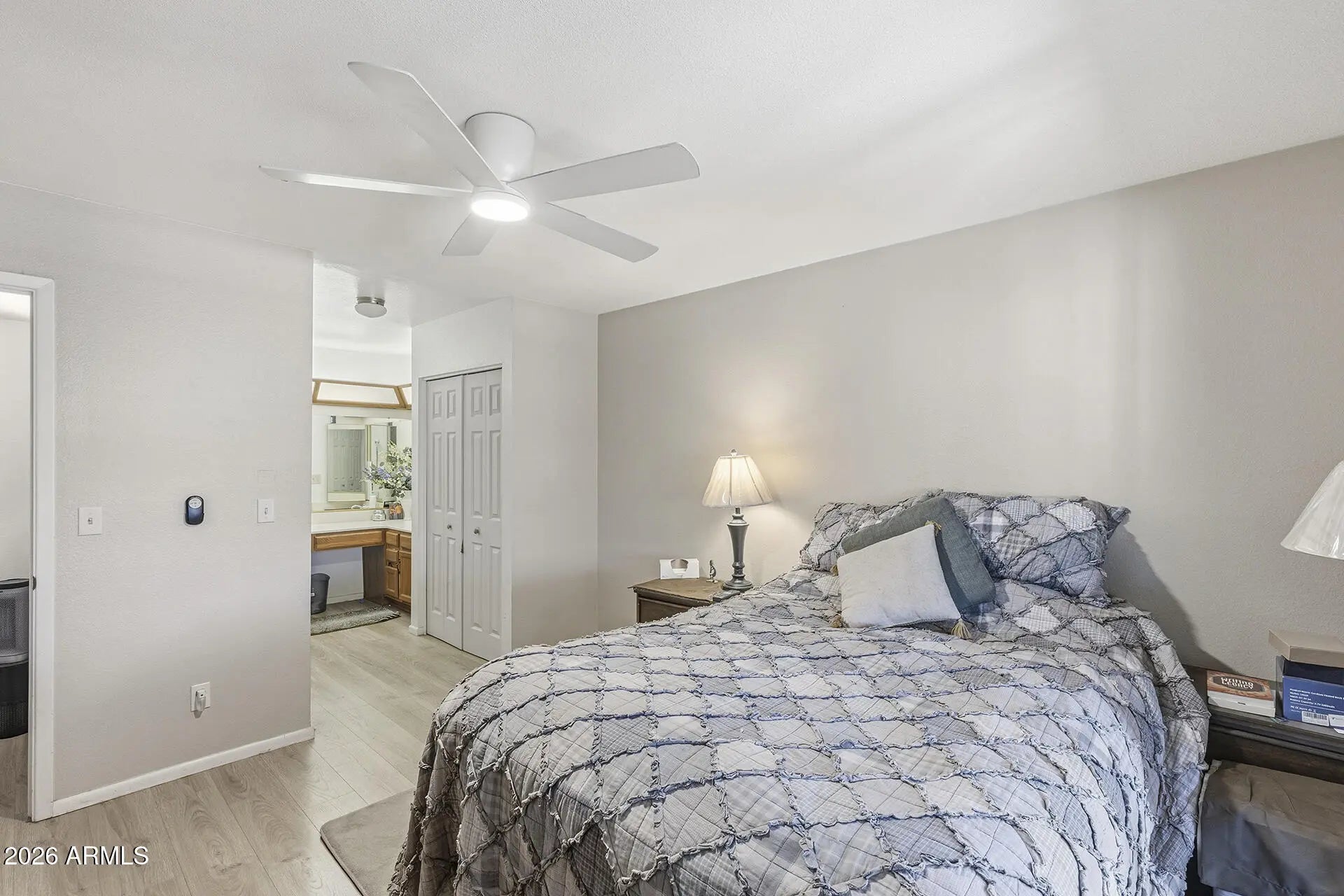 Golf Course Living! Move-in ready home nestled on the fairway in a desirable 55+ community, offering bright living spaces filled with tons of natural light from abundant windows & charming arch cut-outs flowing into the kitchen with stainless steel appliances & eat-in nook. The generously sized primary suite features direct patio access plus an ensuite with double sinks, walk-in shower & a spot for a vanity or makeup chair setup. A spacious secondary bedroom offers flexible preferred use, while the second bath includes a shower/tub combo. Step outside to a Spanish-tile patio with large covered seating & ceiling fan overlooking the greens of Ahwatukee Foothills Golf Club--ideal for morning coffee or sunset views. The fully fenced property includes easy access to I-10 with quick connections to Loop 202 & US-60 makes commuting, shopping & dining a breeze.