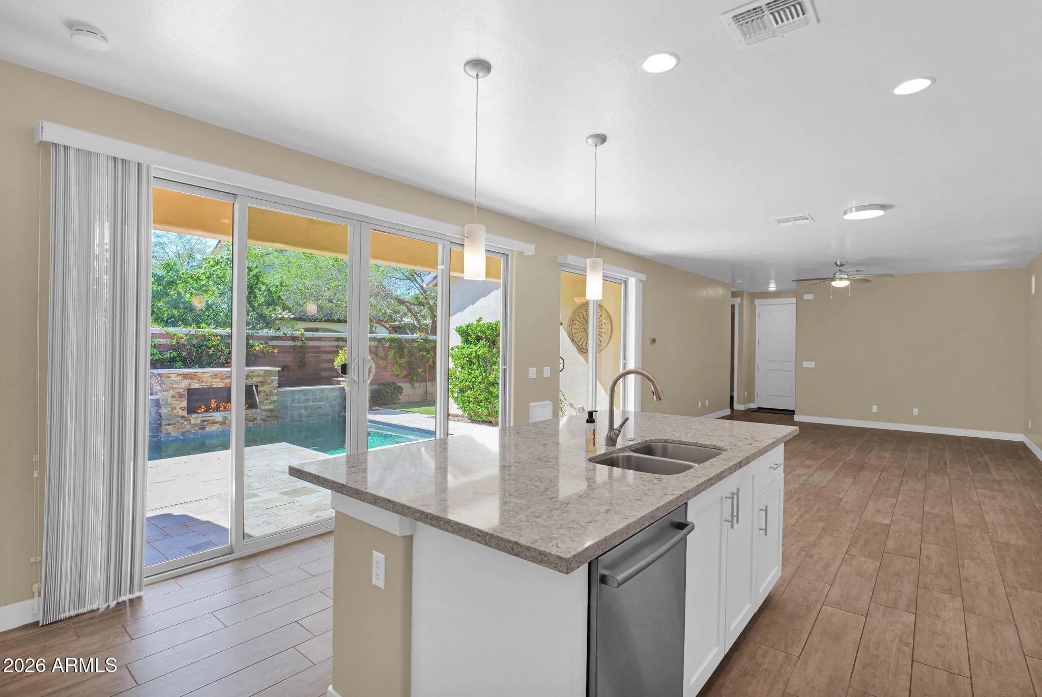 Beauty at its finest, this home is sure to impress. At 1,633 sqft this home offers 3 bedrooms, 2 bathrooms, and an oversized 2.5 car garage. Built in 2017, this single owner home has been built to perfection. Key features include wood-plank tile throughout the main areas, all appliances included, 9ft+ flat ceilings, 8ft doors, a Gorgeous kitchen with Stainless Steel appliances, and a semi-custom Master walk-in shower. The backyard is a Dream with Travertine tile, Synthetic Turf, electric expandable awning, and an absolutely Beautiful Shasta pool with a built-in Fireplace as the design focal point. Your new pool is both heated and upgraded with a variable speed pump as well as an in ground cleaning system. Close to dining, shopping, and freeway access, what more could you want?