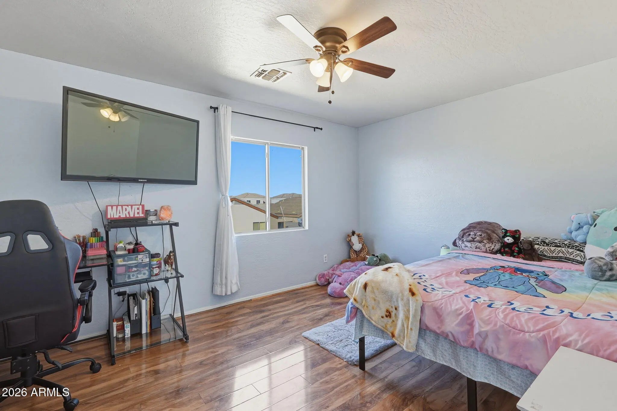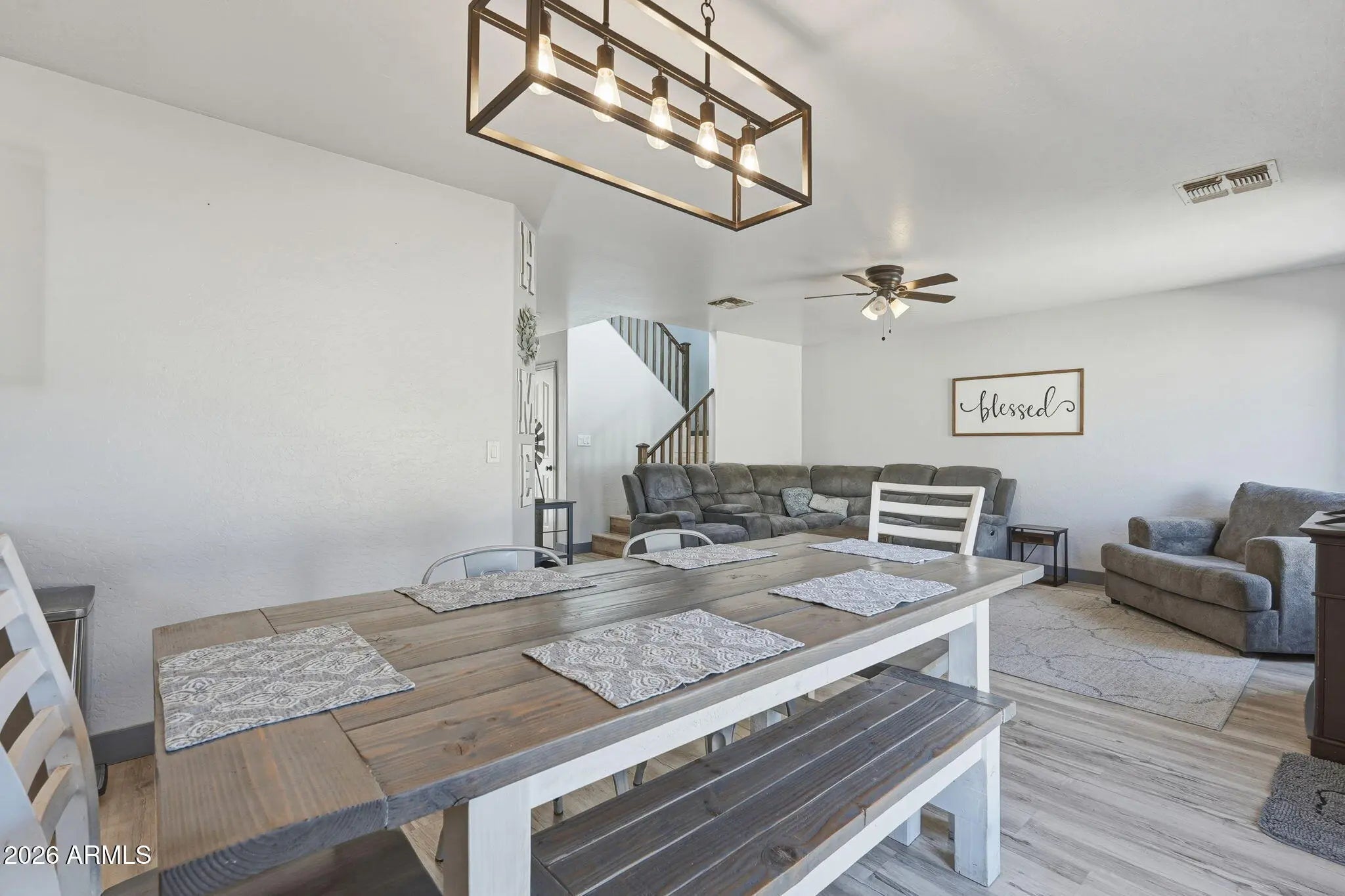 Beautifully updated corner lot home in the heart of El Mirage features 4 spacious bedrooms with the primary on the first floor, 2.5 baths, a versatile bonus room with closet, and loft. This move-in ready property offers a functional floorplan designed for comfortable living and entertaining with luxury vinyl plank in all the right places. Kitchen, dining, and living spaces flow seamlessly creating an ideal setting for entertaining and gathering. Conveniently located just 15 minutes from the Cardinals Stadium, you'll have easy access to shopping, dining, entertainment, and major freeways while still enjoying a quiet neighborhood setting. NO HOA fees here and a recently added A/C unit for added peace of mind. This one checks all the boxes!