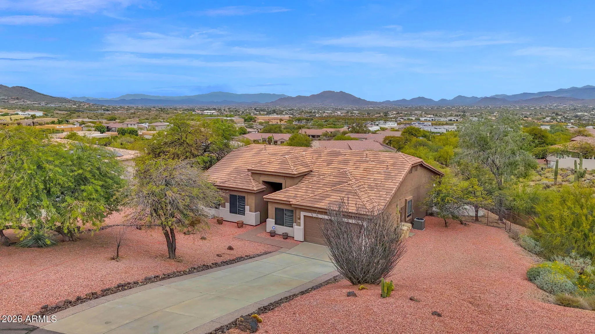 Well-maintained 4 bedroom, 2 bath home with 2-car garage on a premium hillside lot of nearly 1 acre (approx. 43,428 sq ft) with stunning mountain and city light views. Single-level floor plan plus a versatile bonus room that could be a 5th bedroom, office, or flex space. Built in 1997 and mostly in original condition, the home is clean, functional, and ready for your cosmetic updates and personal touches. The expansive elevated lot offers beautiful sunsets and plenty of room to design your dream backyard, add a pool, or create additional outdoor living areas in a desirable North Phoenix location.