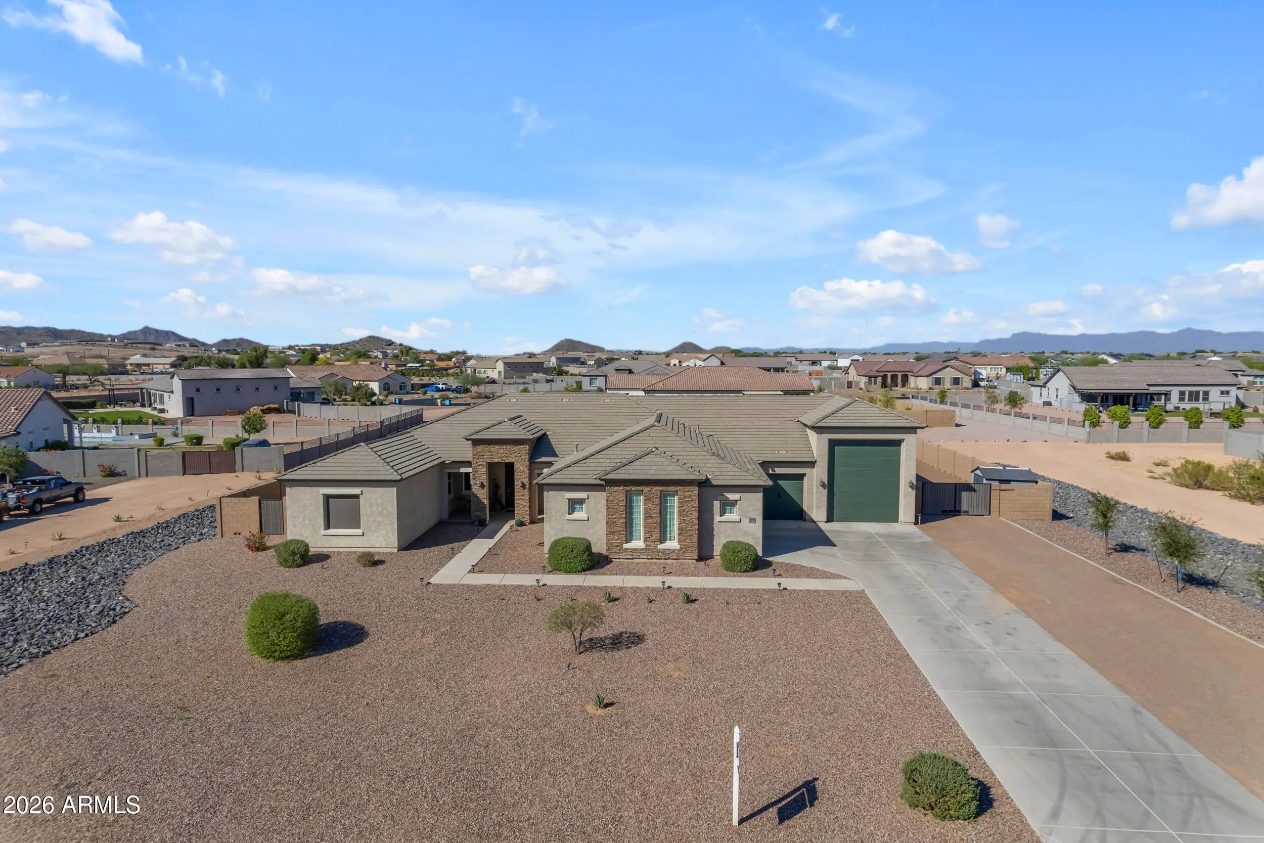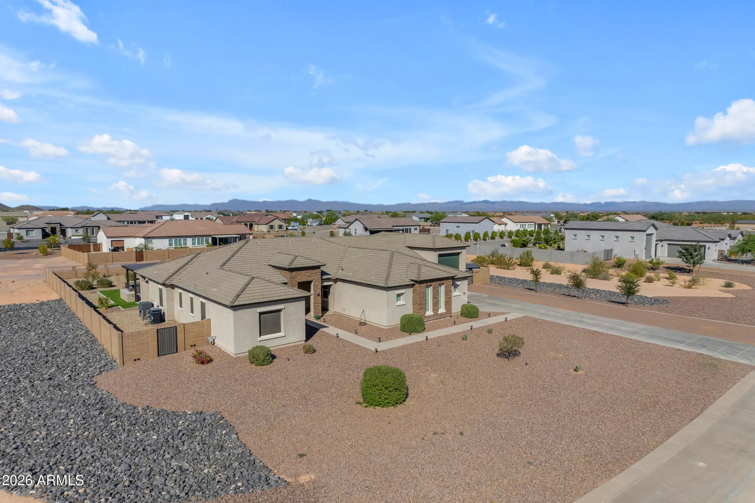 Located in this highly sought after gated community of White Wing, this beautiful 4 bedroom and 4 bathroom home sits on a sprawling 1 ACRE, cul de sac lot, offering space, privacy, and a lifestyle that is hard to find. Inside, the home features a spacious and functional layout filled with natural light, making it perfect for both everyday living and entertaining. The kitchen truly serves as the heart of the home, offering ample counter space, a WALK IN PANTRY, and a GAS cooktop that makes cooking and hosting feel effortless. Primary Bedroom features a walk in shower, oversized tub, double vanity and CUSTOM WALK IN closet. Step outside to a backyard designed for enjoying Arizona living, complete with a RESORT STYLE POOLand built in BBQ, perfect for relaxing weekends or entertaini or entertaining guests. The RV GARAGE adds incredible flexibility and convenience, giving you plenty of room for recreational vehicles, storage, or all your outdoor toys. Situated on a quiet CUL-DE-SAC within a beautifully maintained gated neighborhood, this home offers a sense of peace and privacy while still being close to shopping, dining, and everyday essentials. With its generous 1 acre lot, thoughtful layout, and standout features, this home offers the space and comfort that make everyday living feel just a little more elevated.